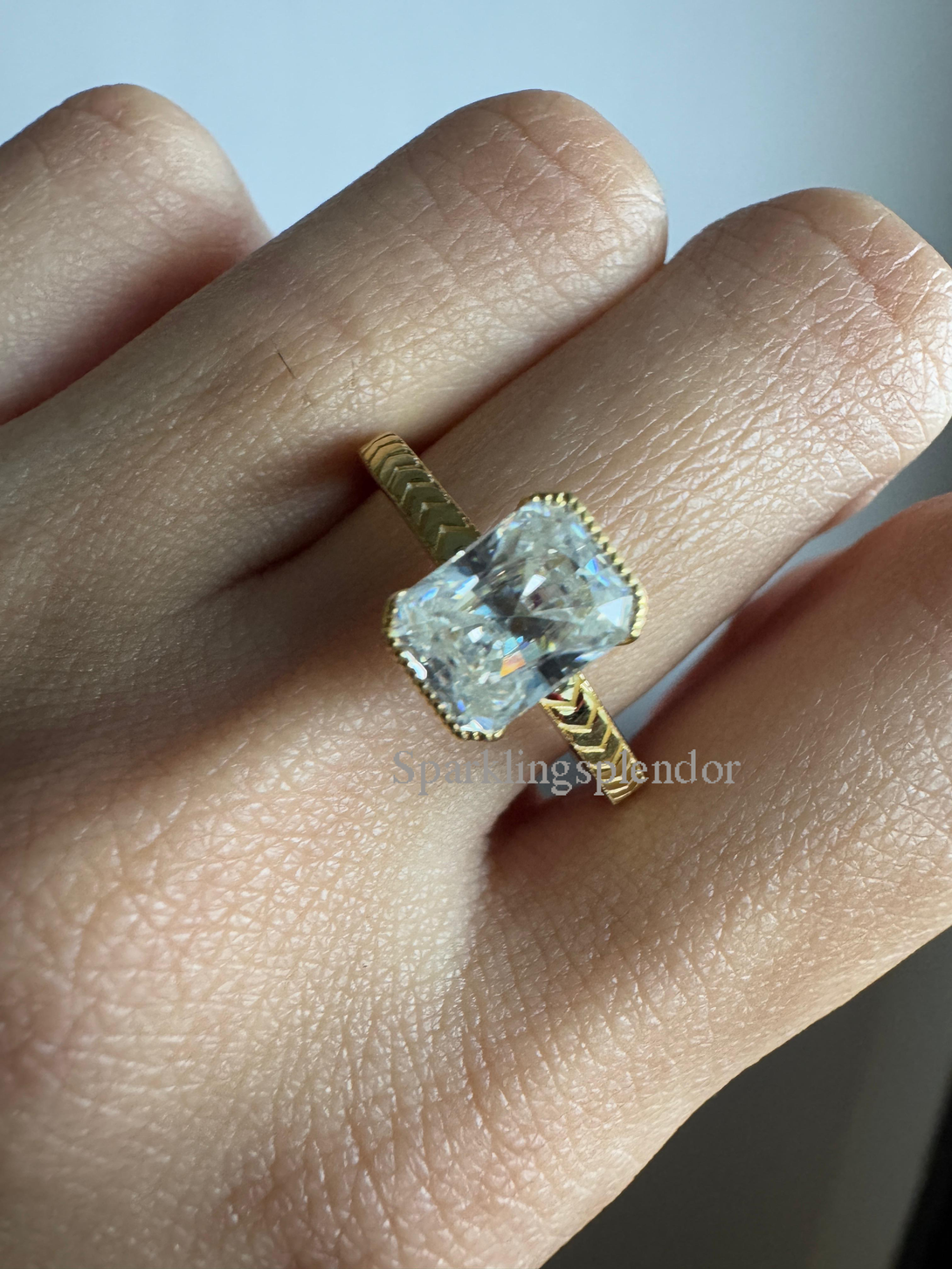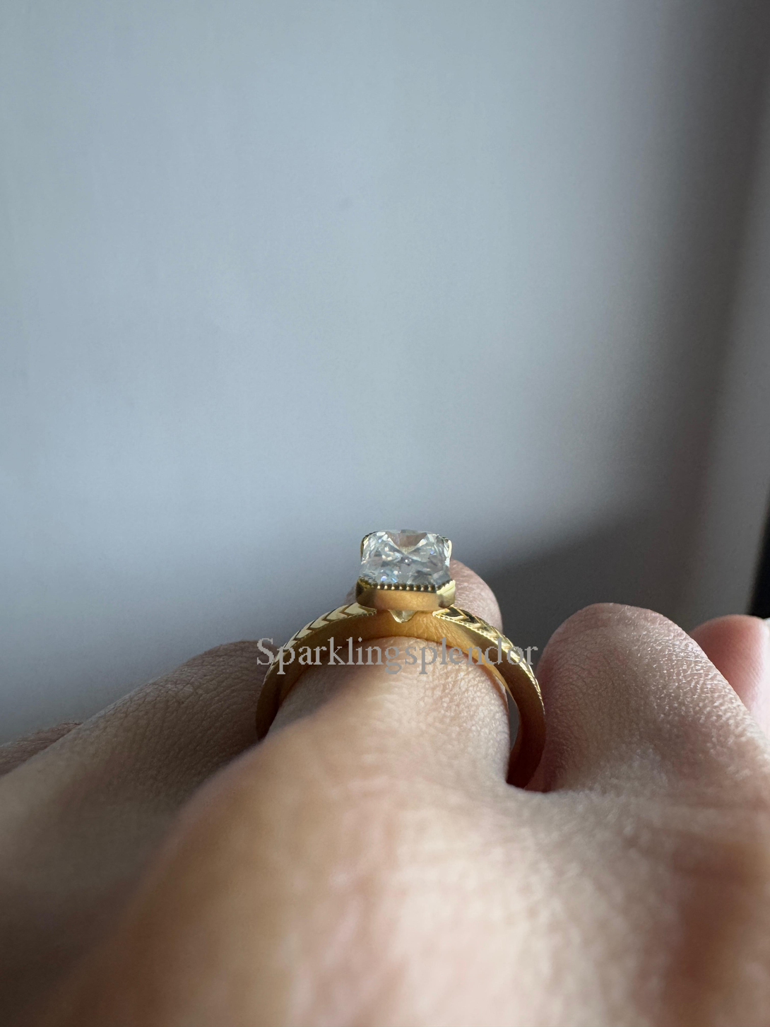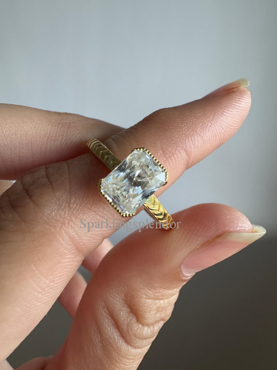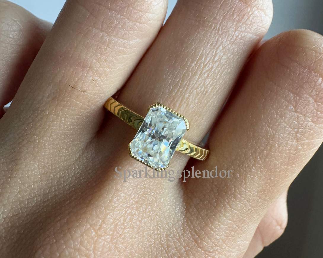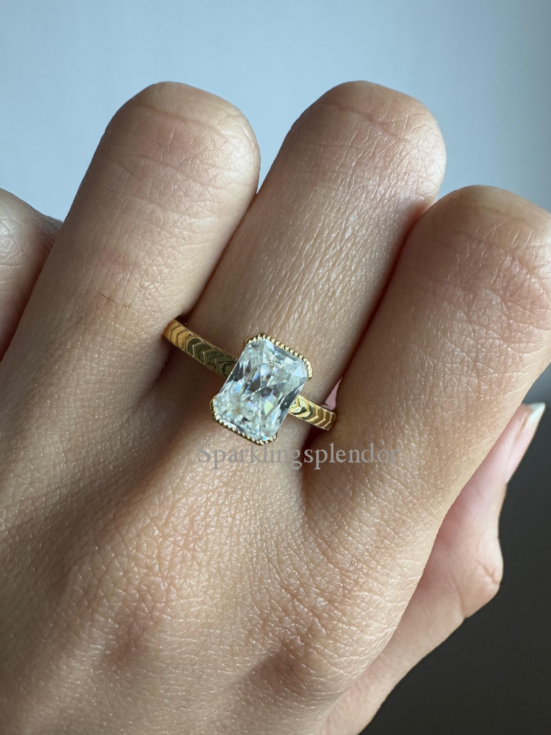 Solitaire Radiant Cut Moissanite Engagement Ring Vintage Half Bezel Set Promise Ring
