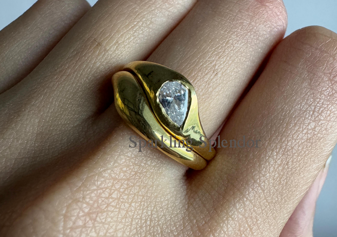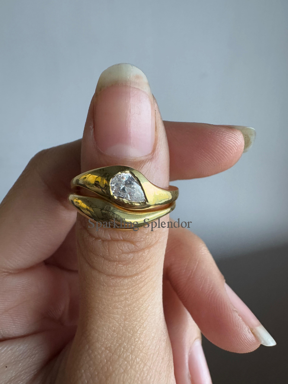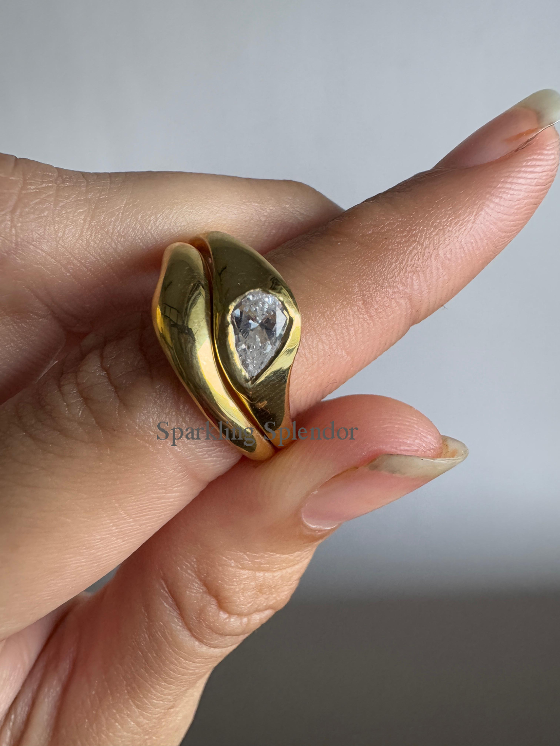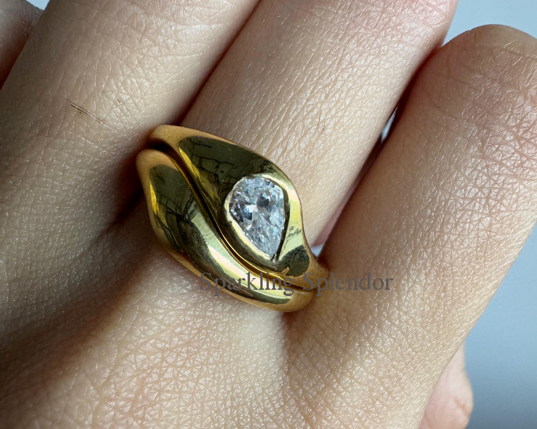 Solitaire Flush Set Pear Cut Moissanite Ring With Curved Band Bold Wedding Ring Set