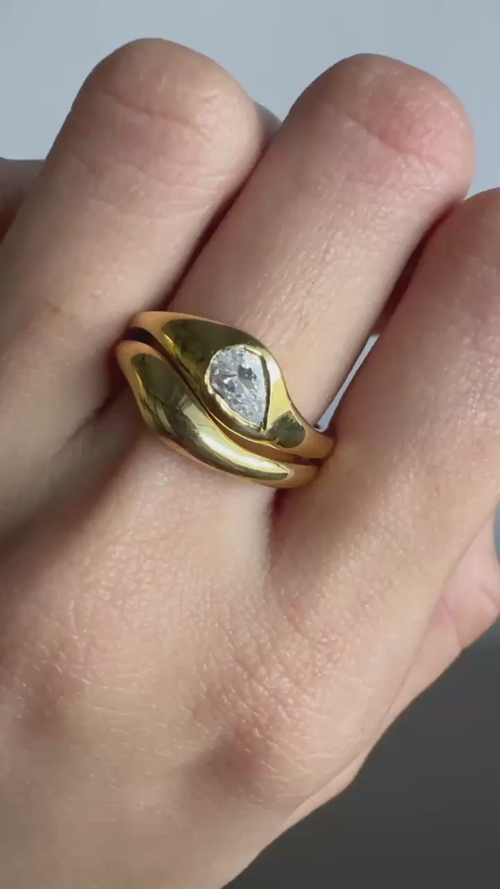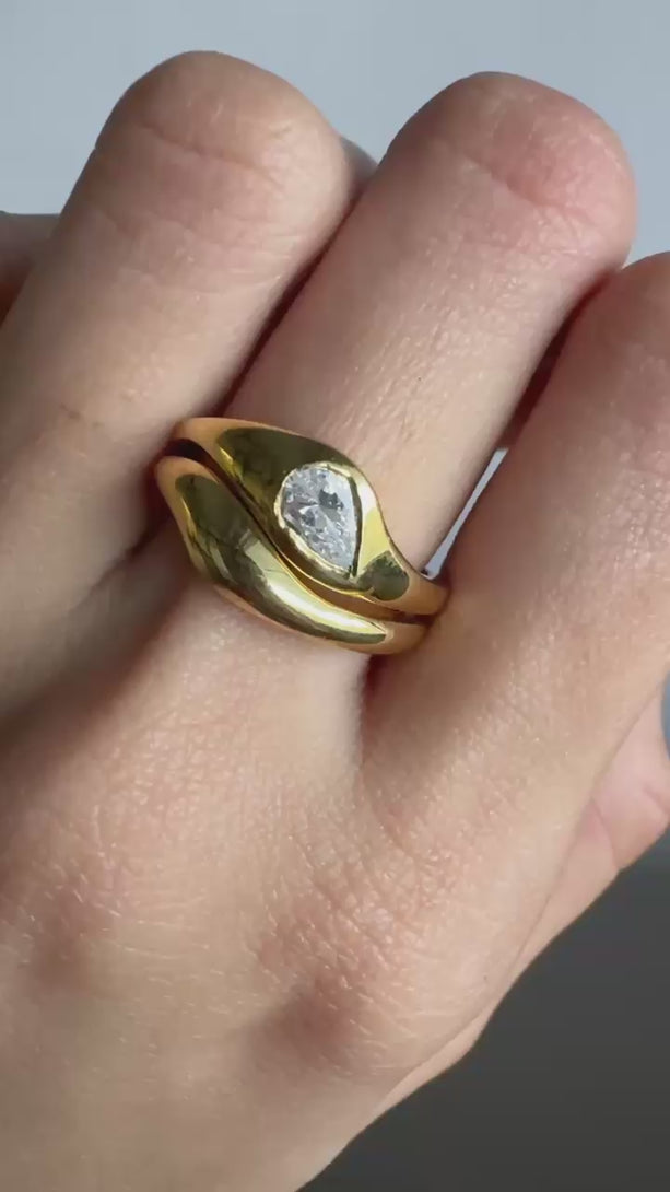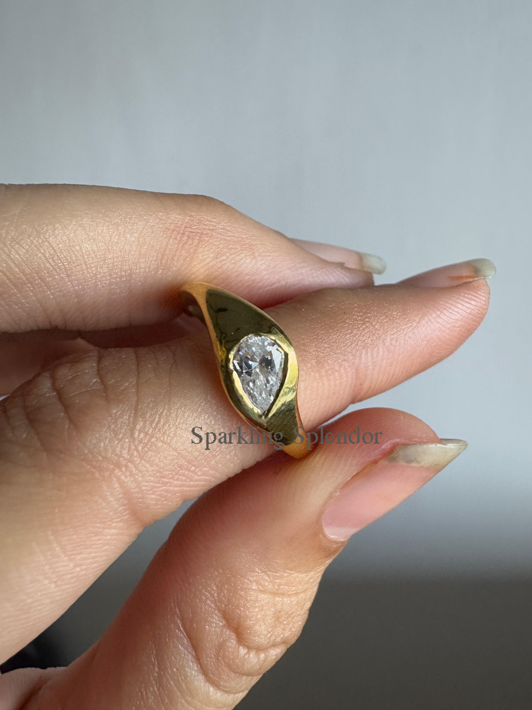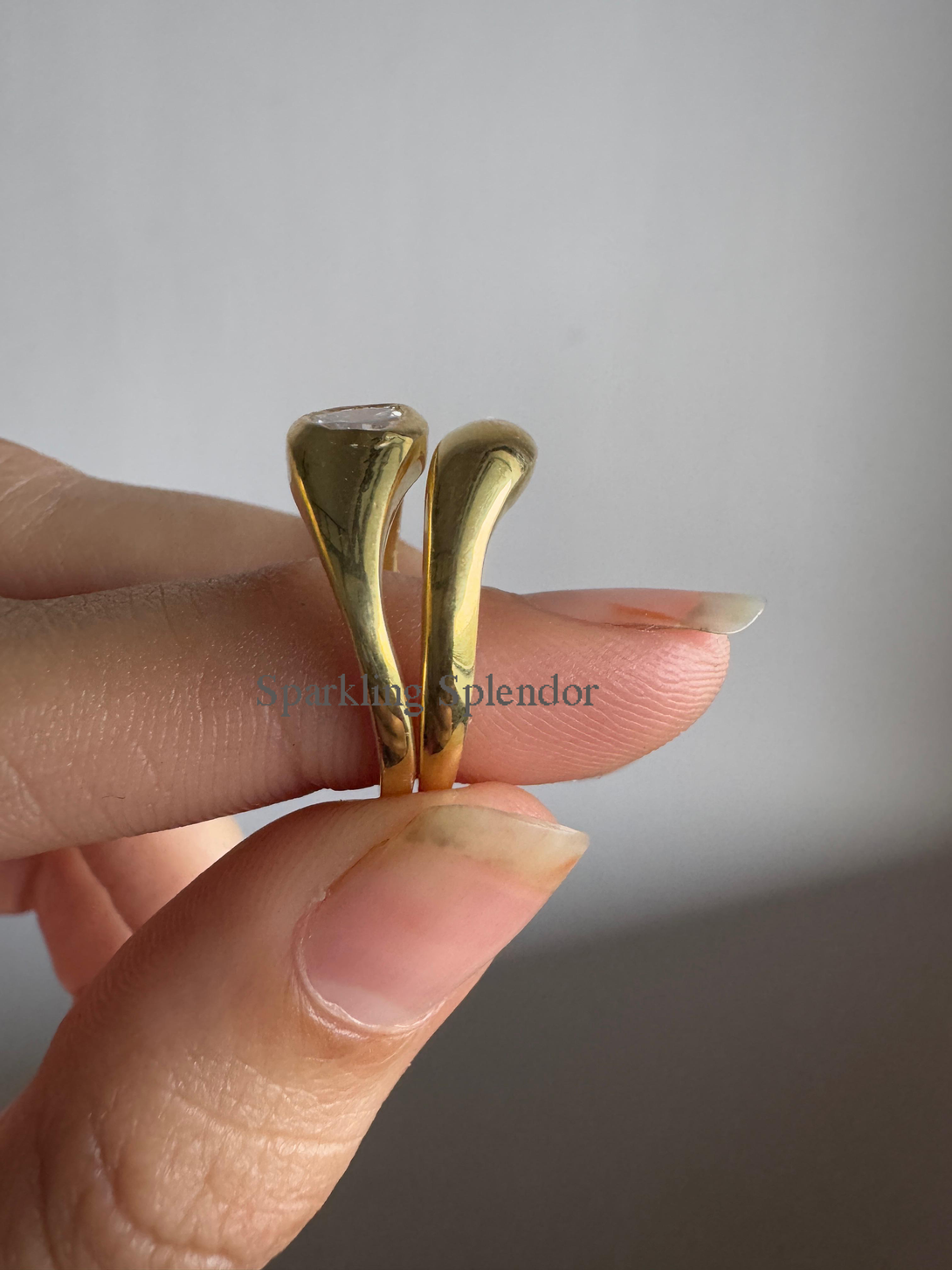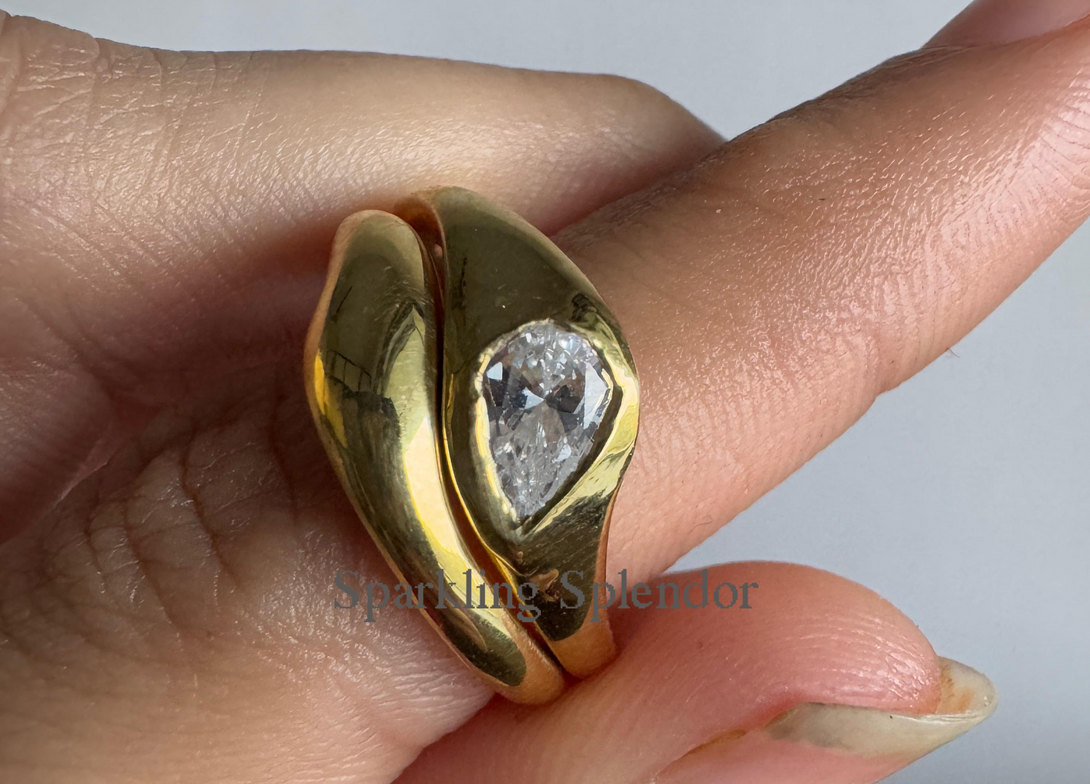 Solitaire Flush Set Pear Cut Moissanite Ring With Curved Band Bold Wedding Ring Set