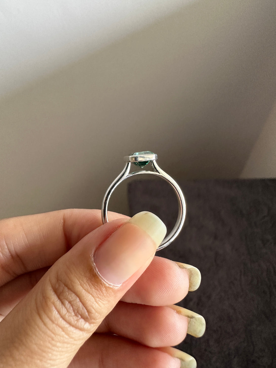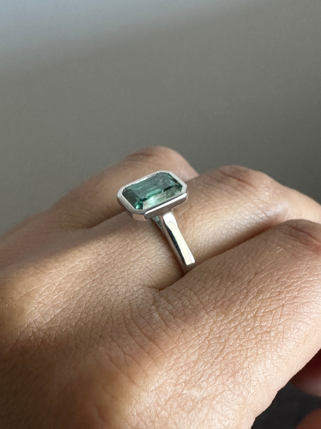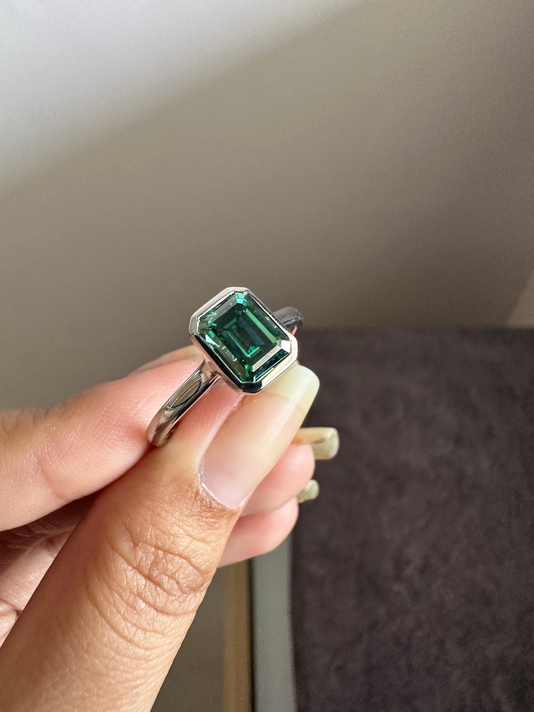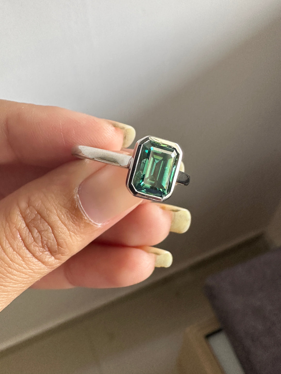 Bezel Set Emerald Cut Moissanite Engagement Ring 18K White Gold Solitaire Wedding Ring