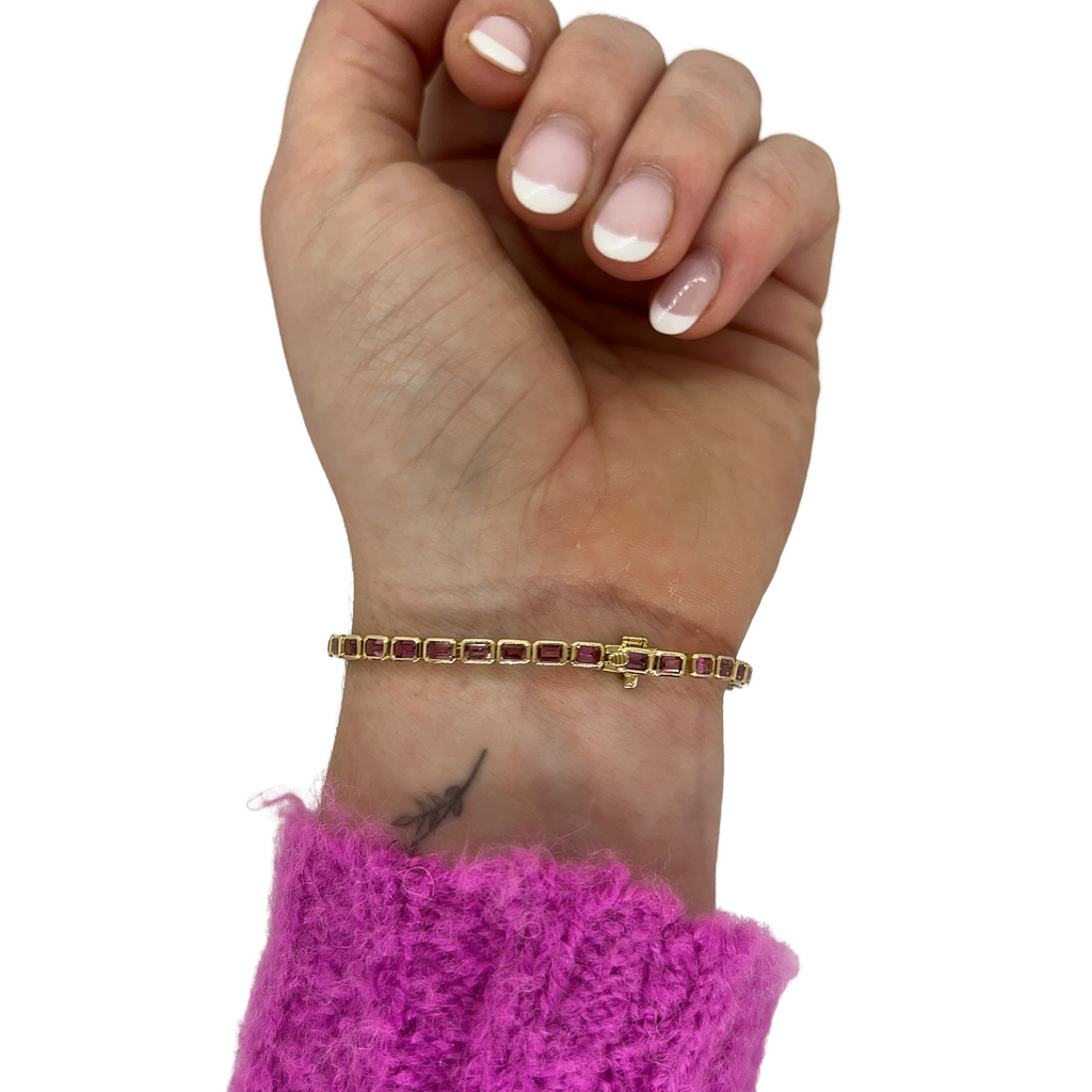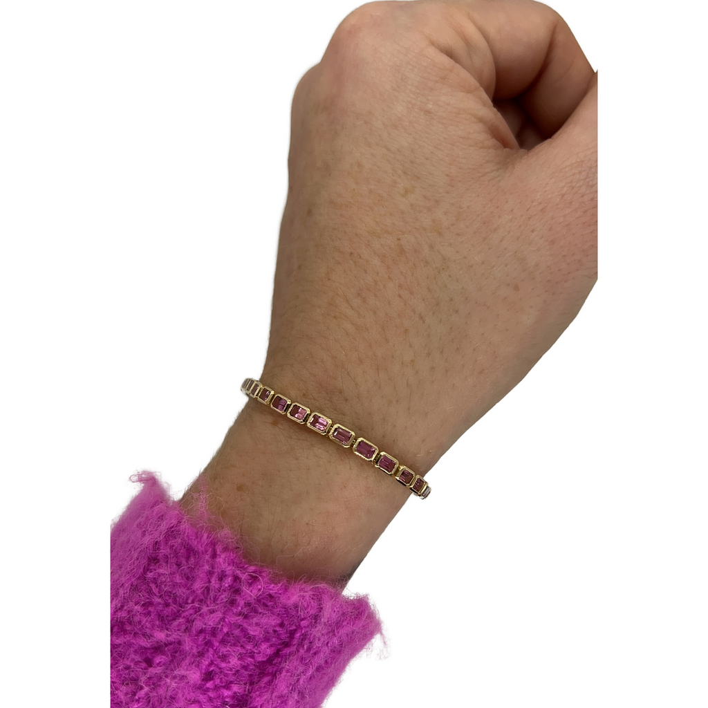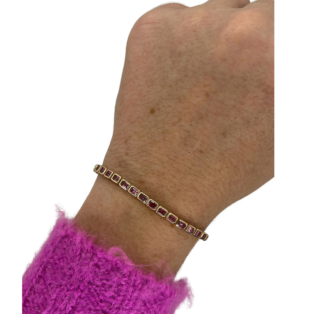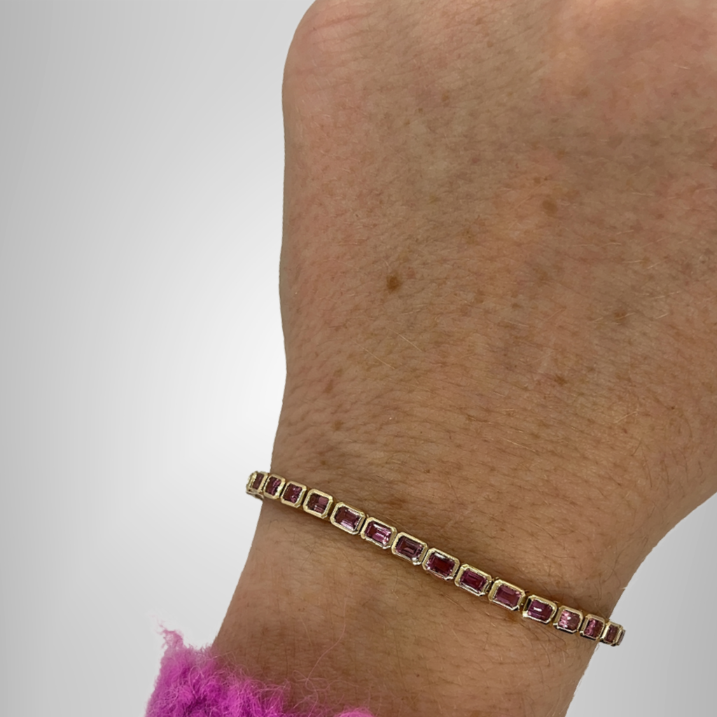 Pink Gemstone Emerald Cut CZ Diamond Tennis Bracelet Anniversary Gift For Wife