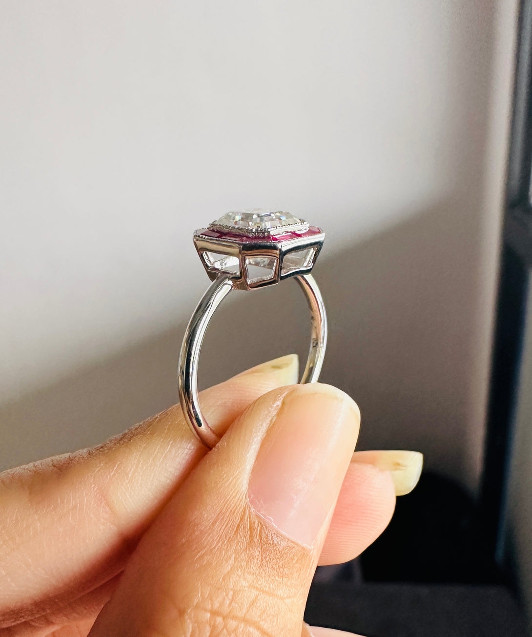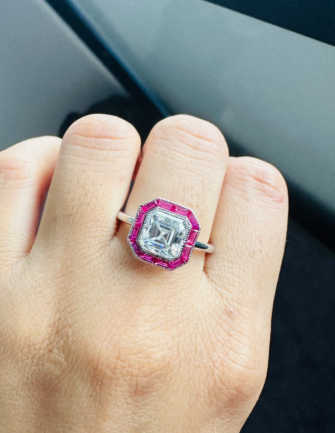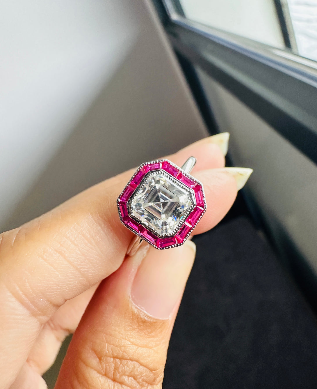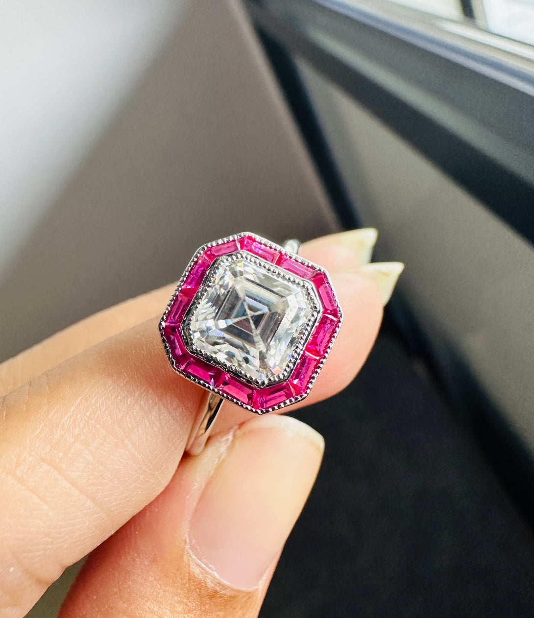 Asscher Cut Moissanite Unique Square Halo Vintage Engagement Ring For Her