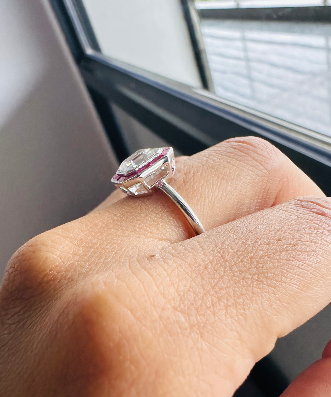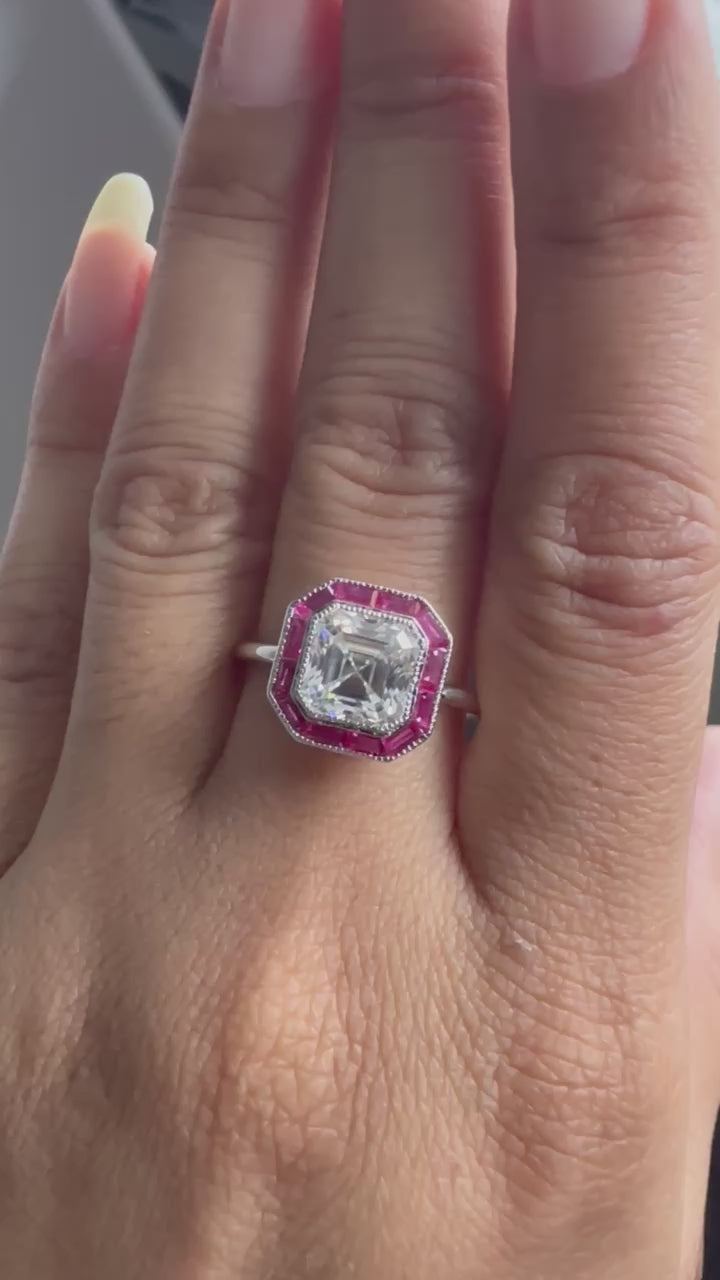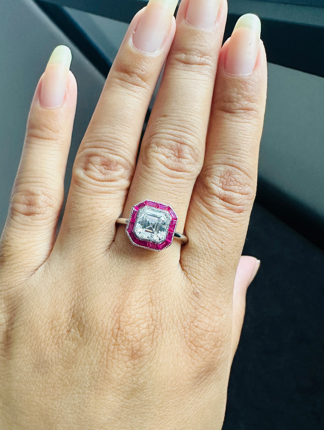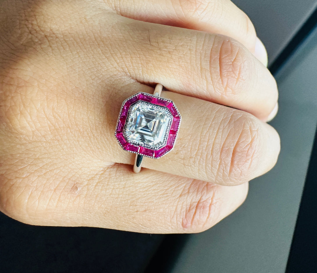 Asscher Cut Moissanite Unique Square Halo Vintage Engagement Ring For Her
