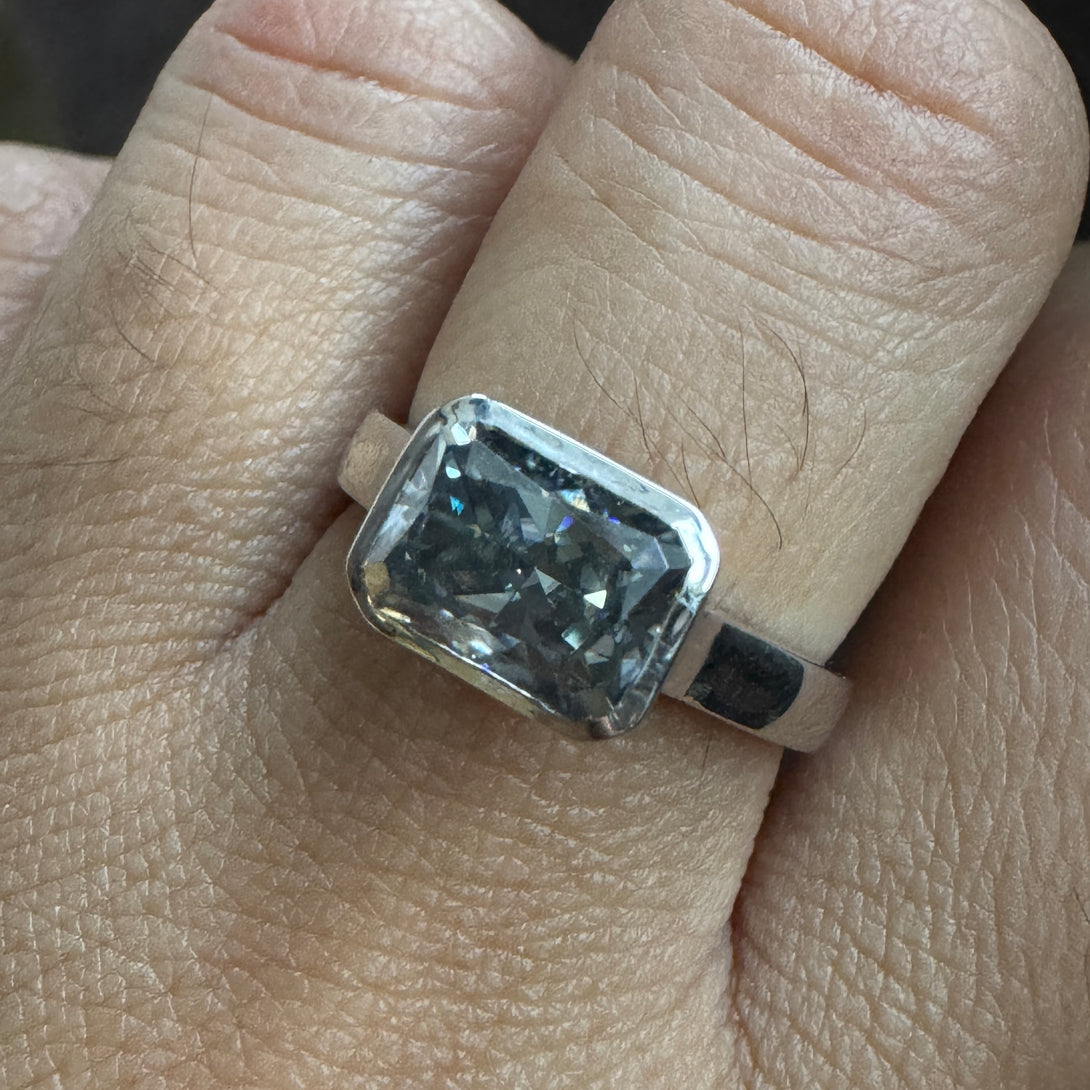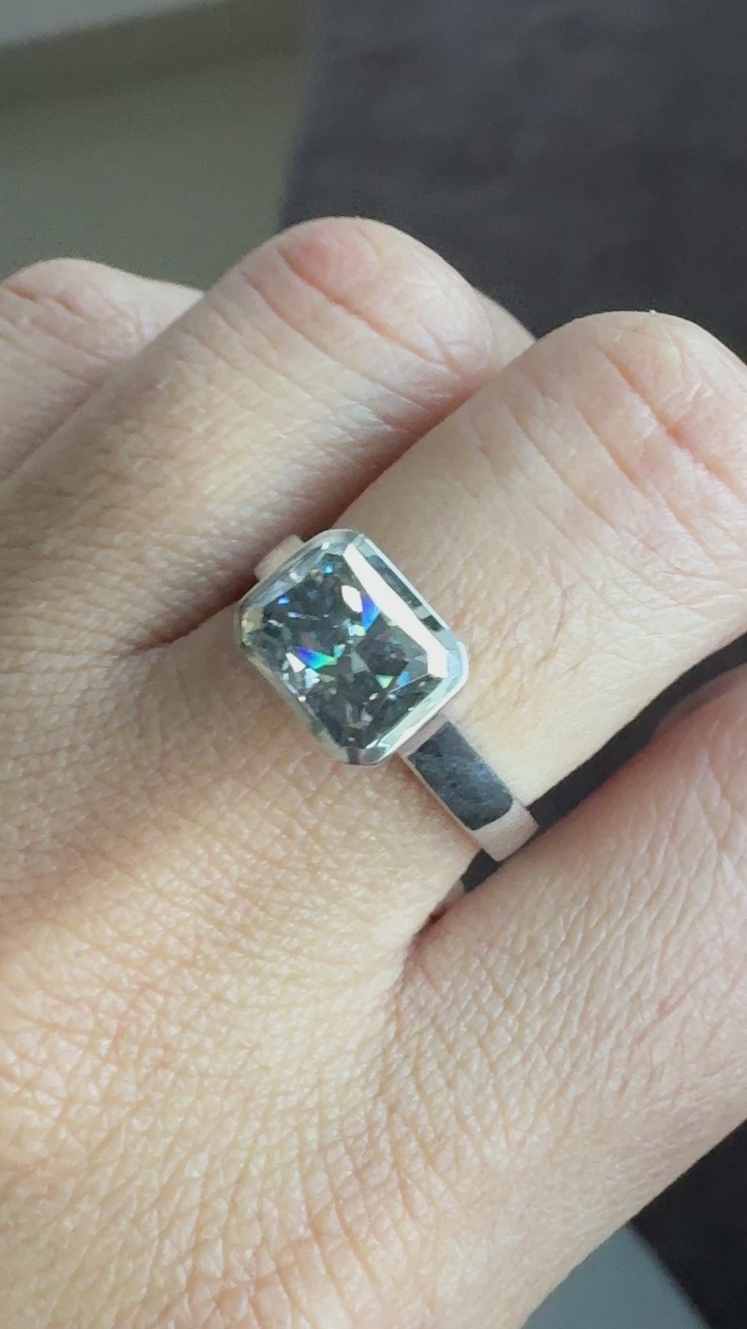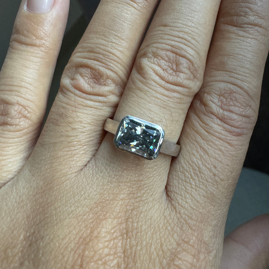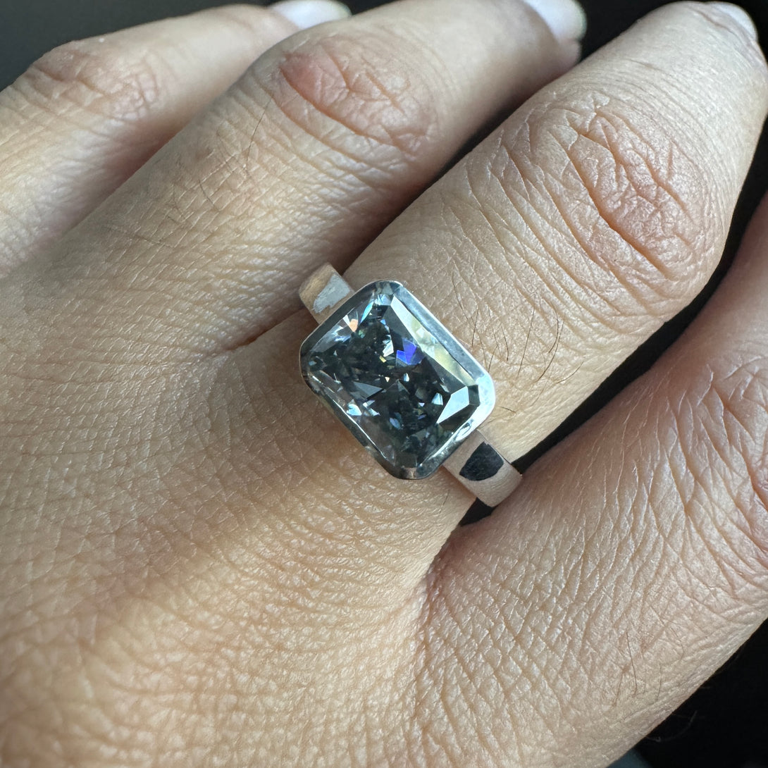 Gray Radiant Moissanite Solitaire Bezel Set Ring East West Engagement Ring