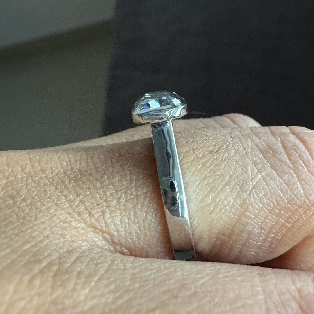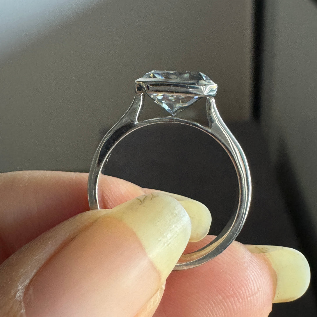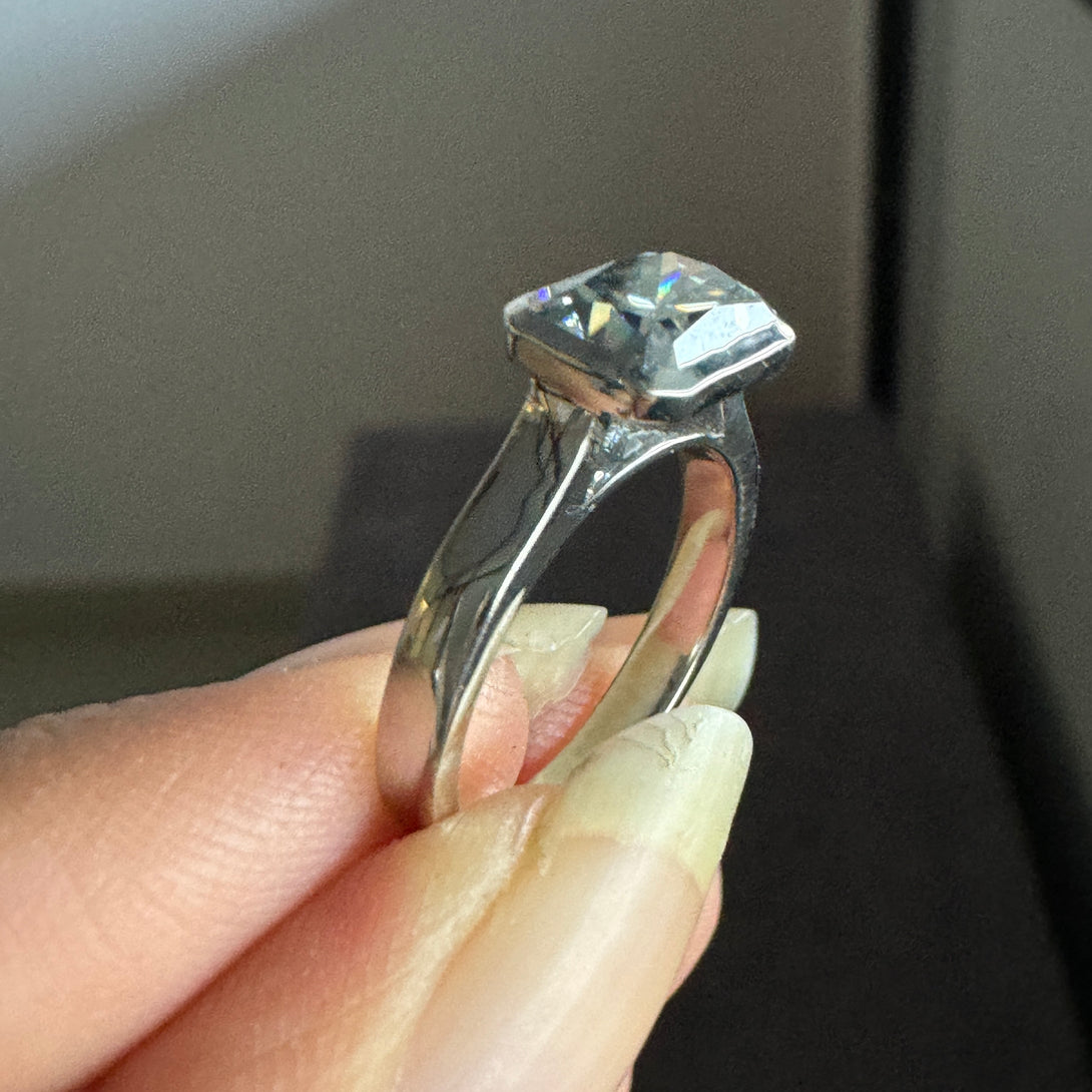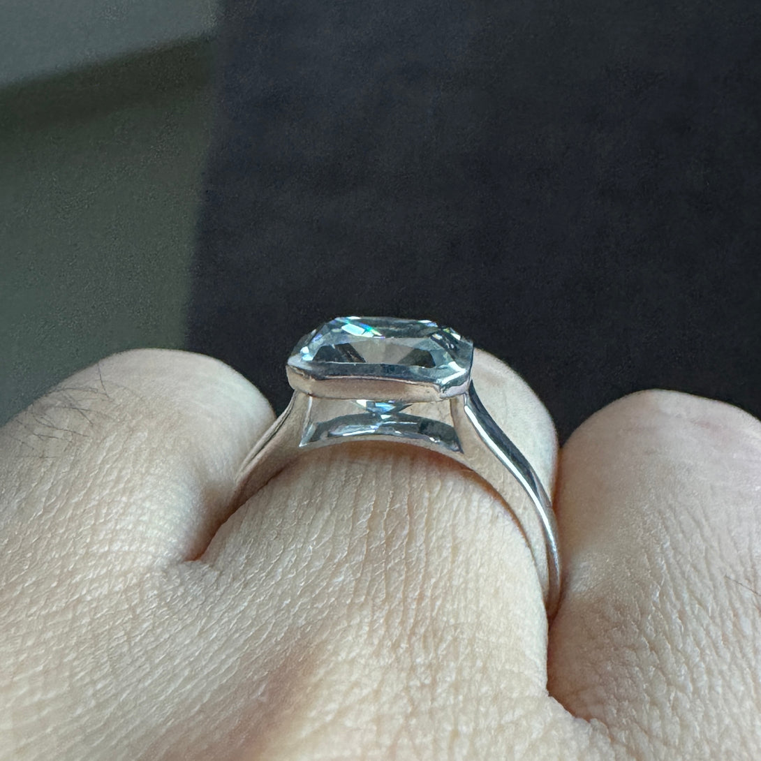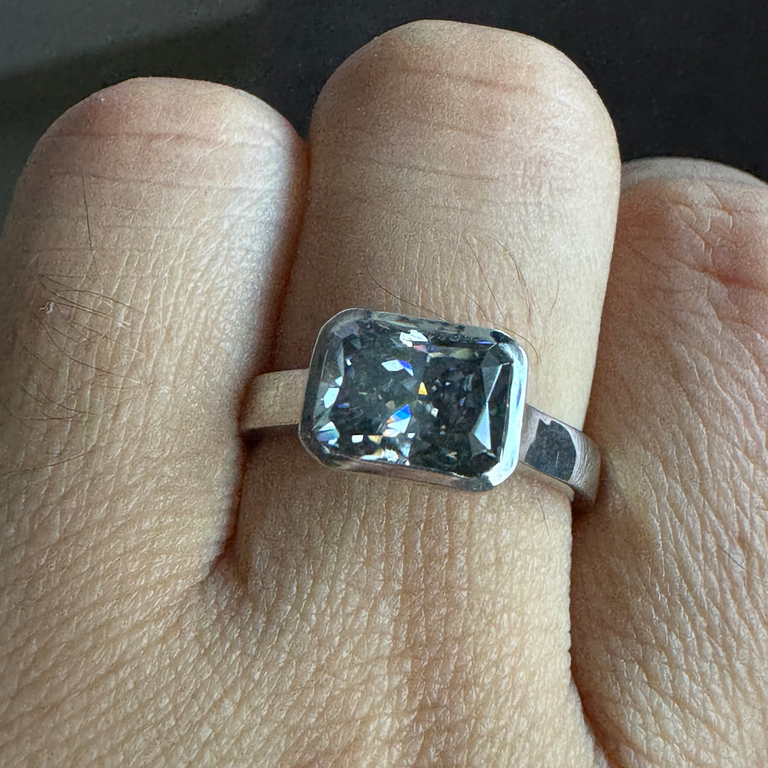 Gray Radiant Moissanite Solitaire Bezel Set Ring East West Engagement Ring