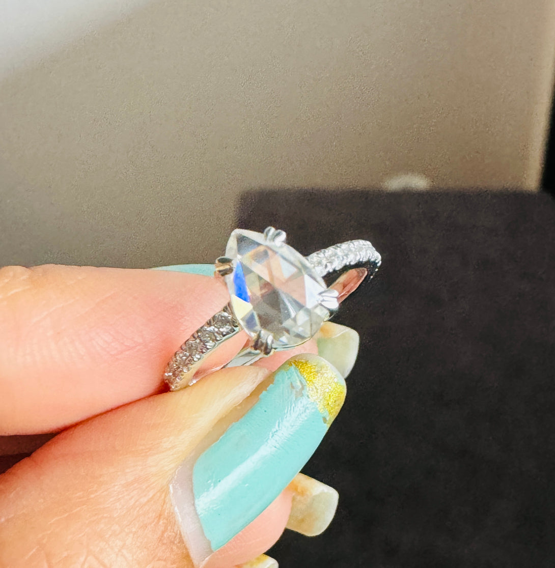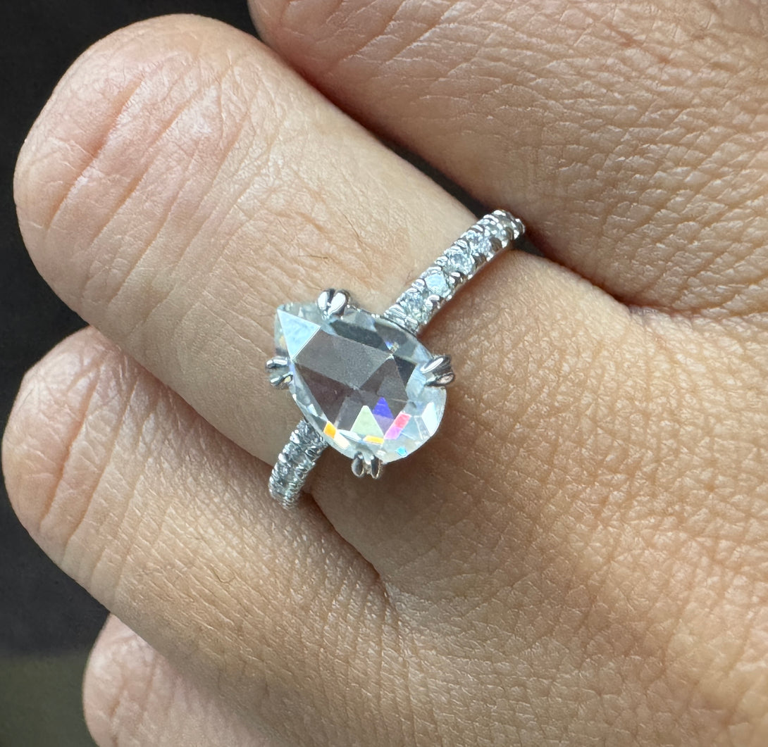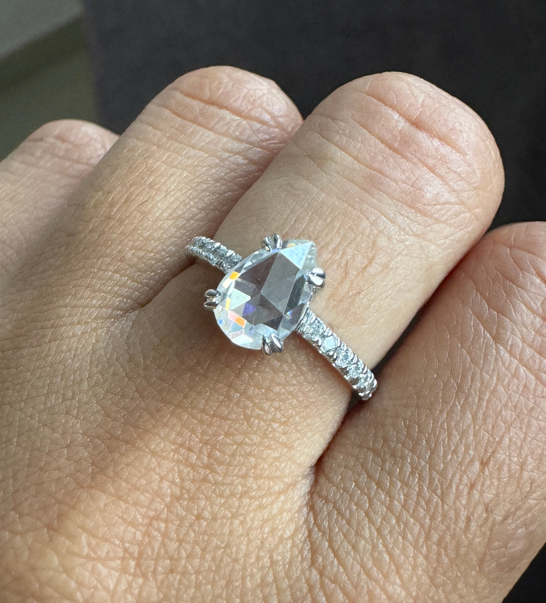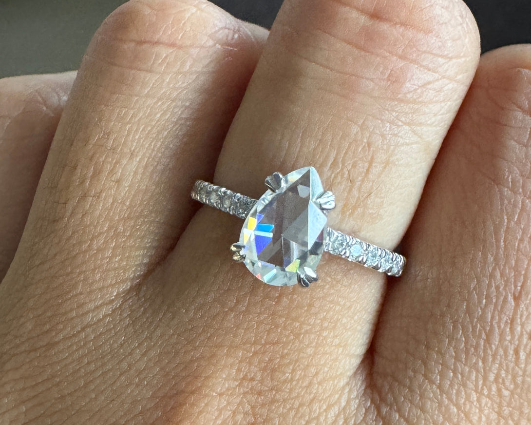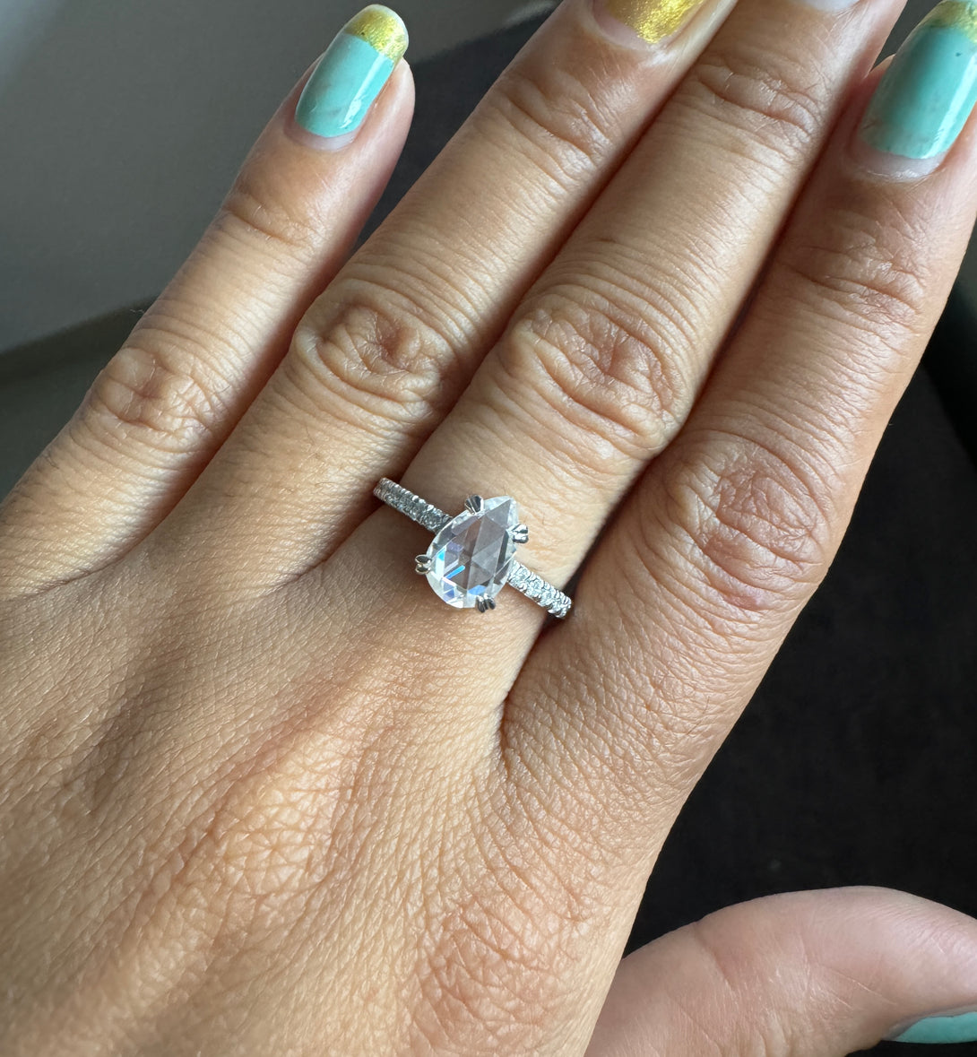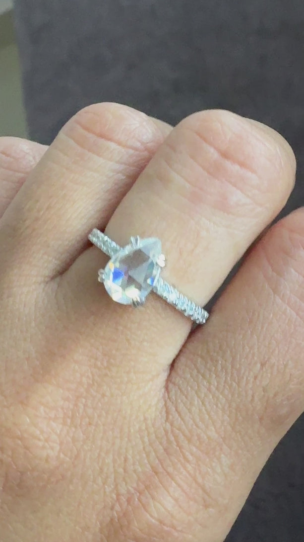 Rose Cut Moissanite Engagement Ring 18K Solid Gold Pear Shape Ring Her