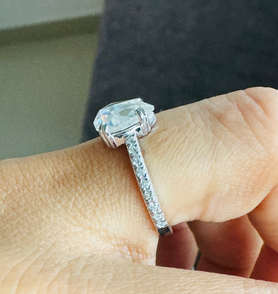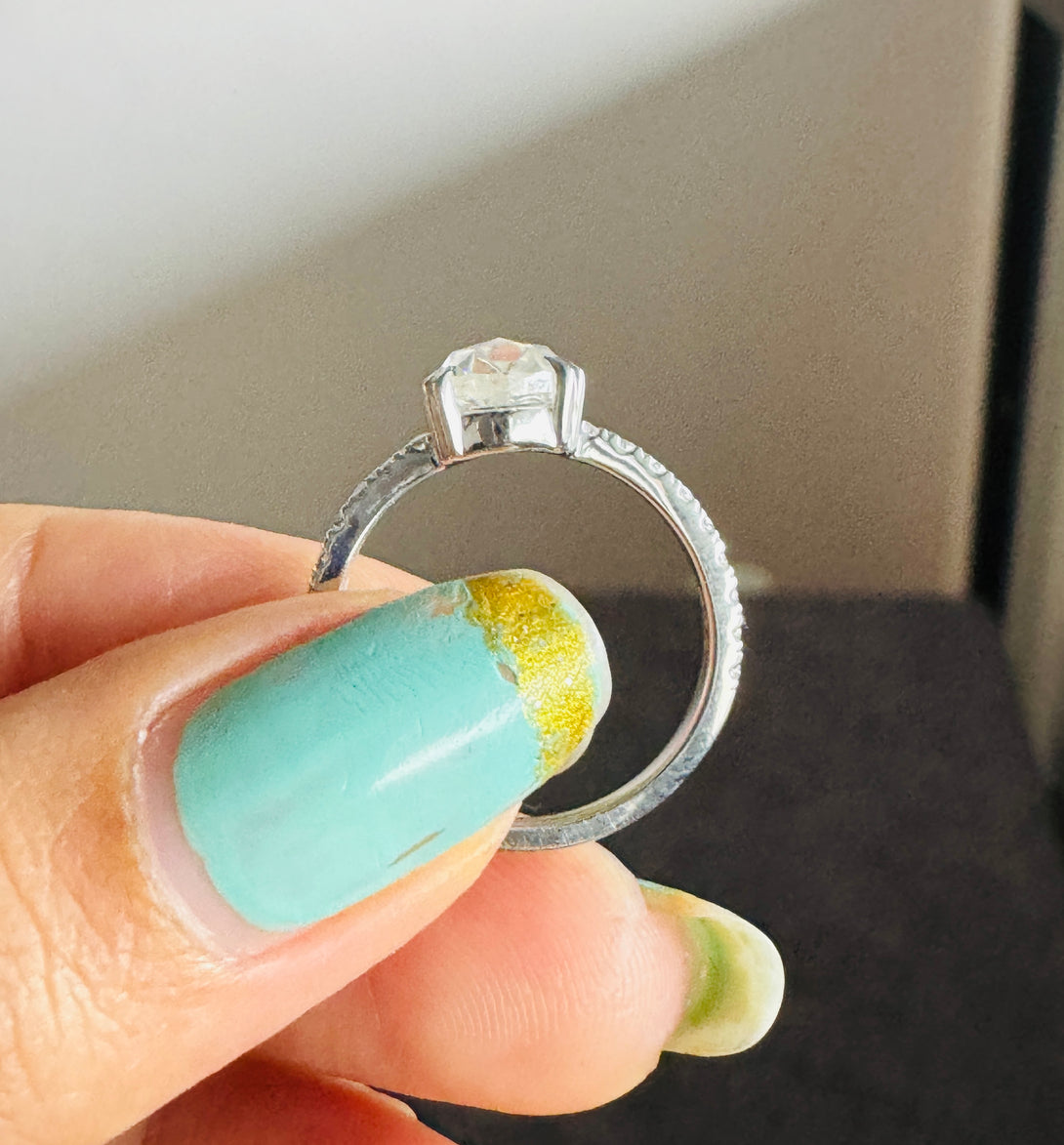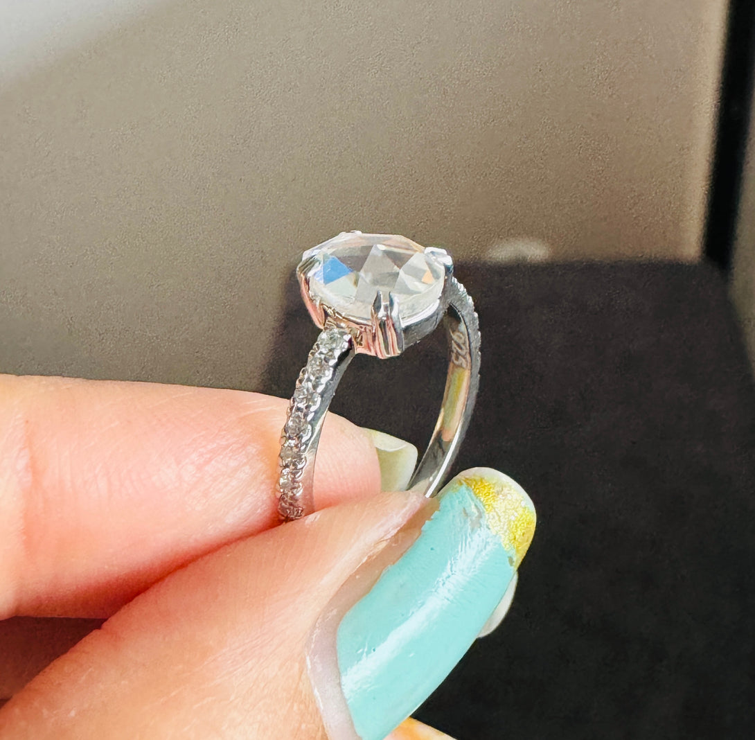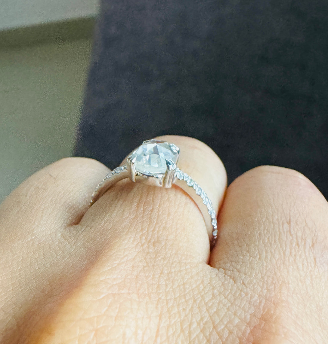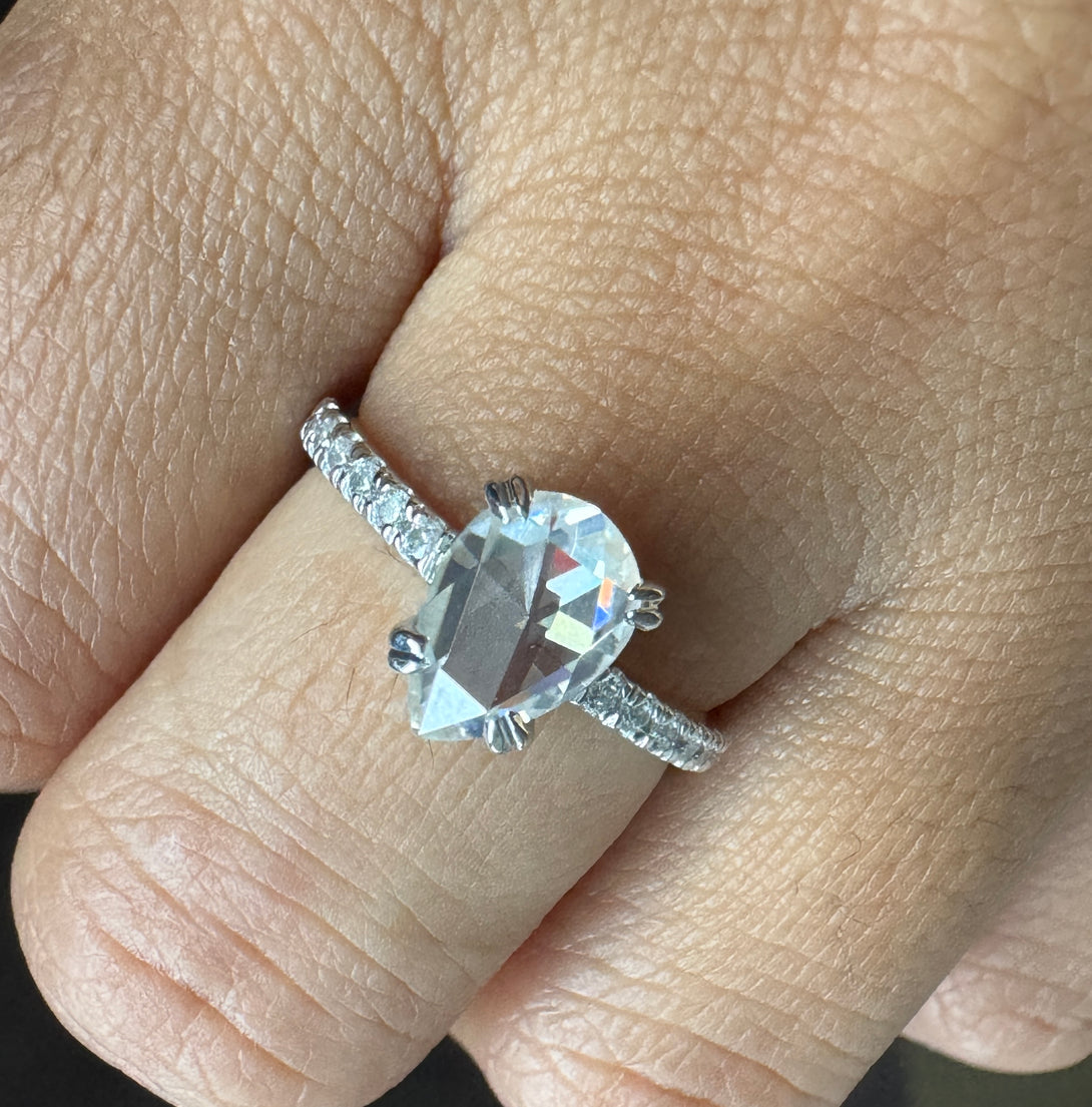 Rose Cut Moissanite Engagement Ring 18K Solid Gold Pear Shape Ring Her