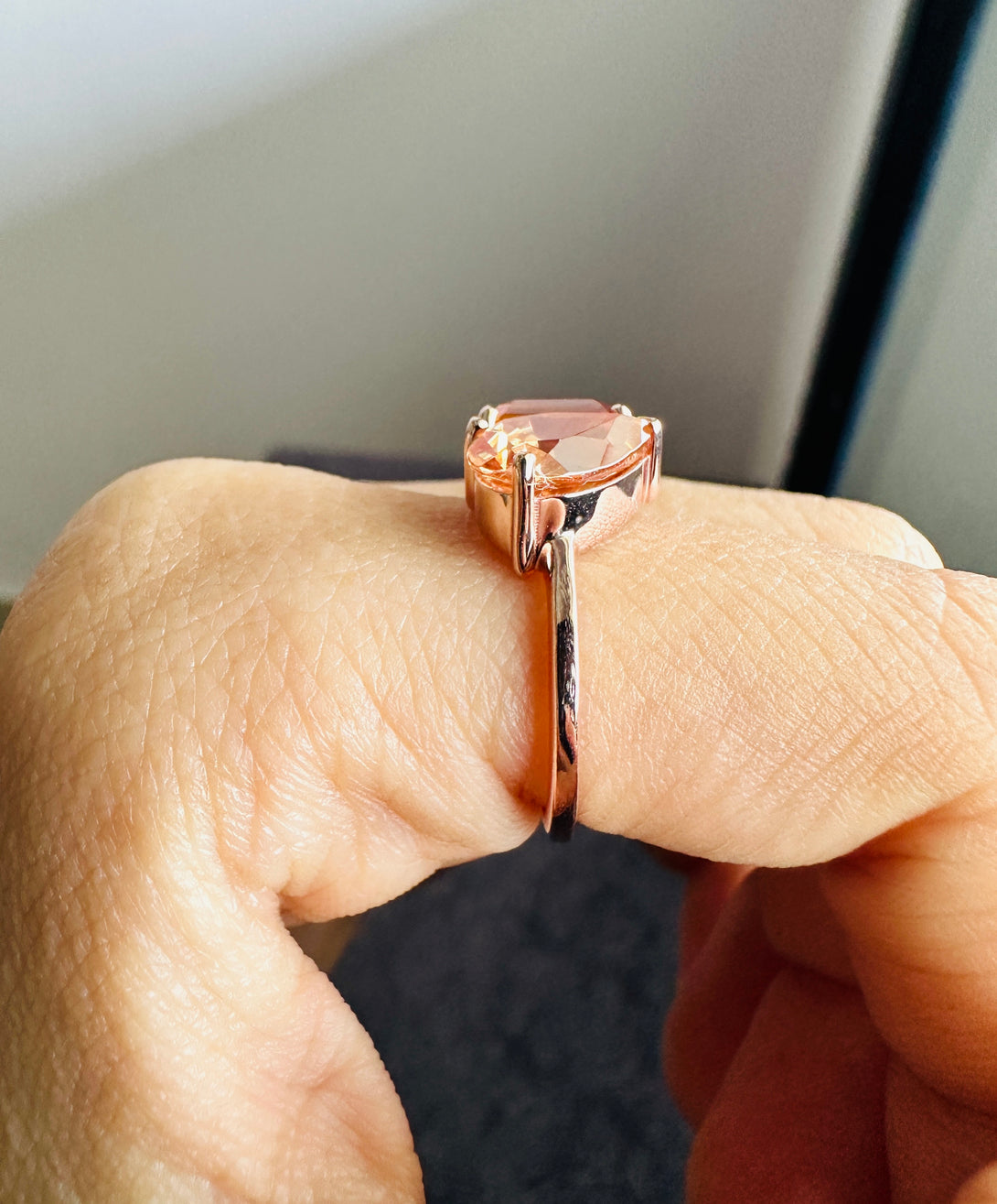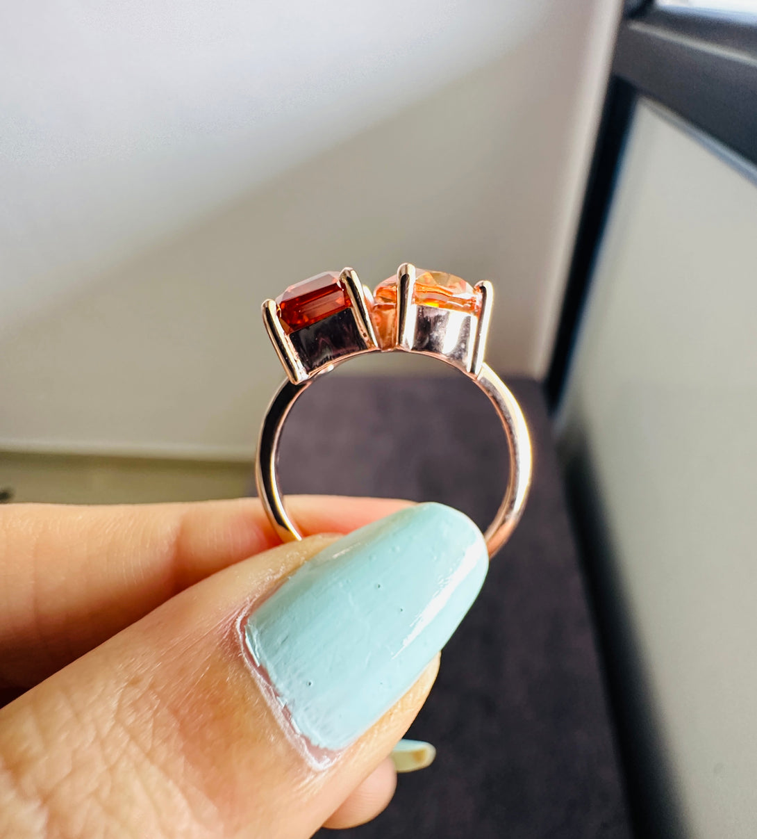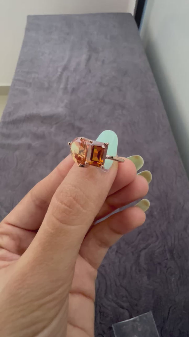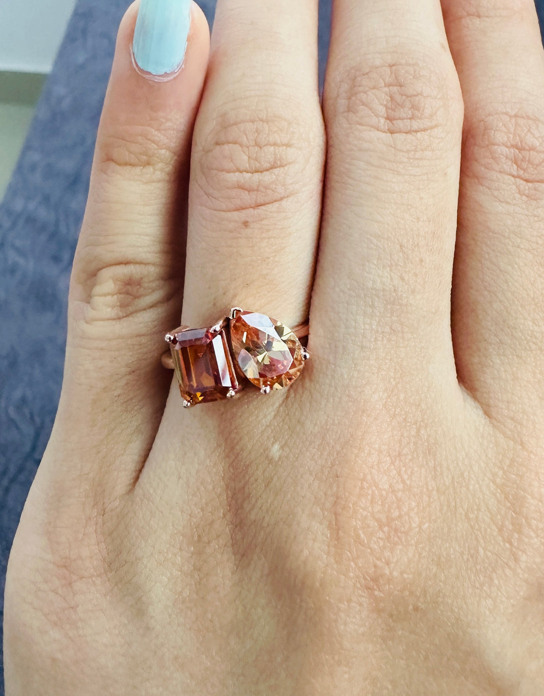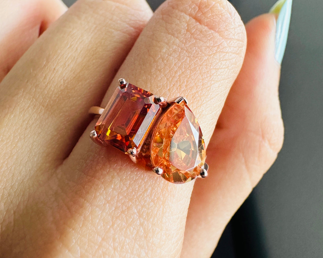 Dark Brown CZ Diamond Ring Champagne Pear & Emerald Cut Toi Et Moi Engagement Ring