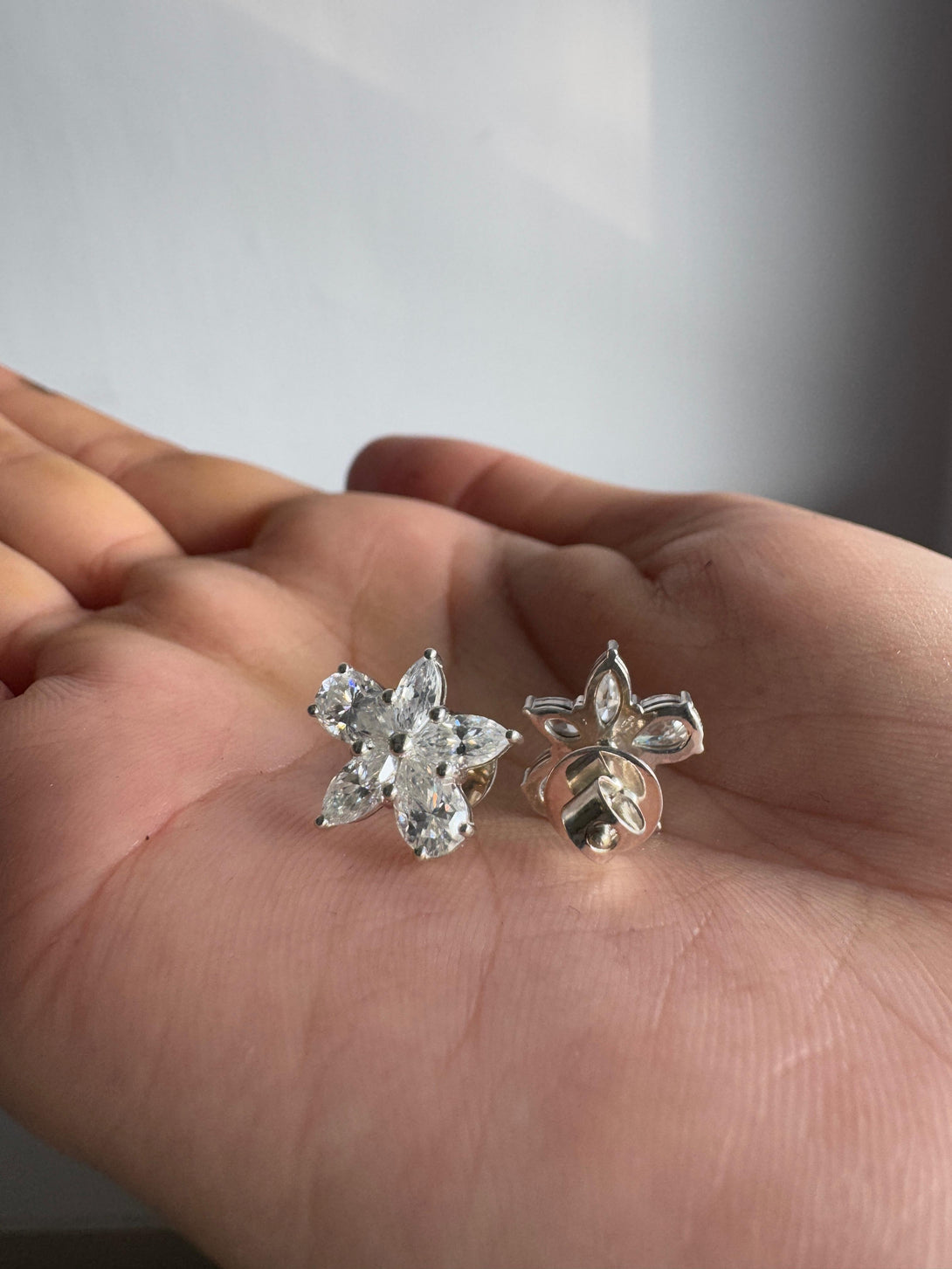 Pear & Marquise Cut Moissanite Diamond Floral Stud Earrings Anniversary Gift For Wife