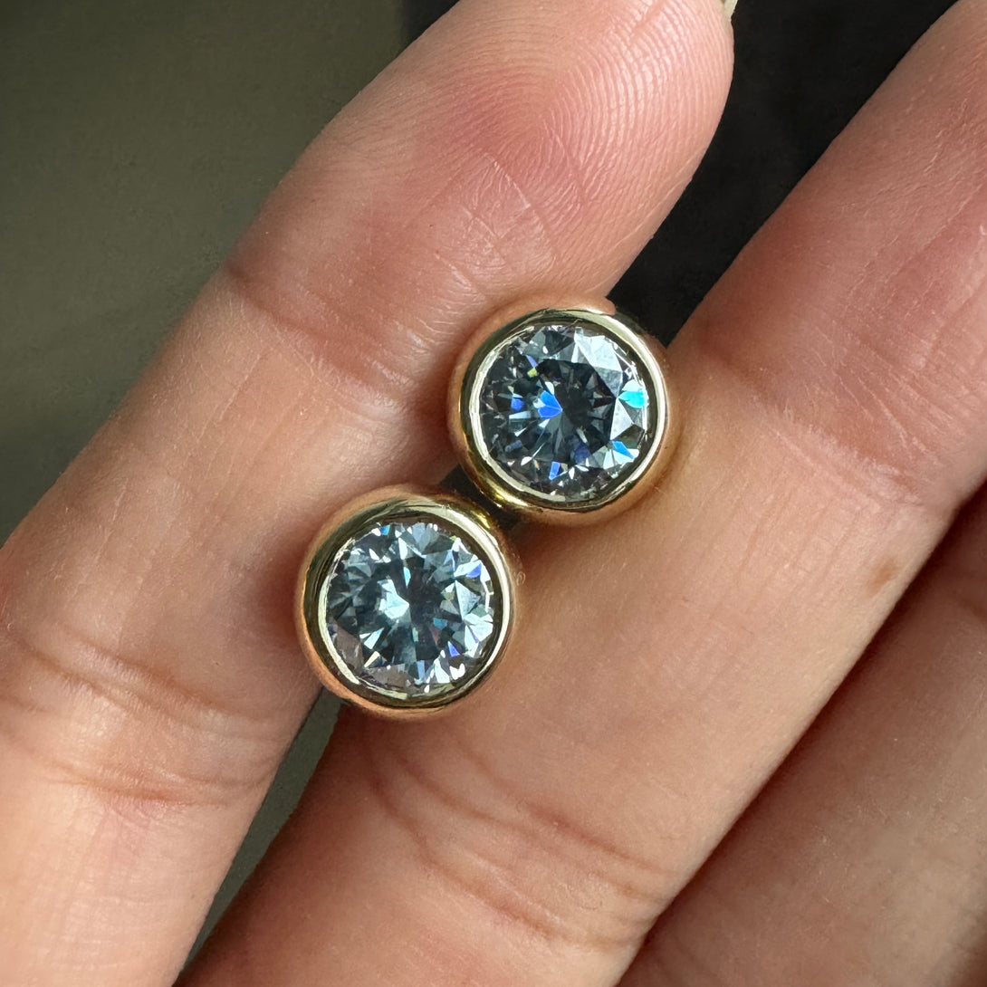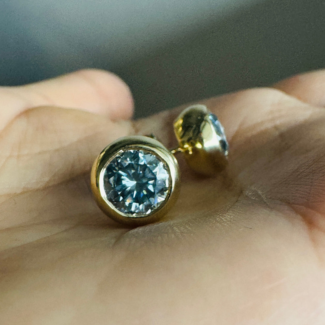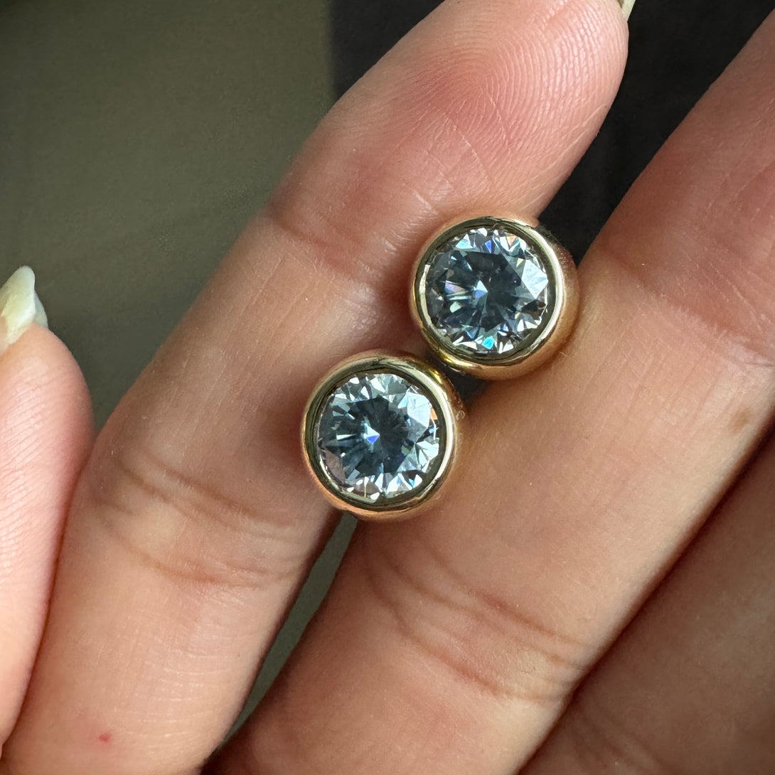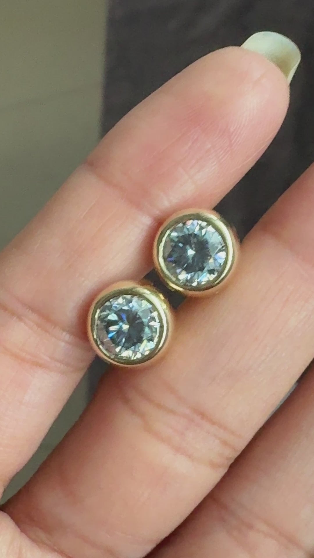 Gray Round Cut Moissanite Earrings Bezel Set Solitaire Handcrafted Studs For Her