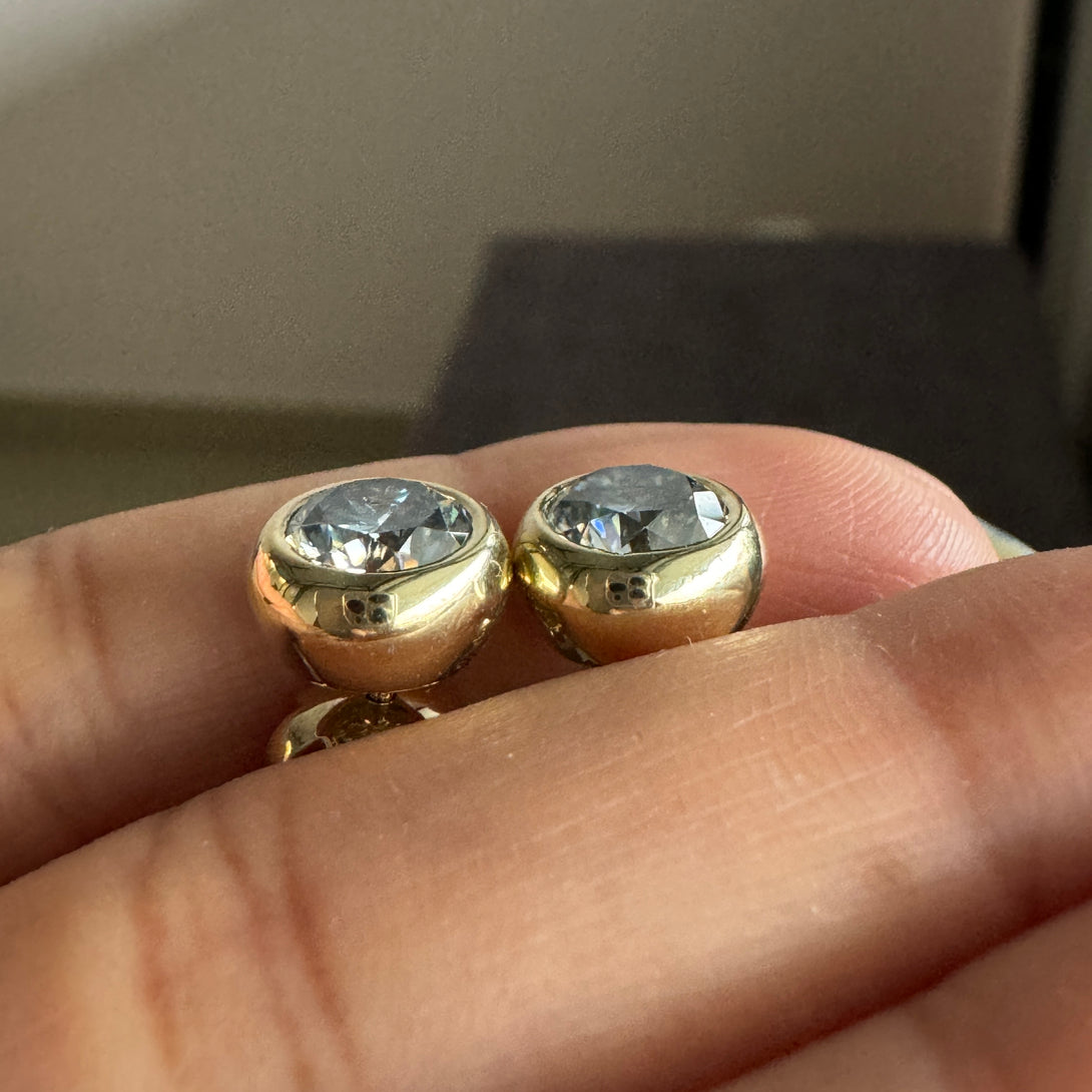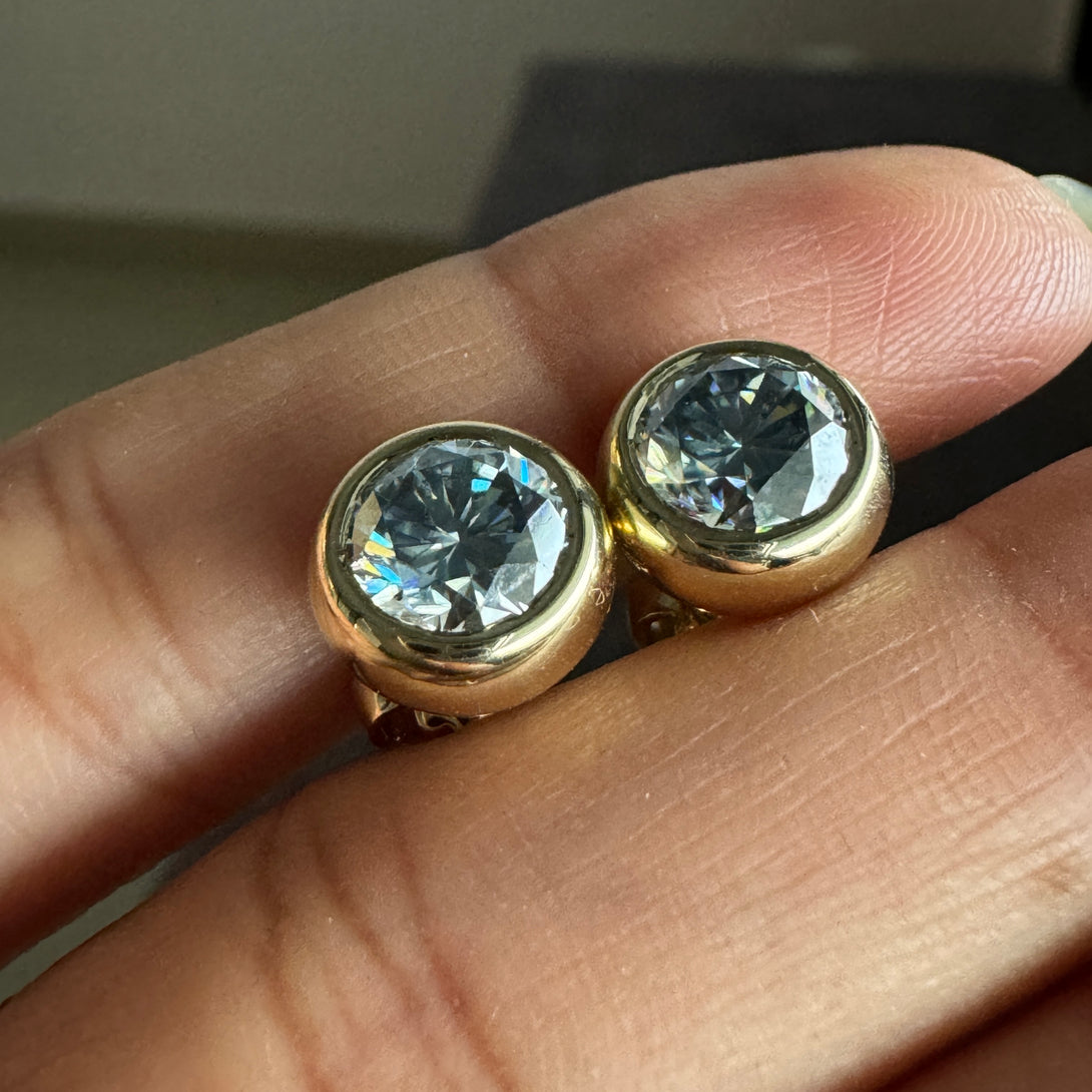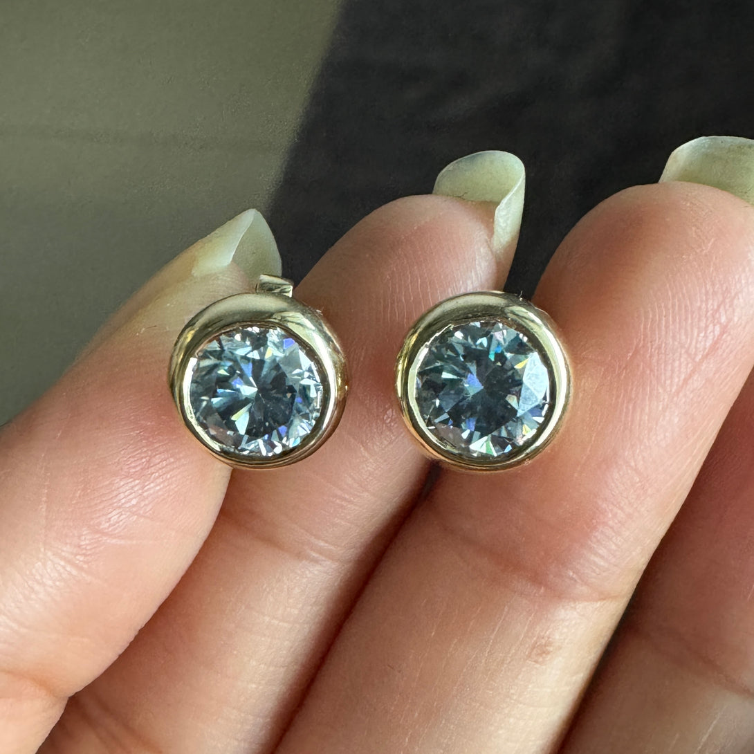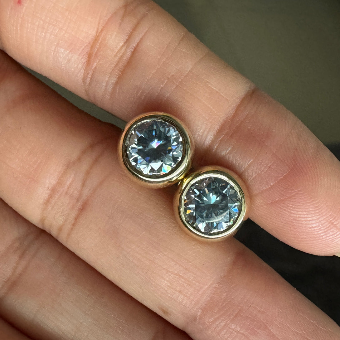 Gray Round Cut Moissanite Earrings Bezel Set Solitaire Handcrafted Studs For Her