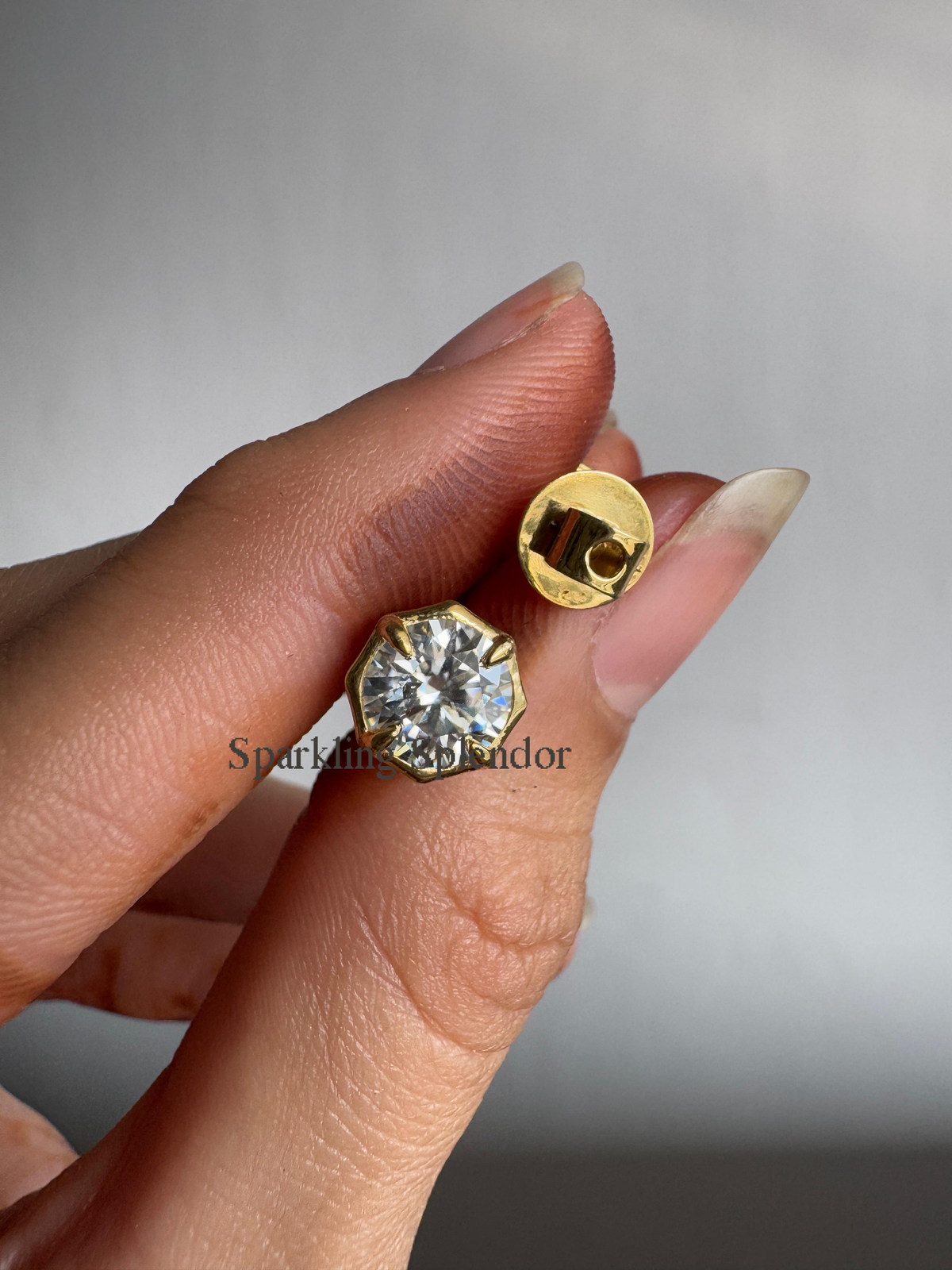 Round Brilliant Cut Bezel Set Earrings Moissanite Diamond Stud Earrings For Her