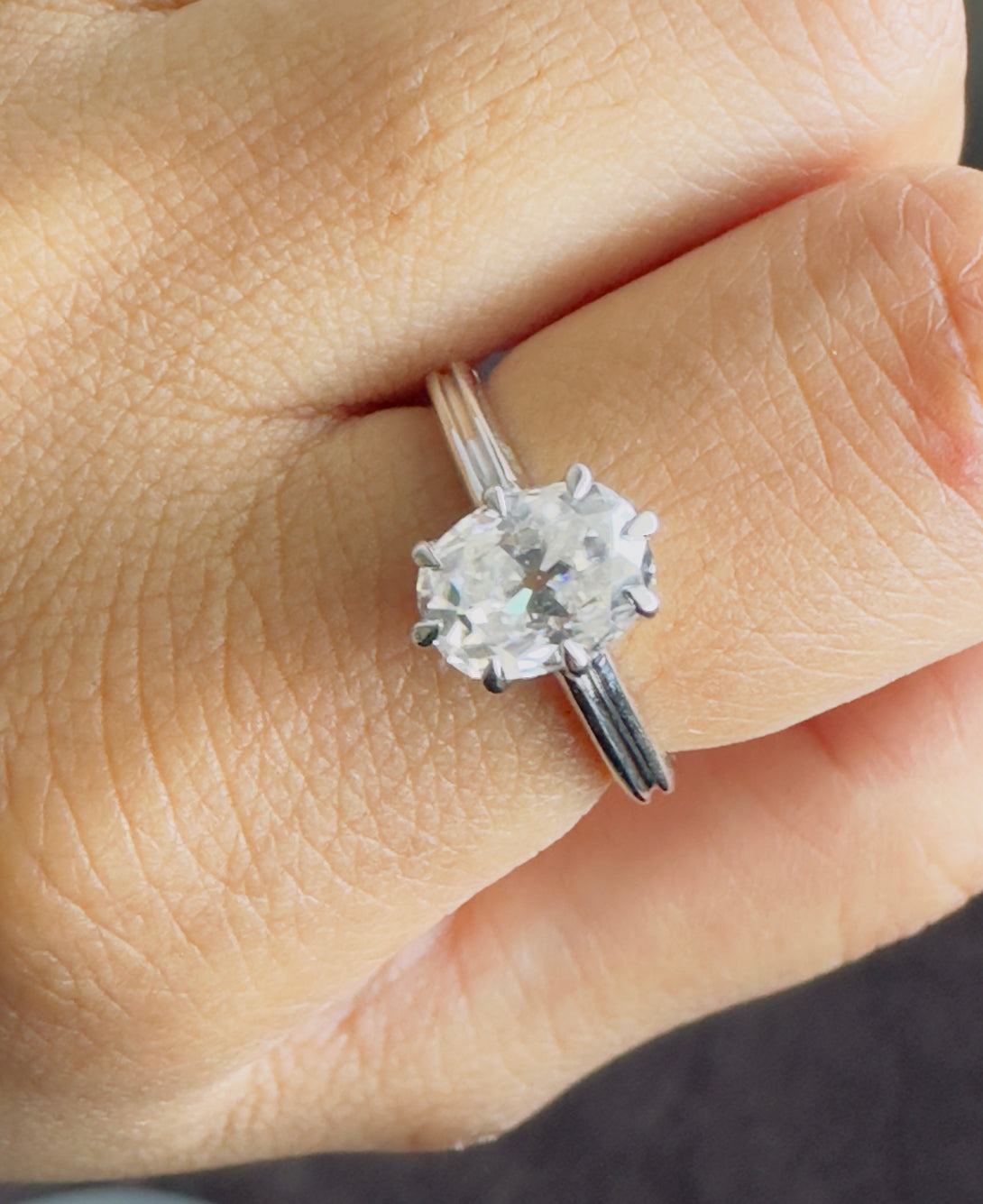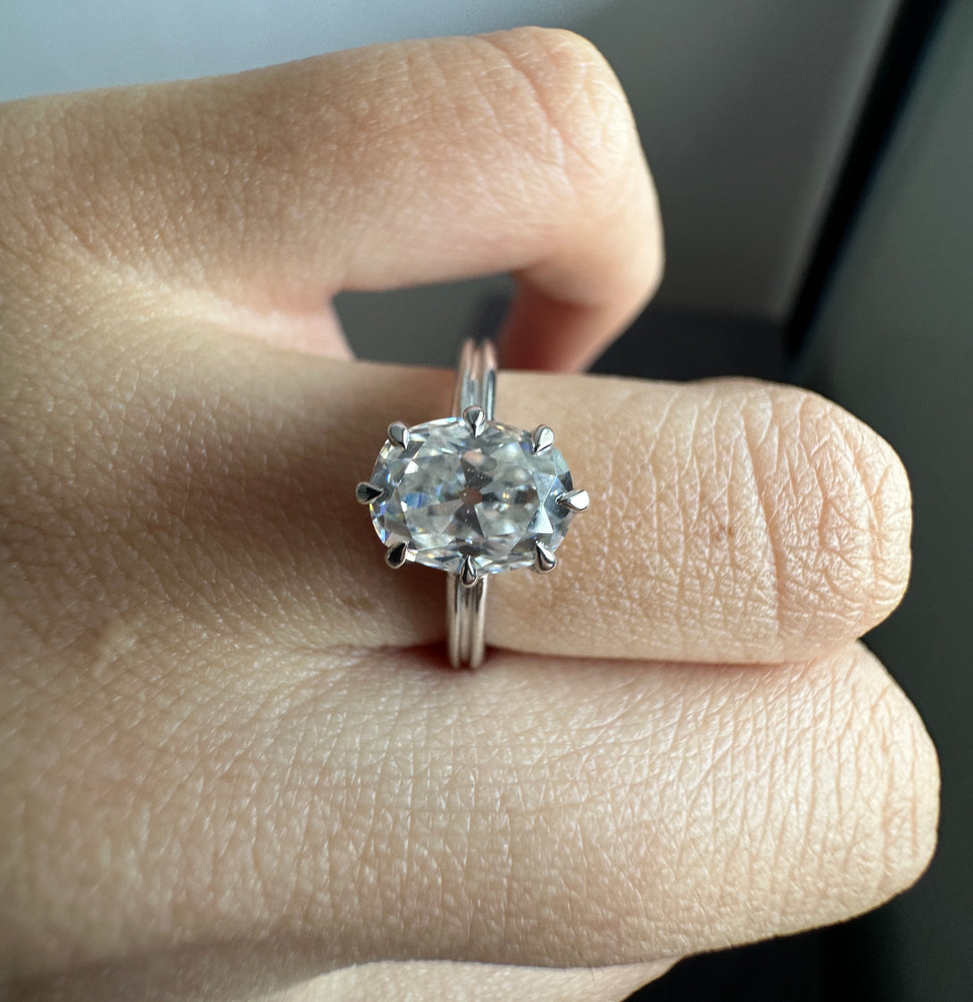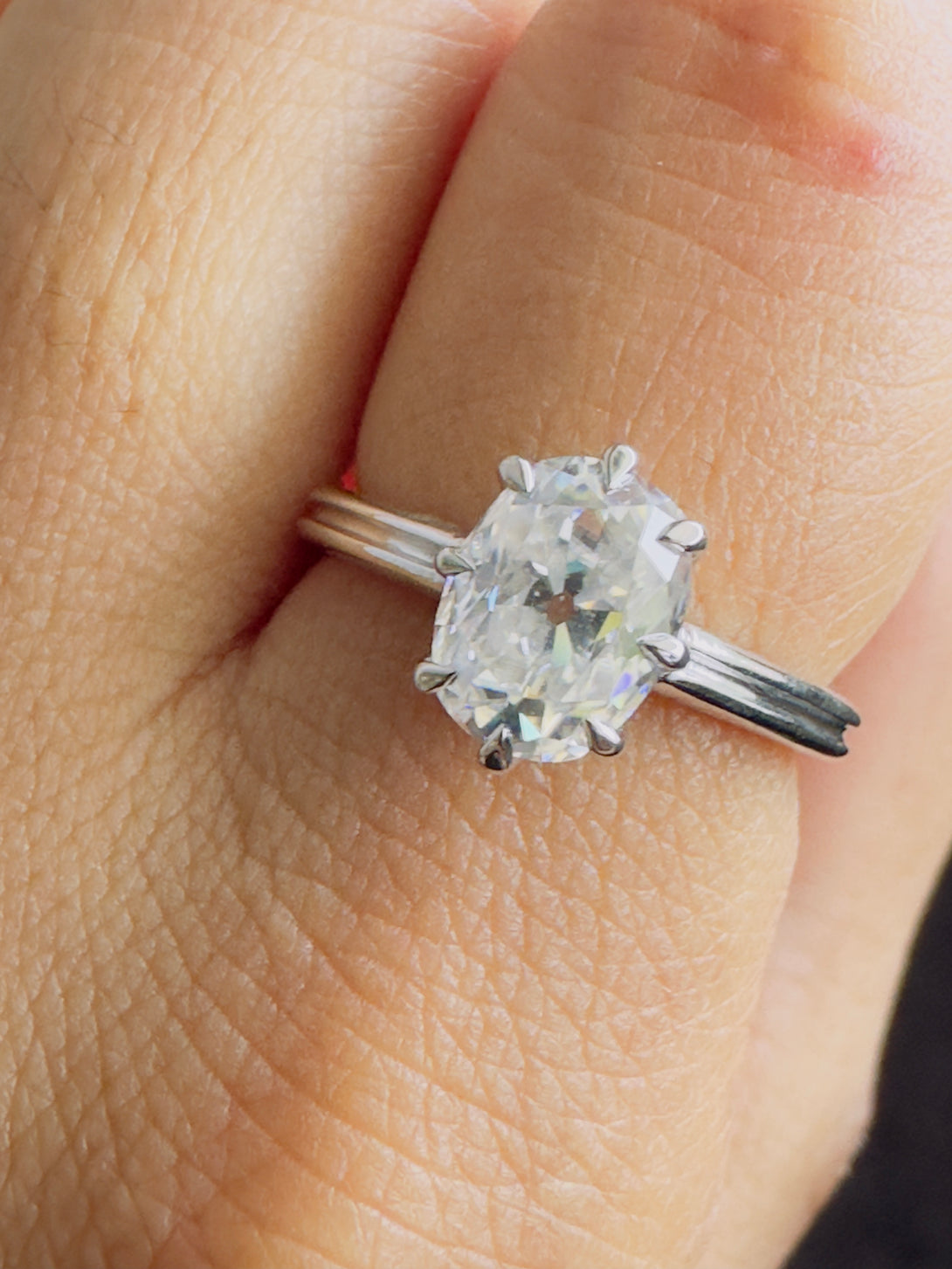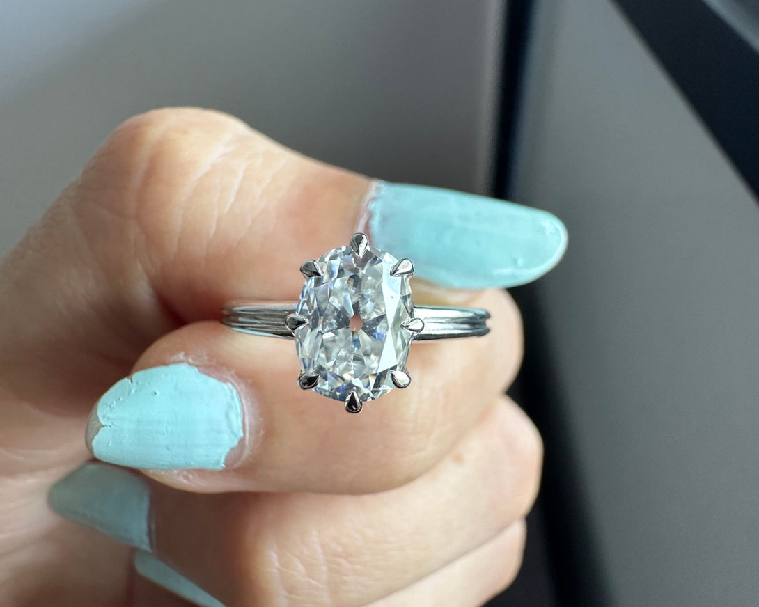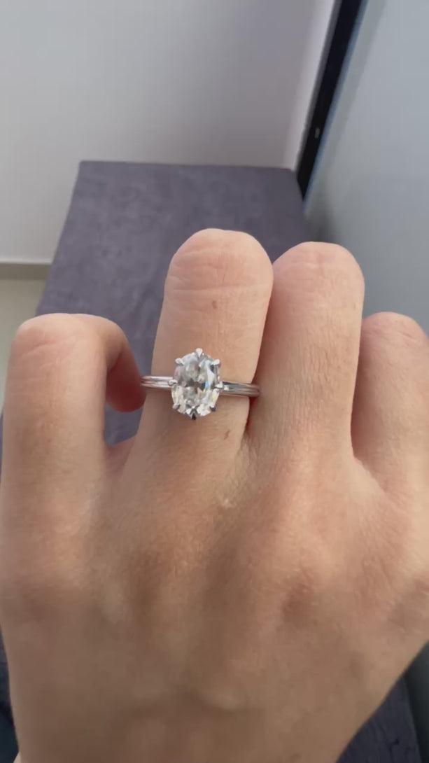 18K Gold Solitaire Ring Colorless 2 Carat Old European Oval Cut Moissanite Engagement Ring