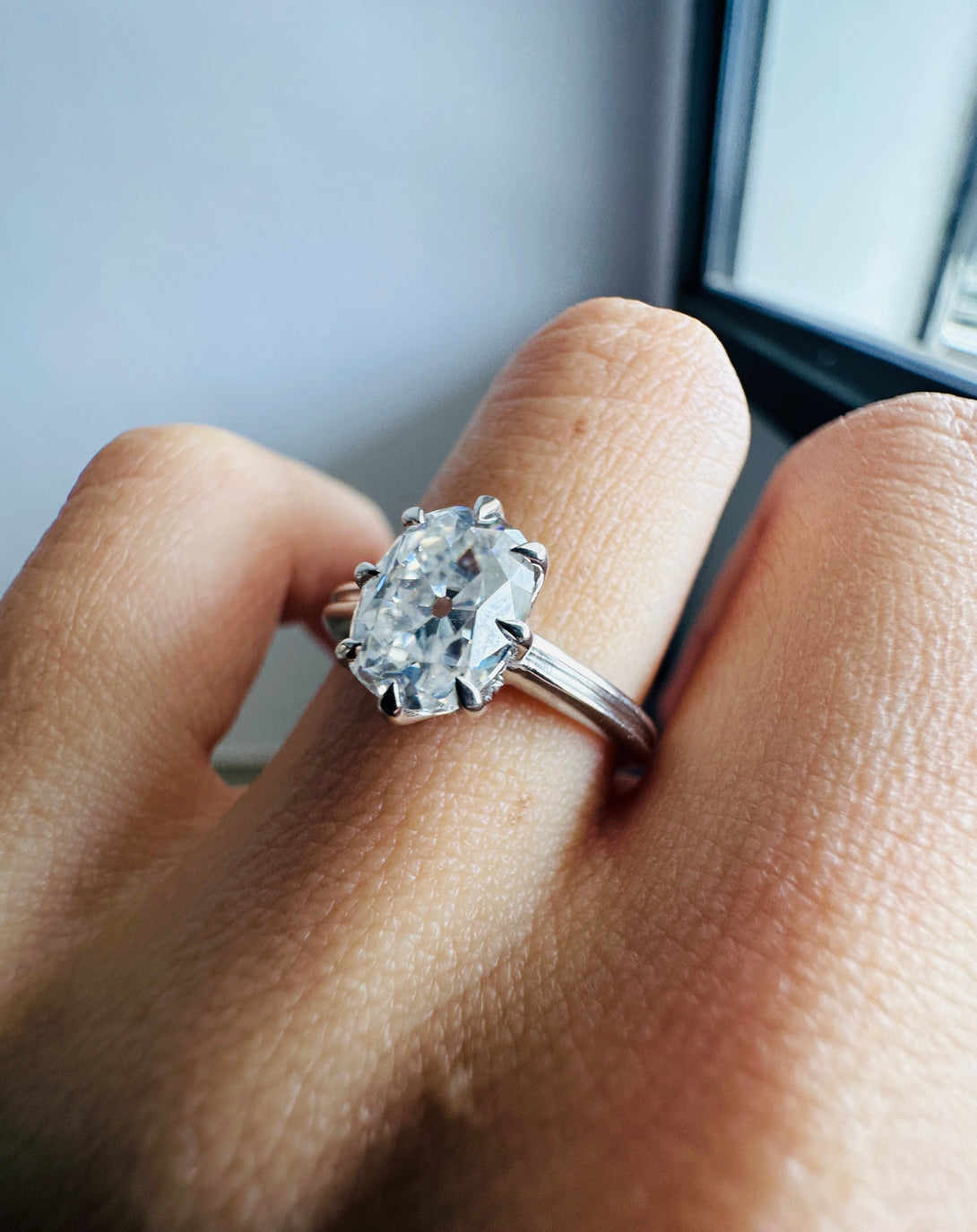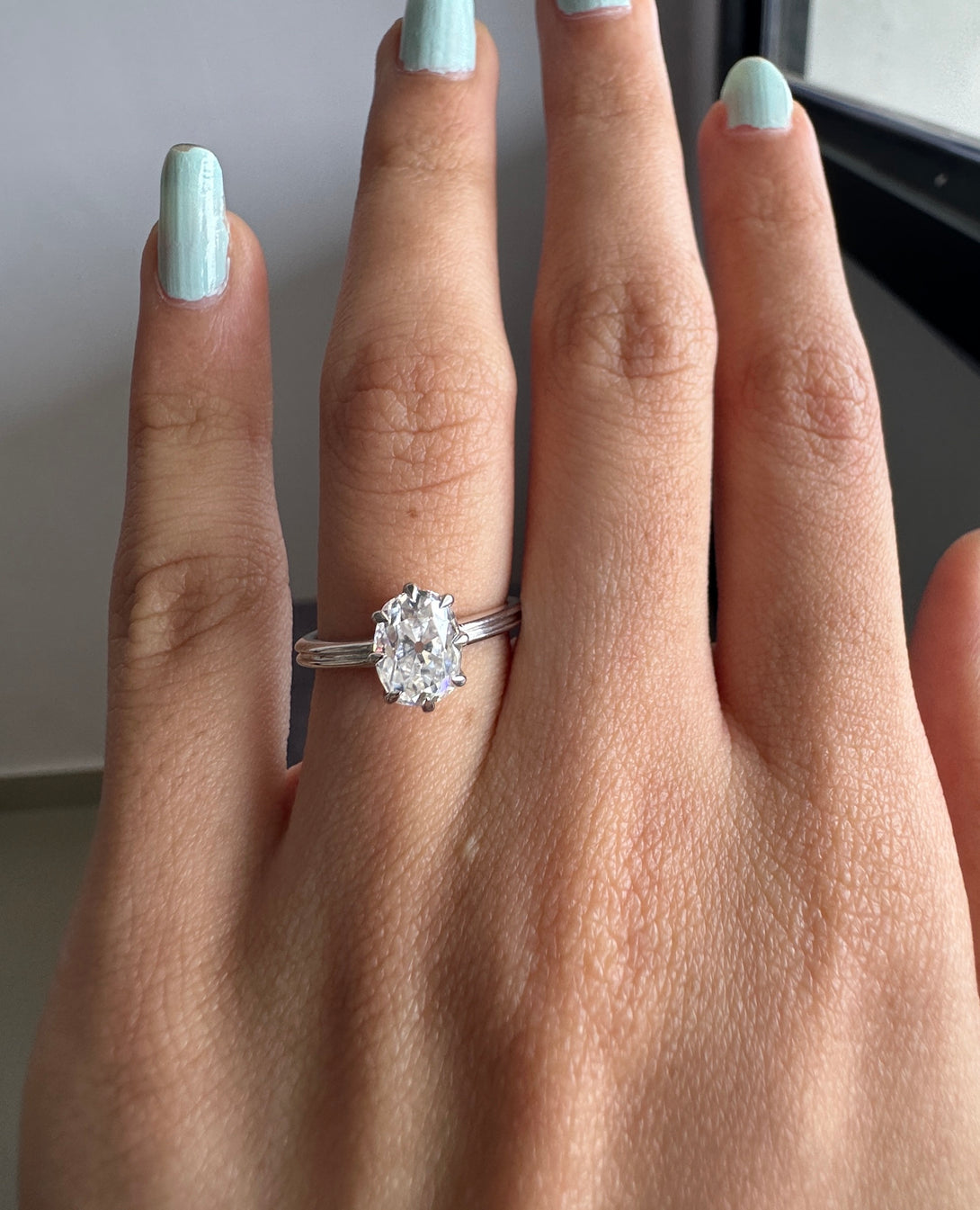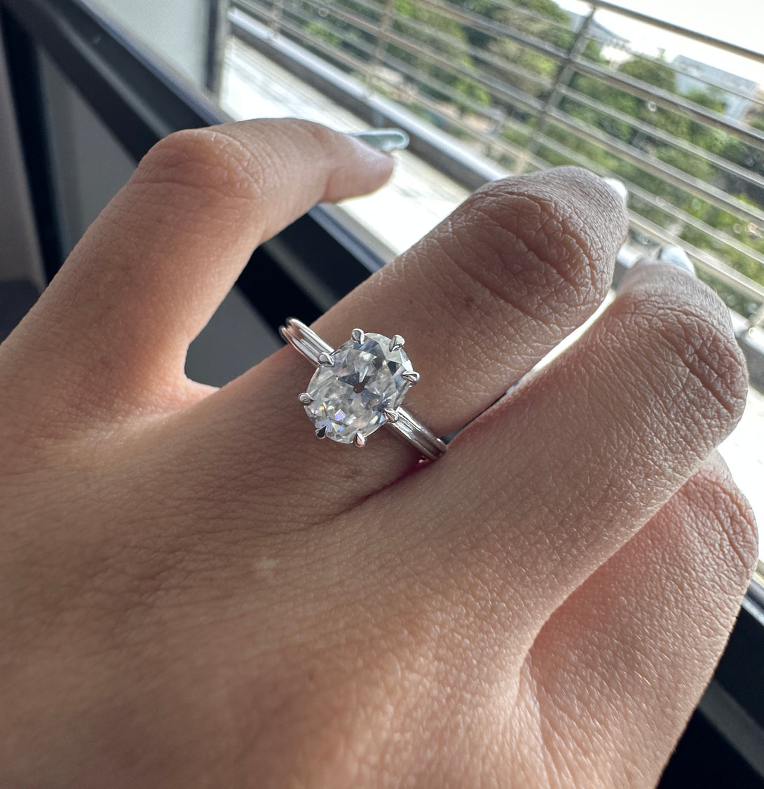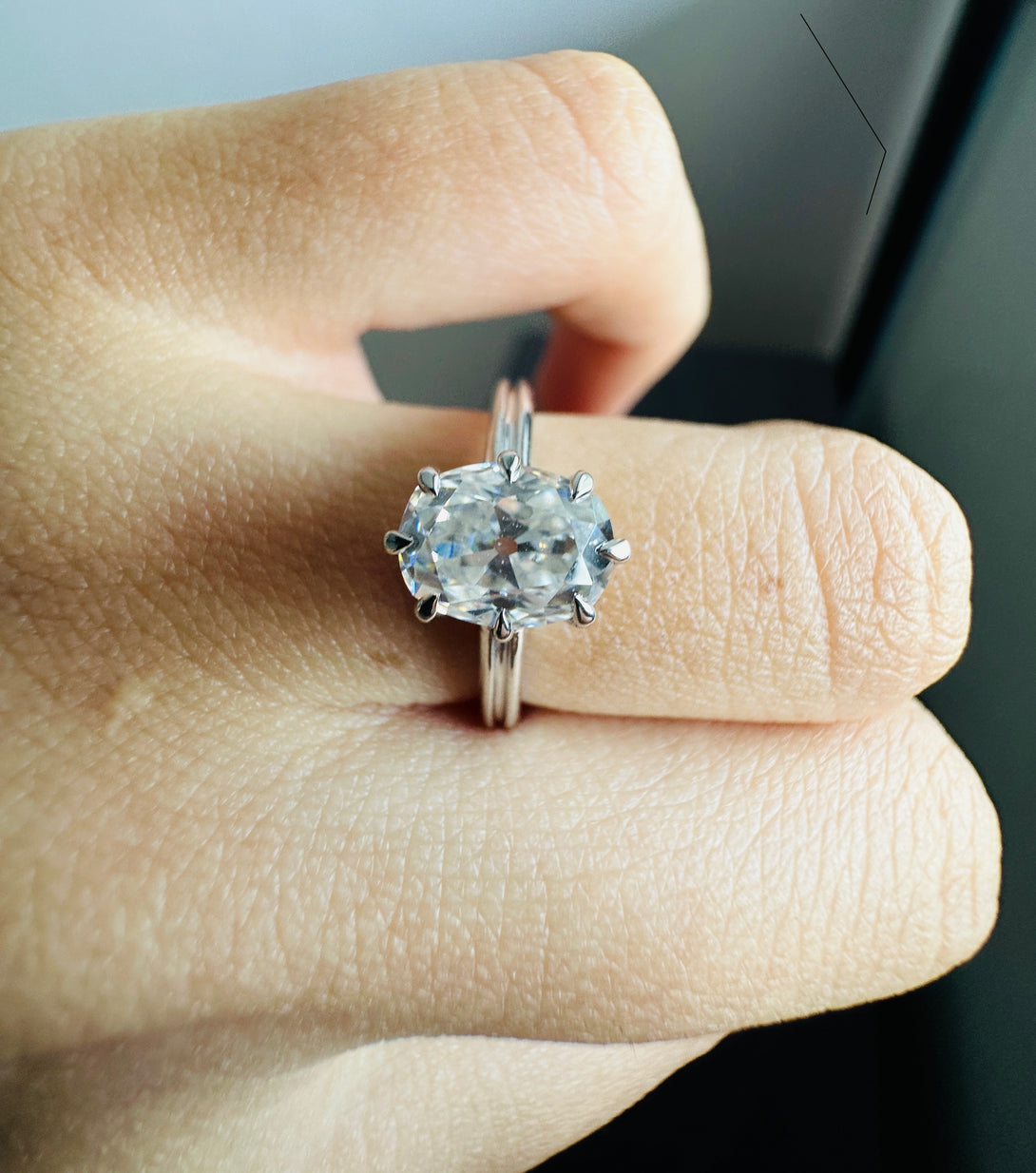 18K Gold Solitaire Ring Colorless 2 Carat Old European Oval Cut Moissanite Engagement Ring