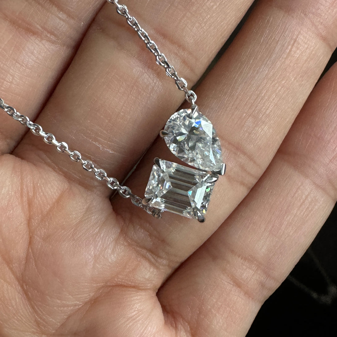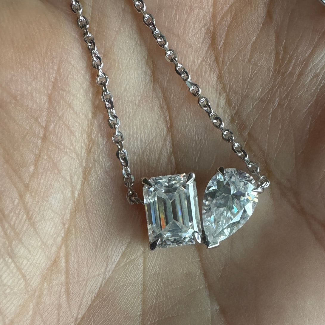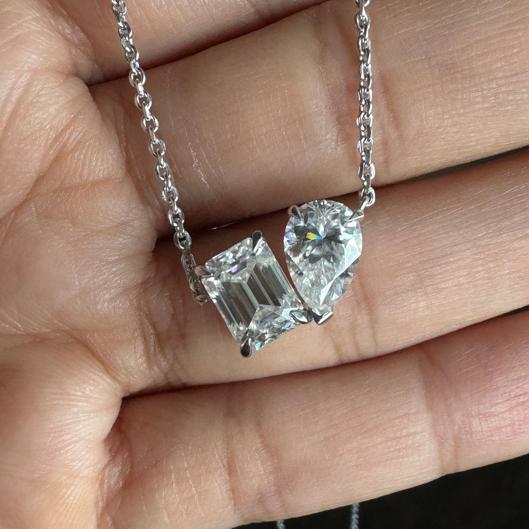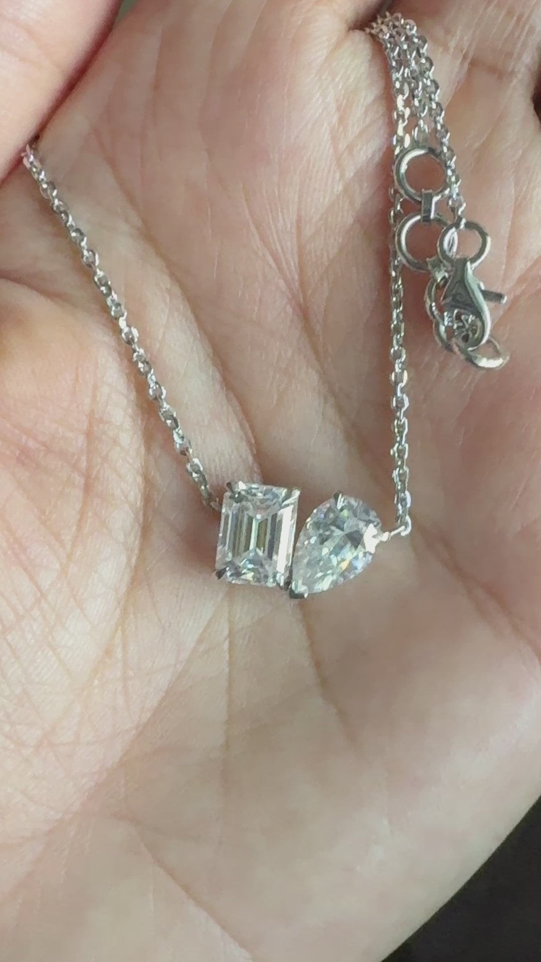 Pear & Emerald Cut Moissanite Necklace Tit Et Moi Unique Pendant Necklace Her