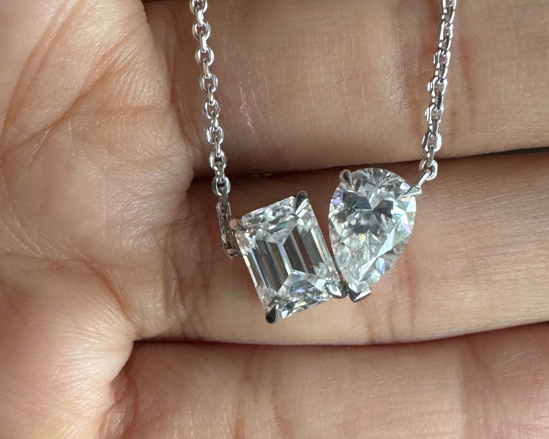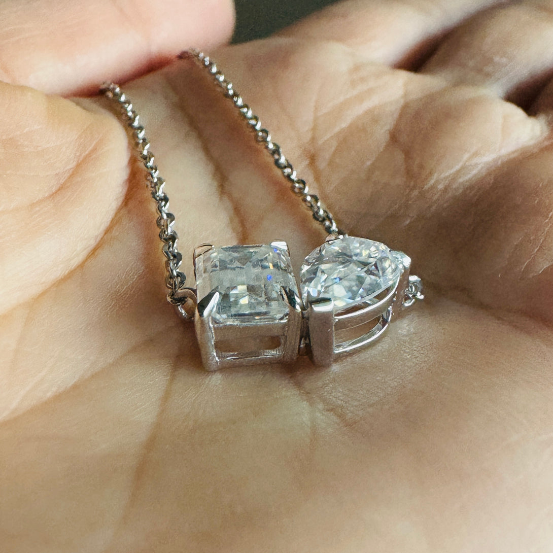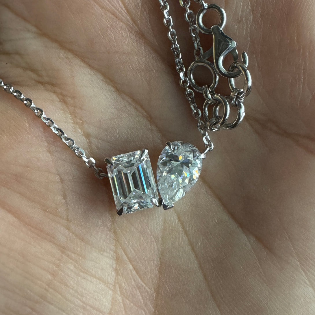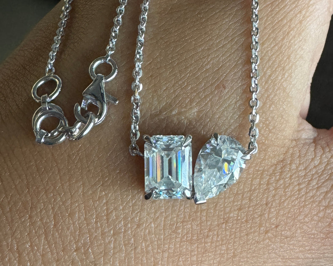 Pear & Emerald Cut Moissanite Necklace Tit Et Moi Unique Pendant Necklace Her