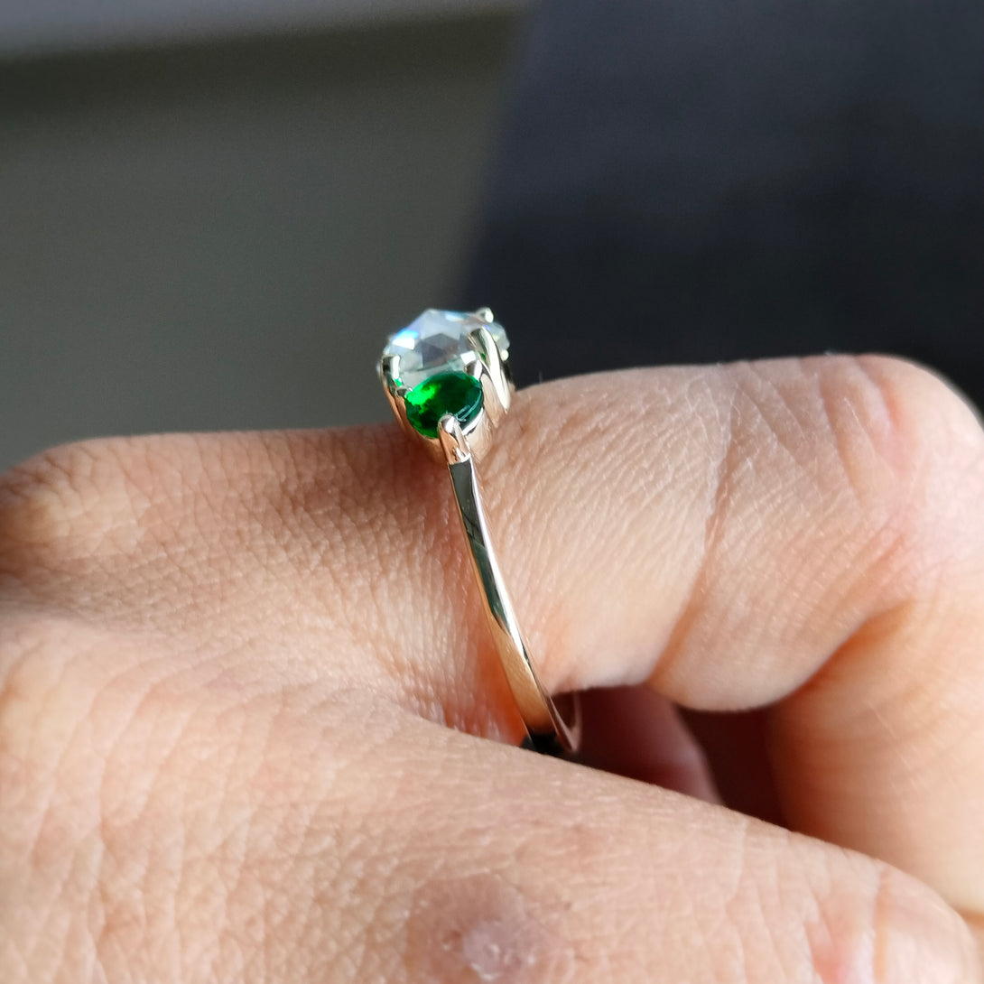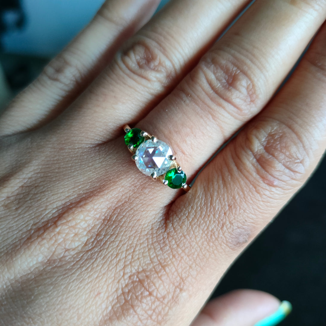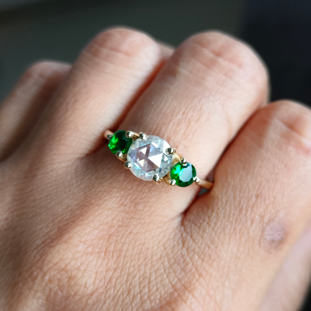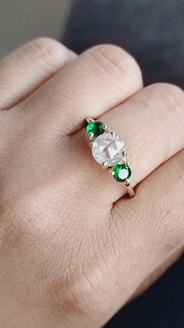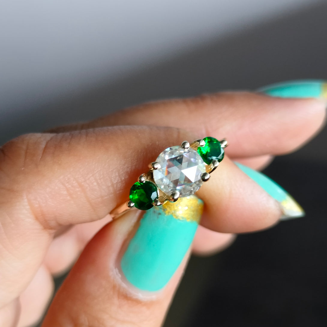 Rose Cut Engagement Ring Round Moissanite Three Stone Dainty Promise Ring