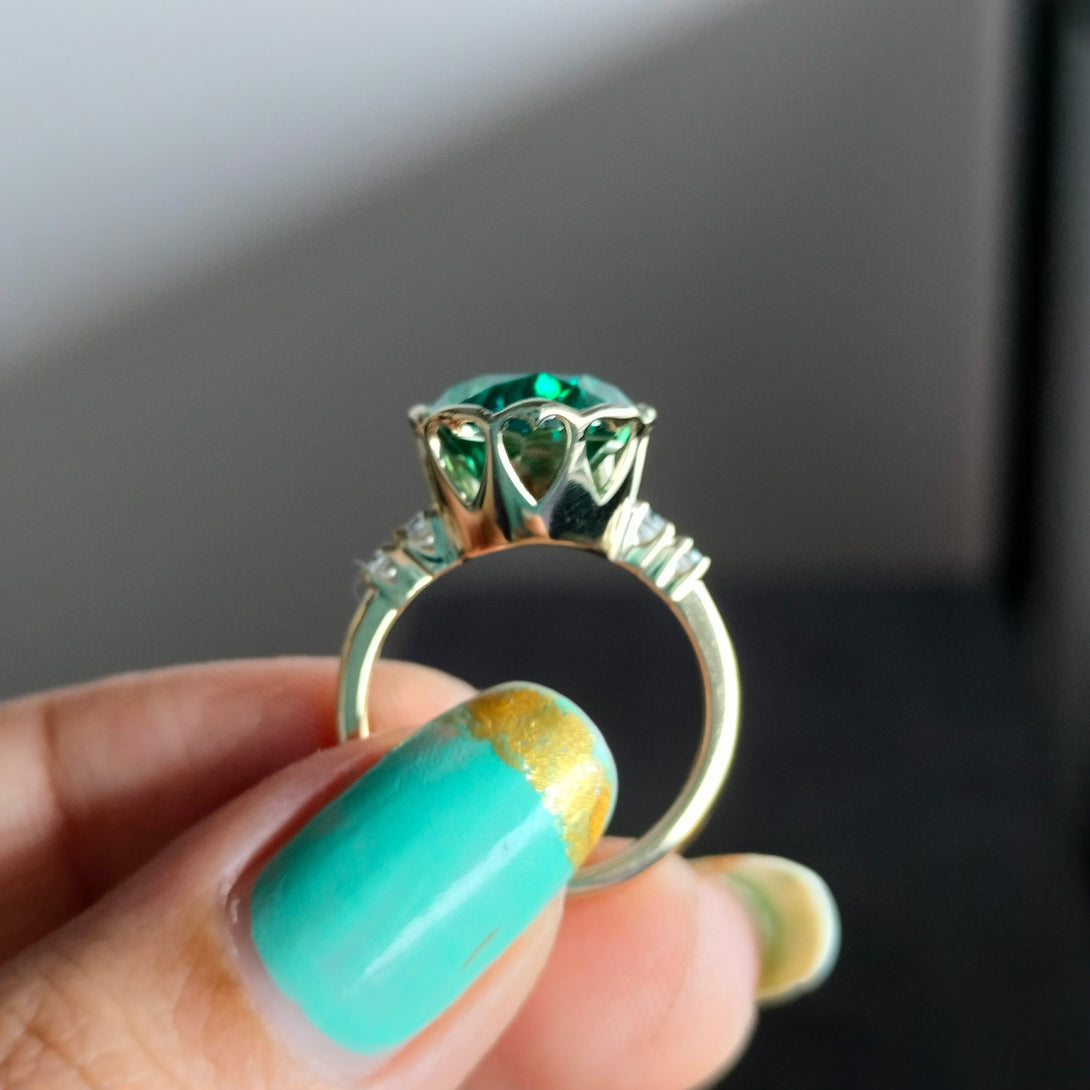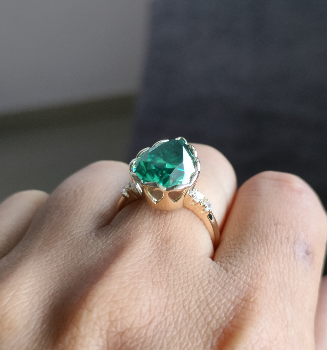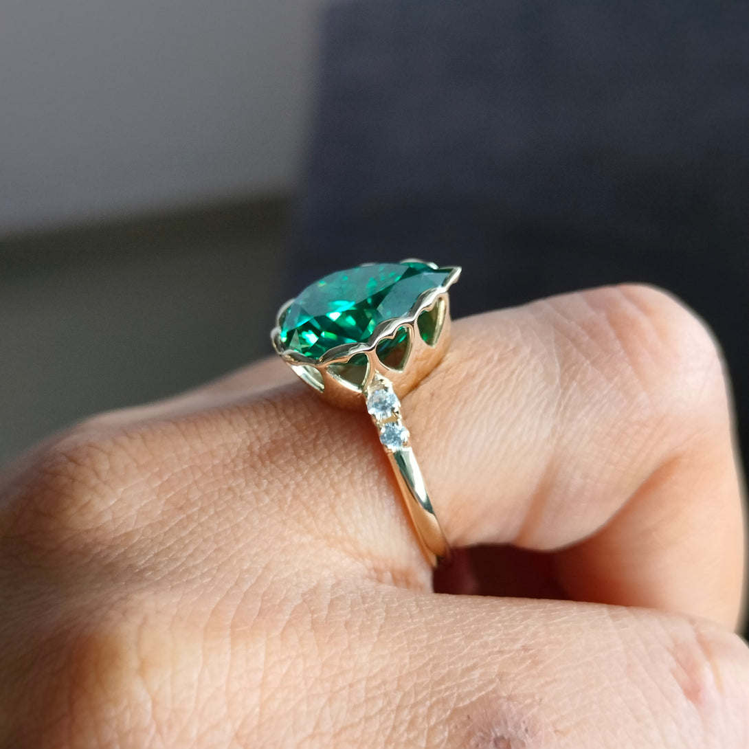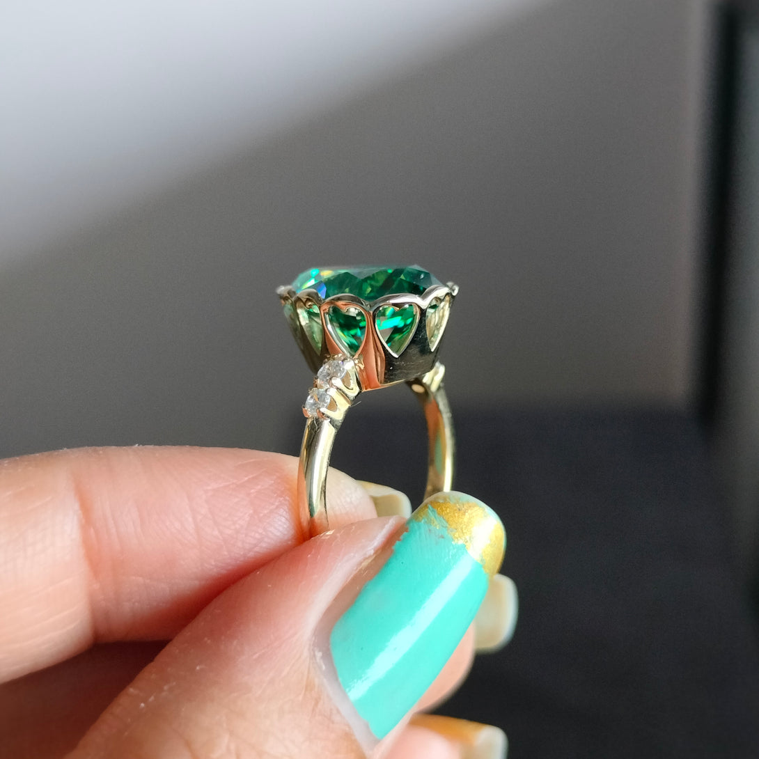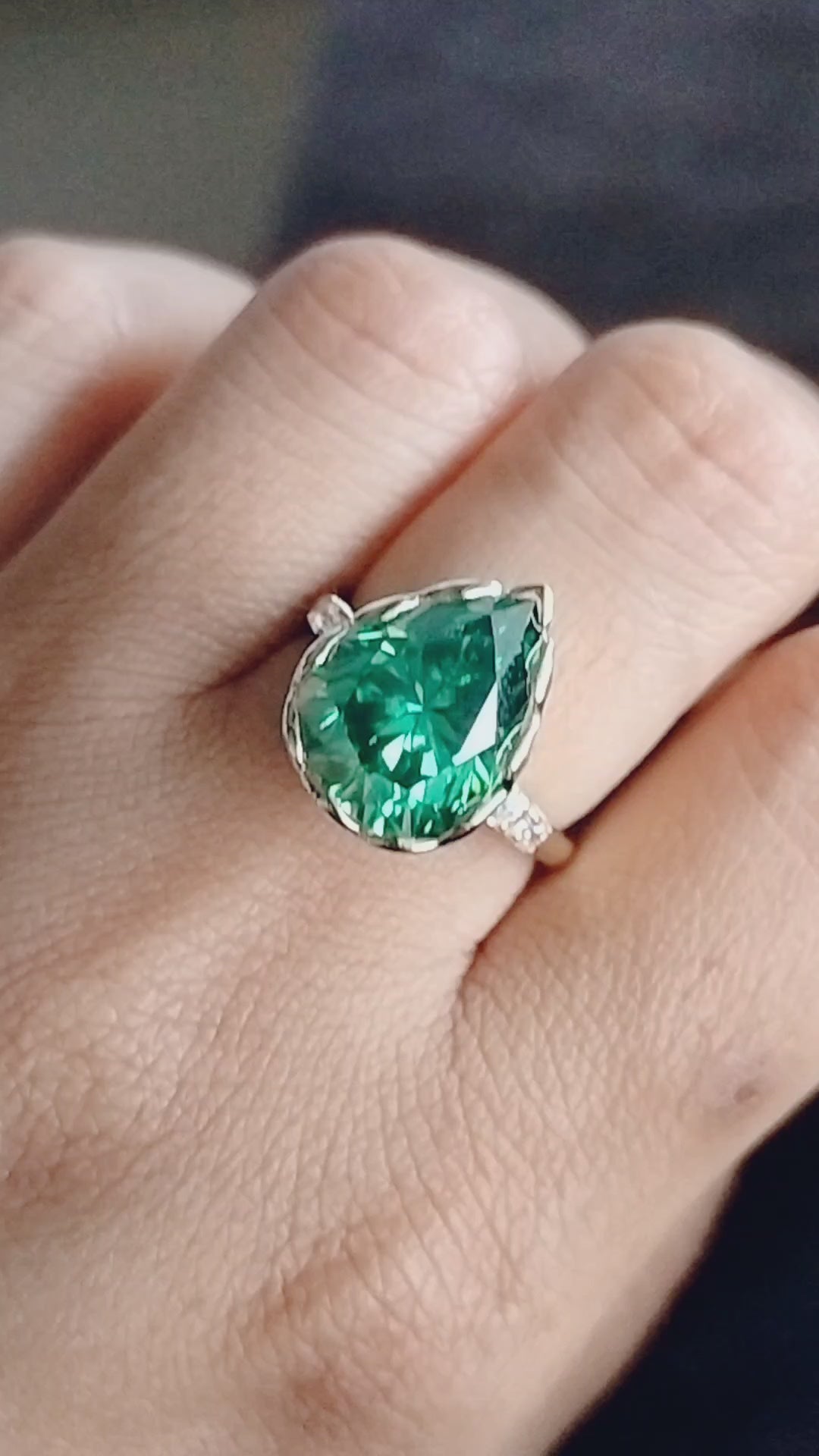 Pear Cut Big Engagement Ring 18K Gold Dark Green Moissanite Wedding Ring