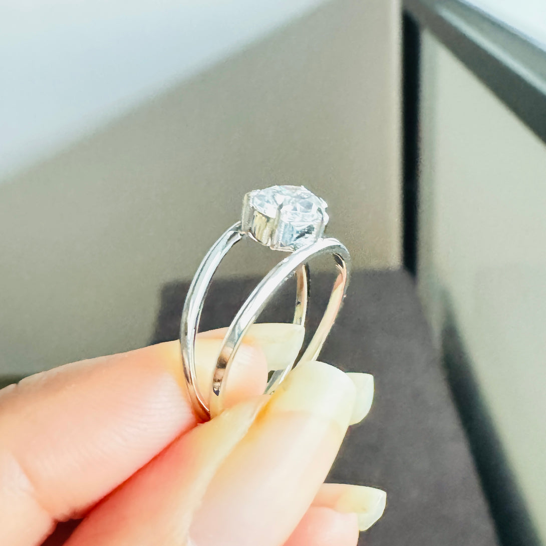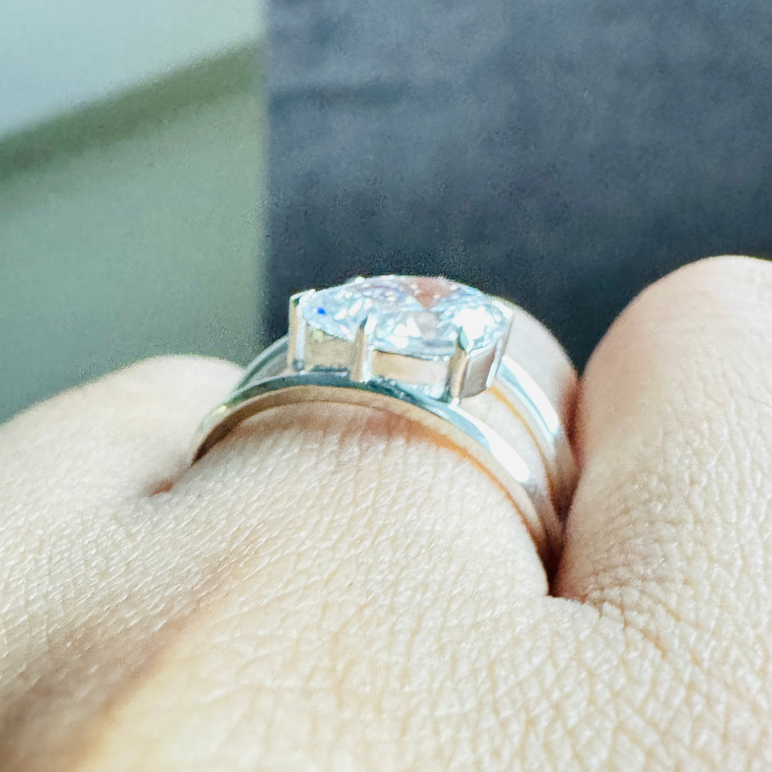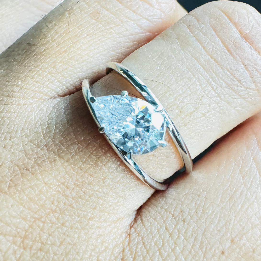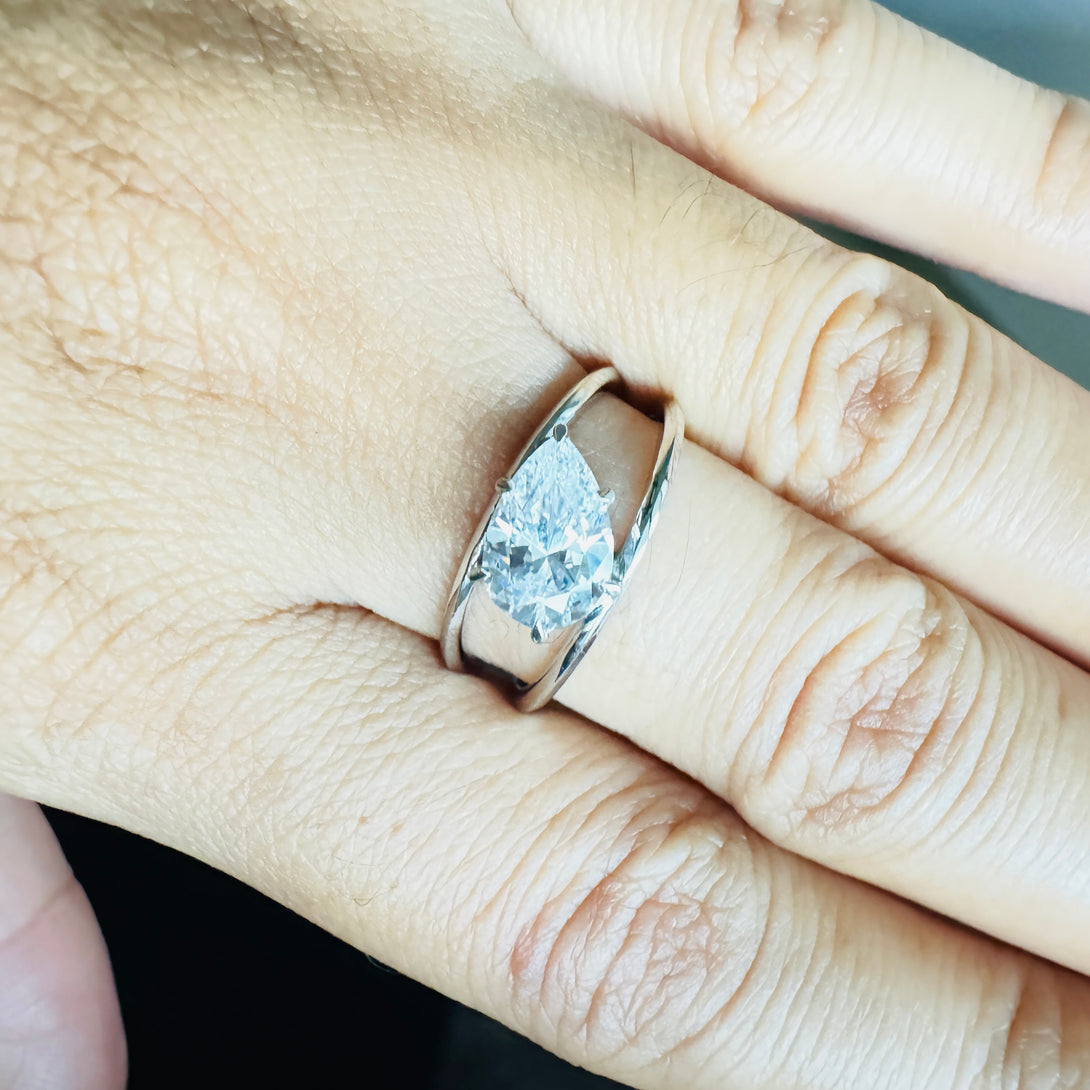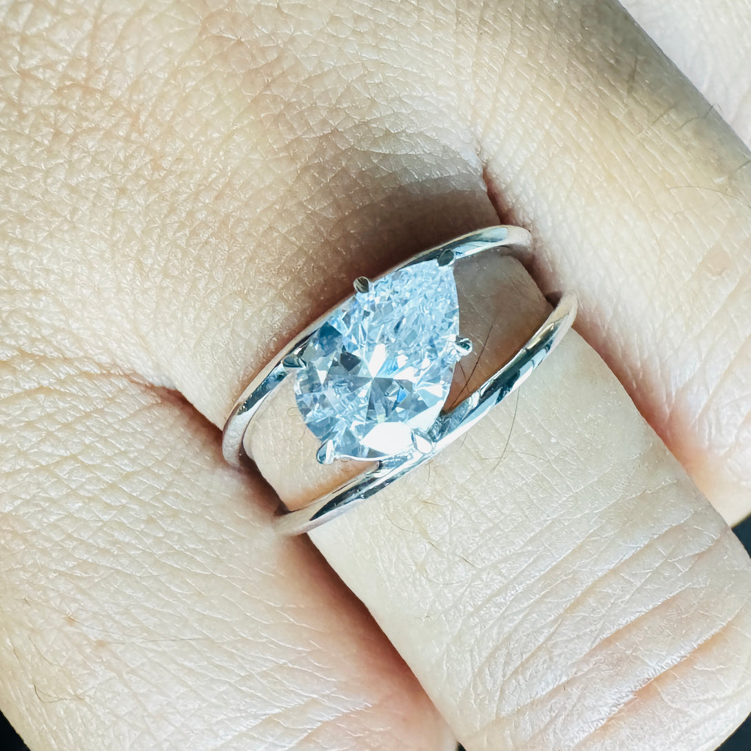 Solitaire Pear Engagement Ring Double Band Teardrop Moissanite Ring in Gold