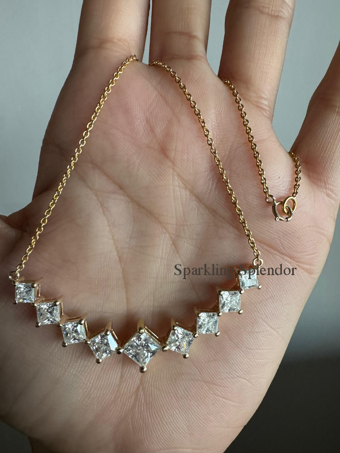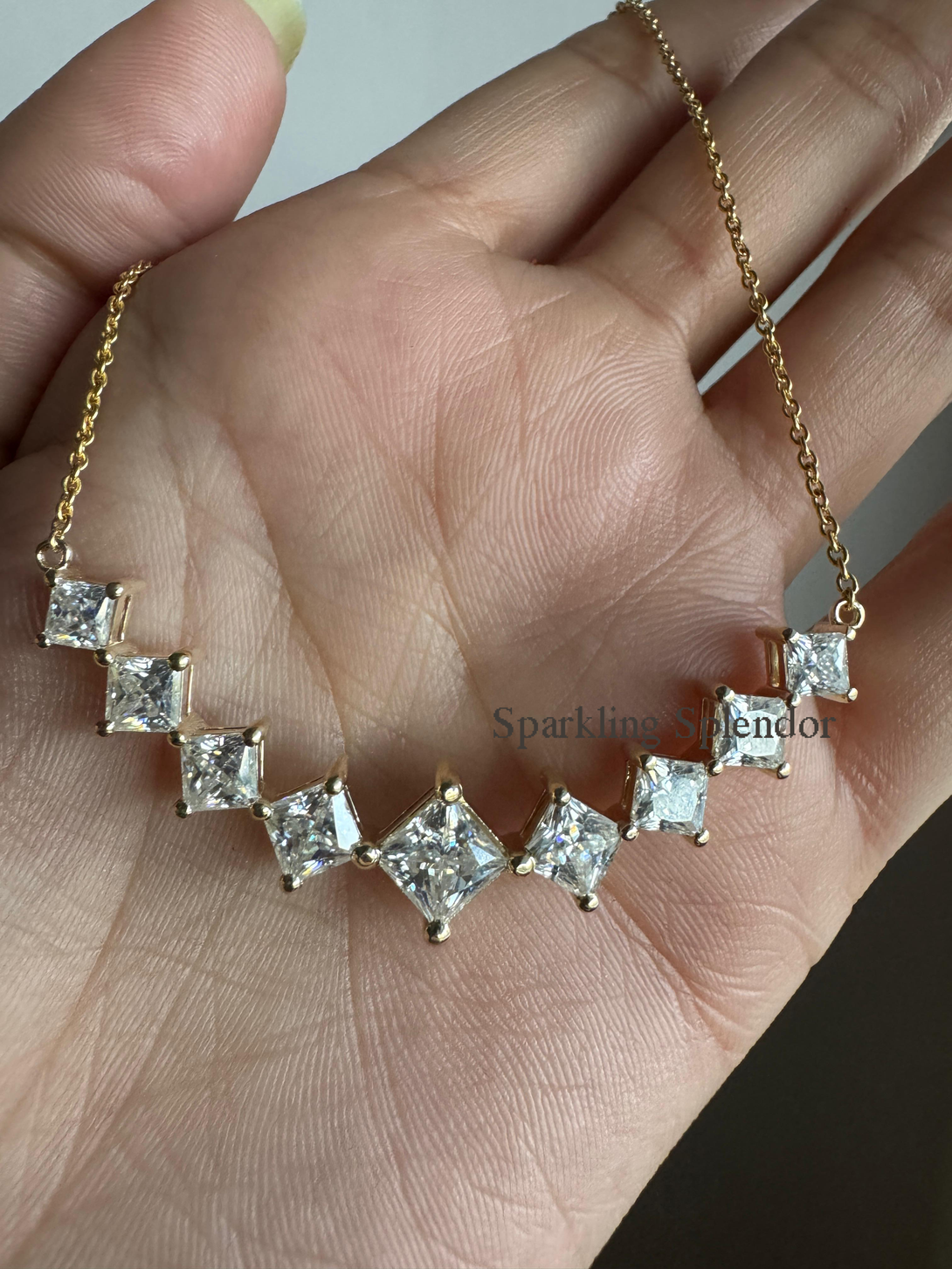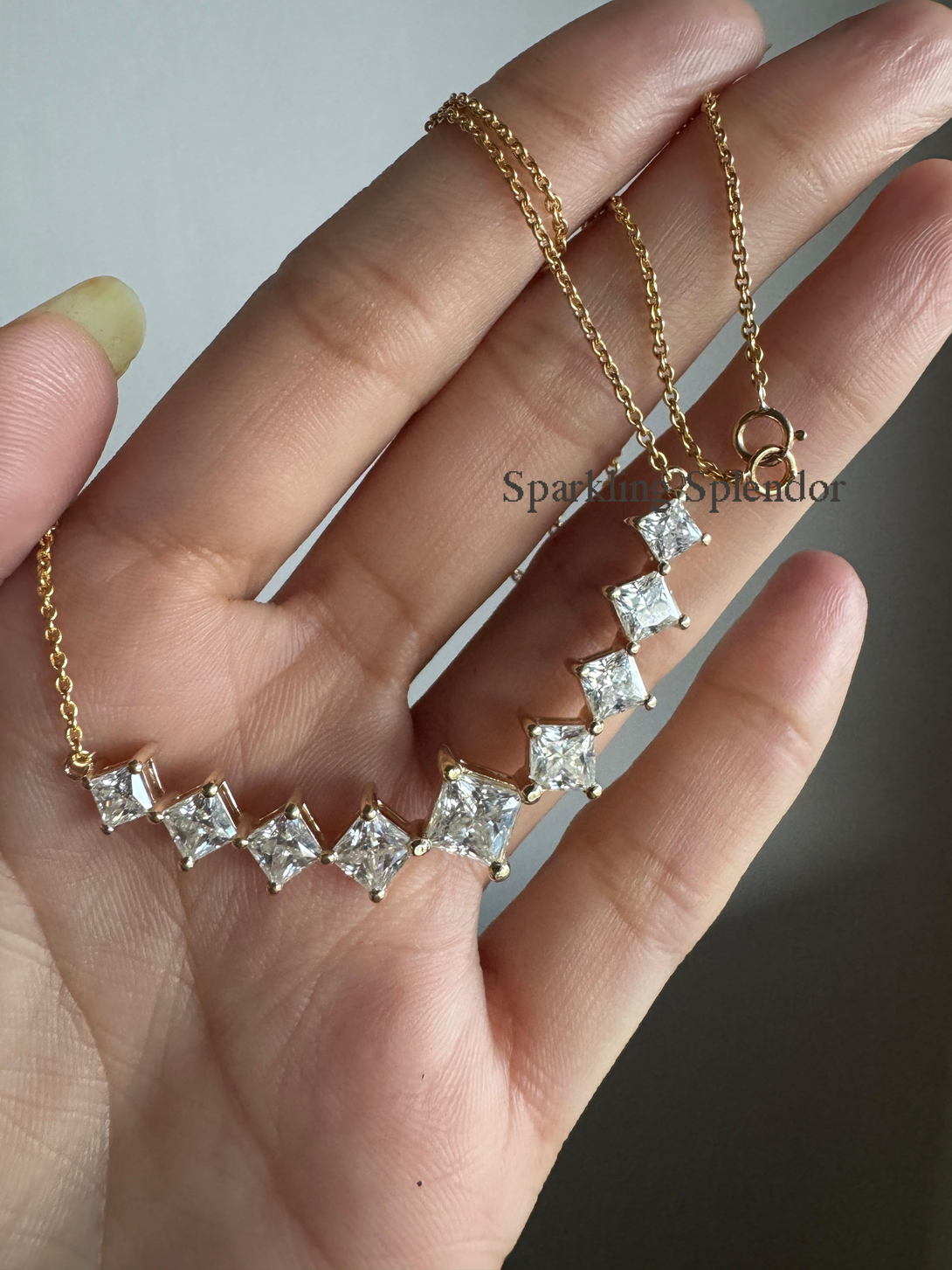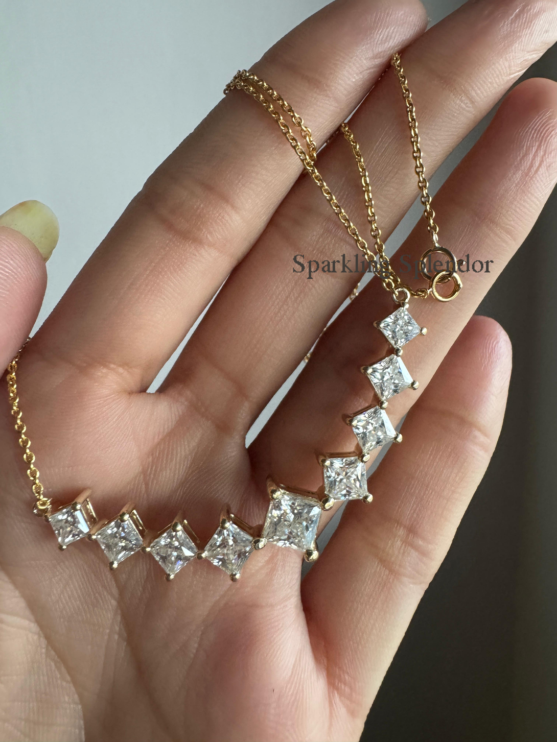 Princess Cut Moissanite Graduate Necklace in Solid Gold Anniversary Gift For Her