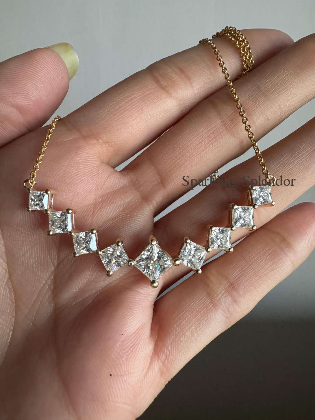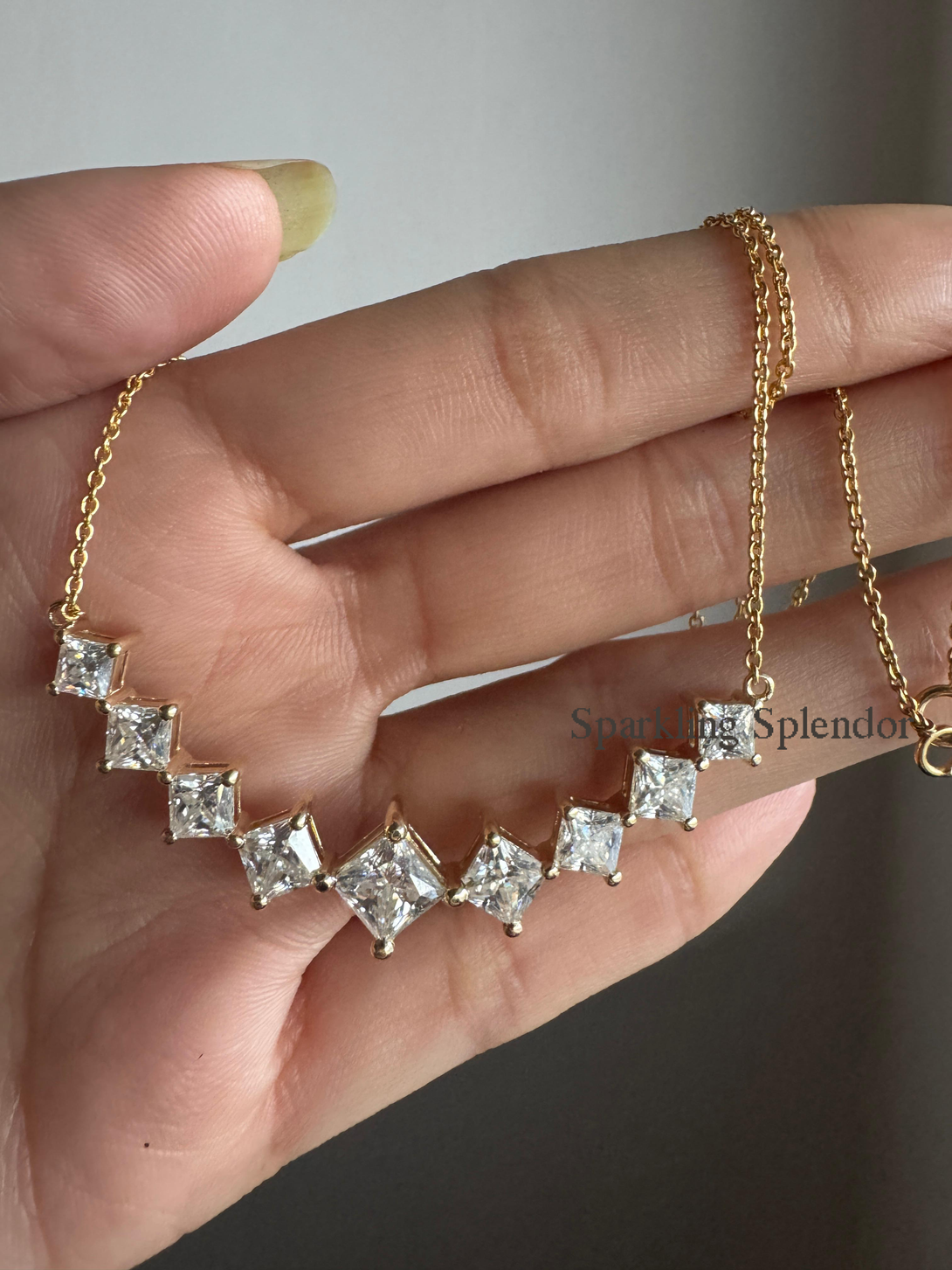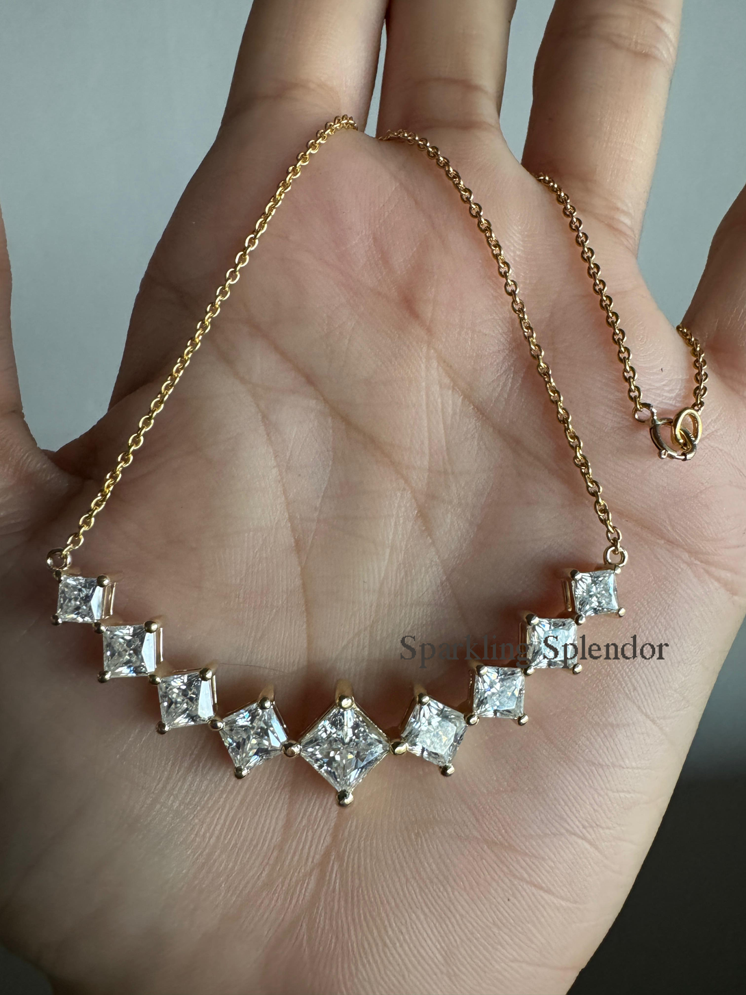 Princess Cut Moissanite Graduate Necklace in Solid Gold Anniversary Gift For Her