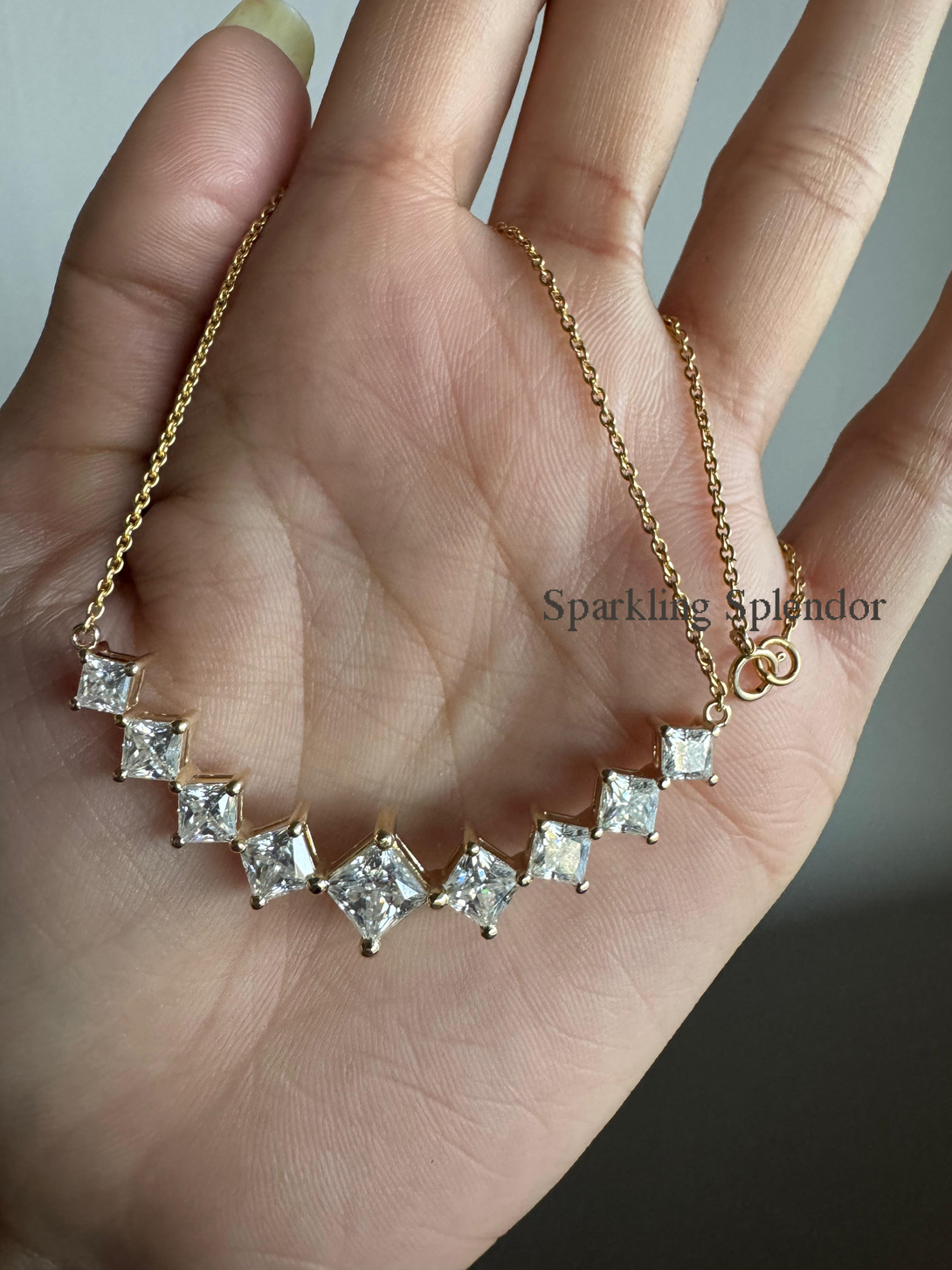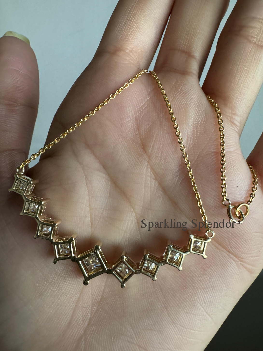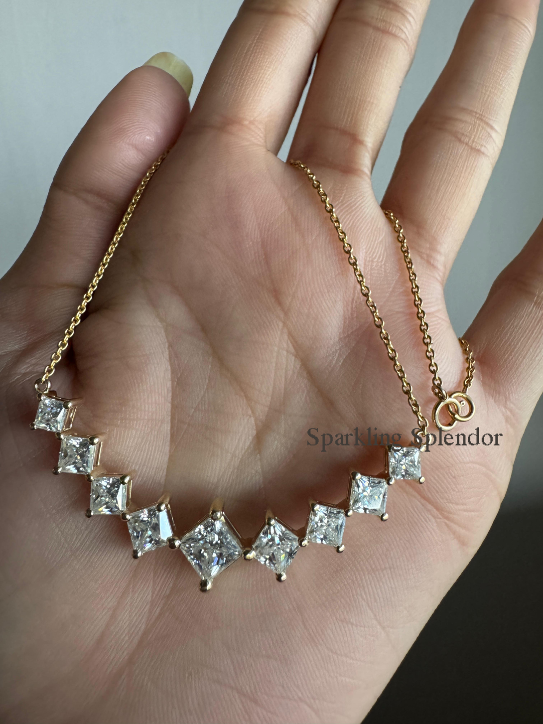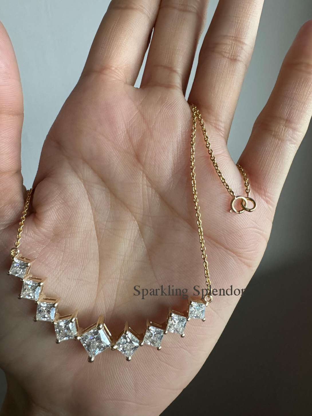 Princess Cut Moissanite Graduate Necklace in Solid Gold Anniversary Gift For Her