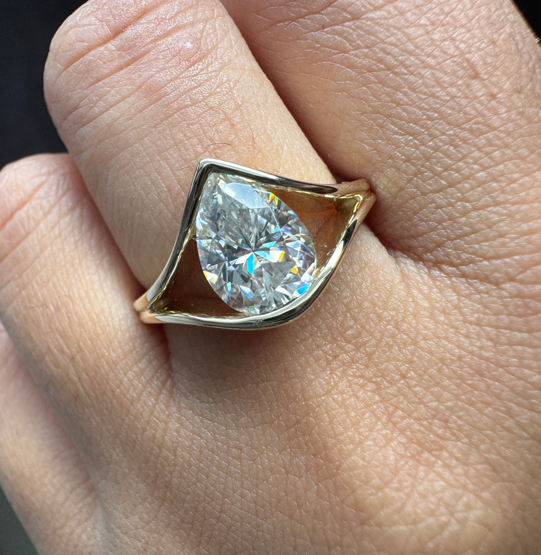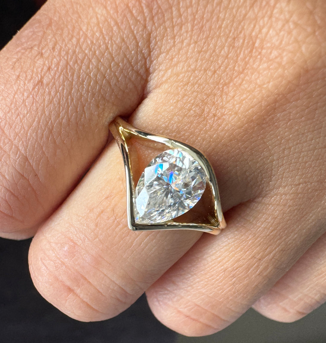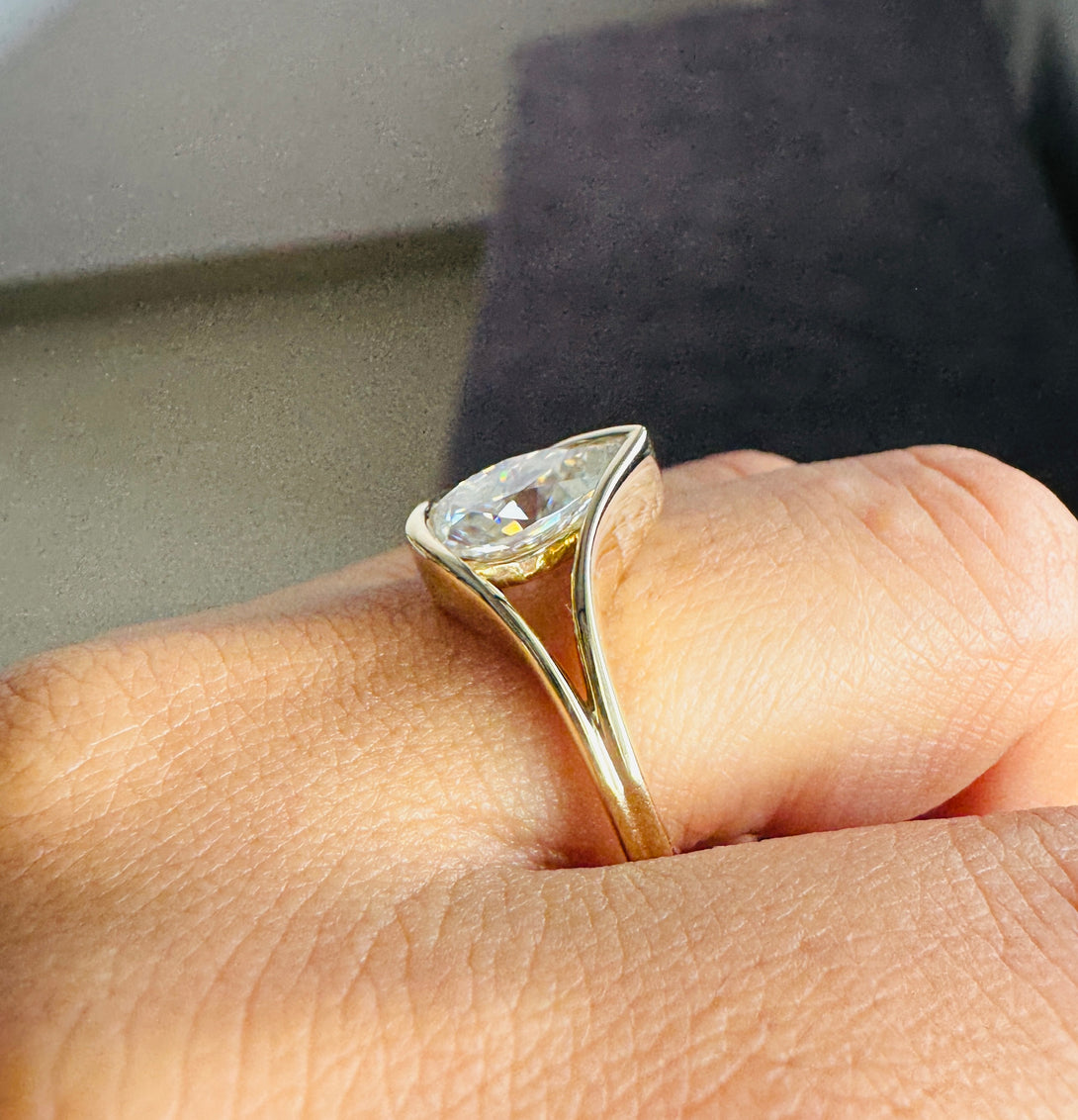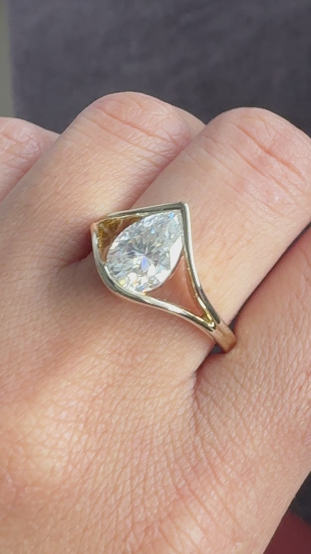 Tension Set Moissanite Split Band Ring Solitaire Pear Cut Moissanite Gold Ring