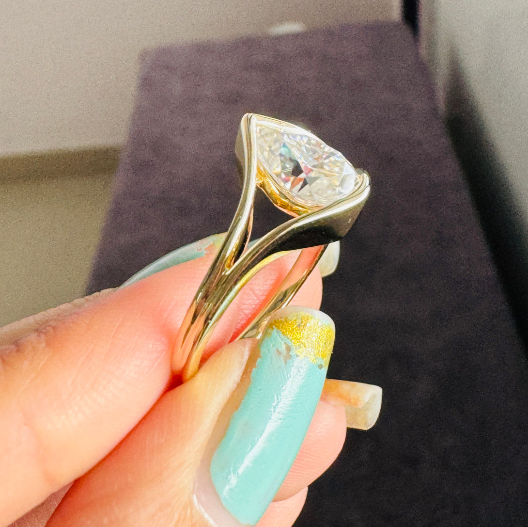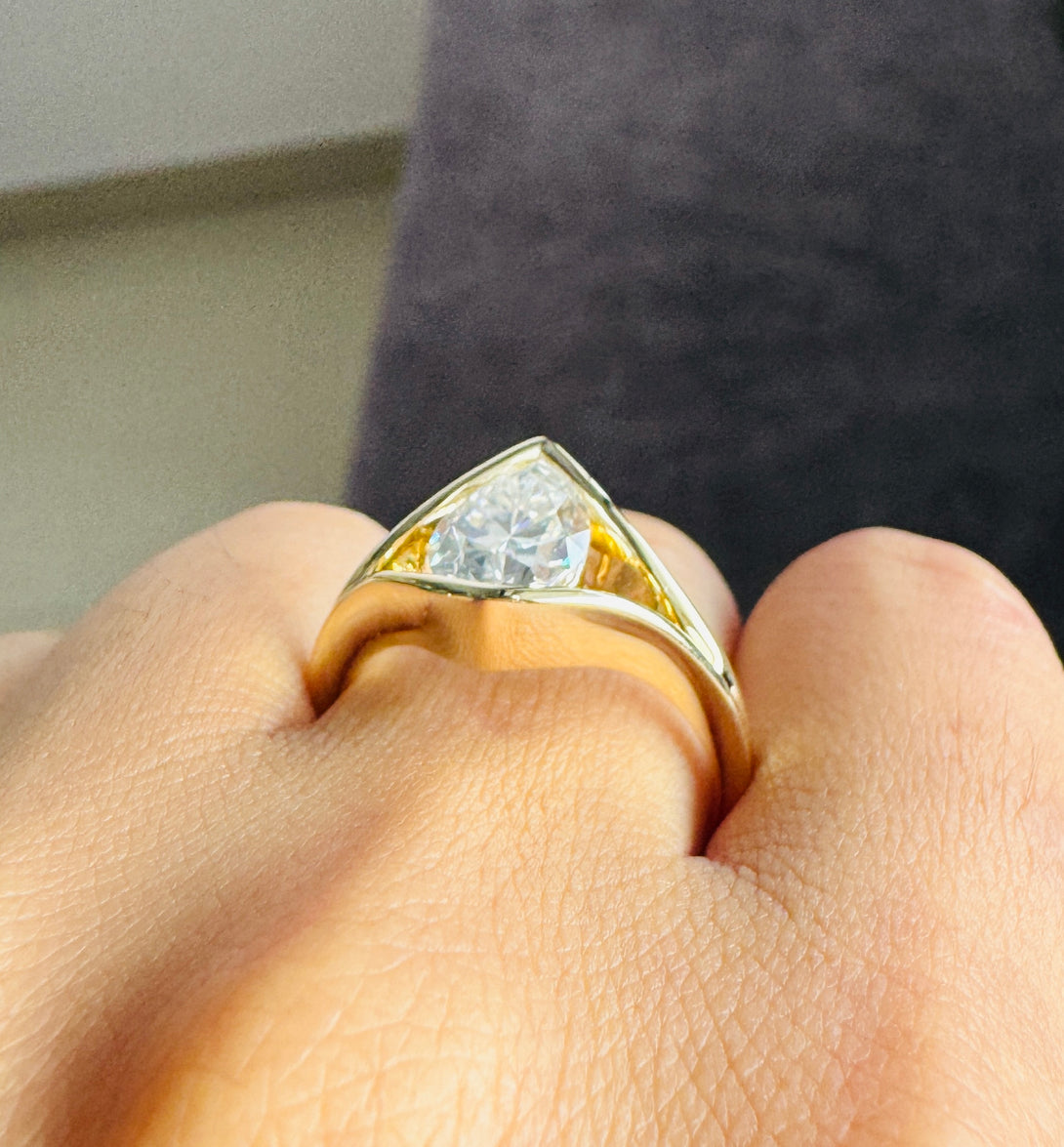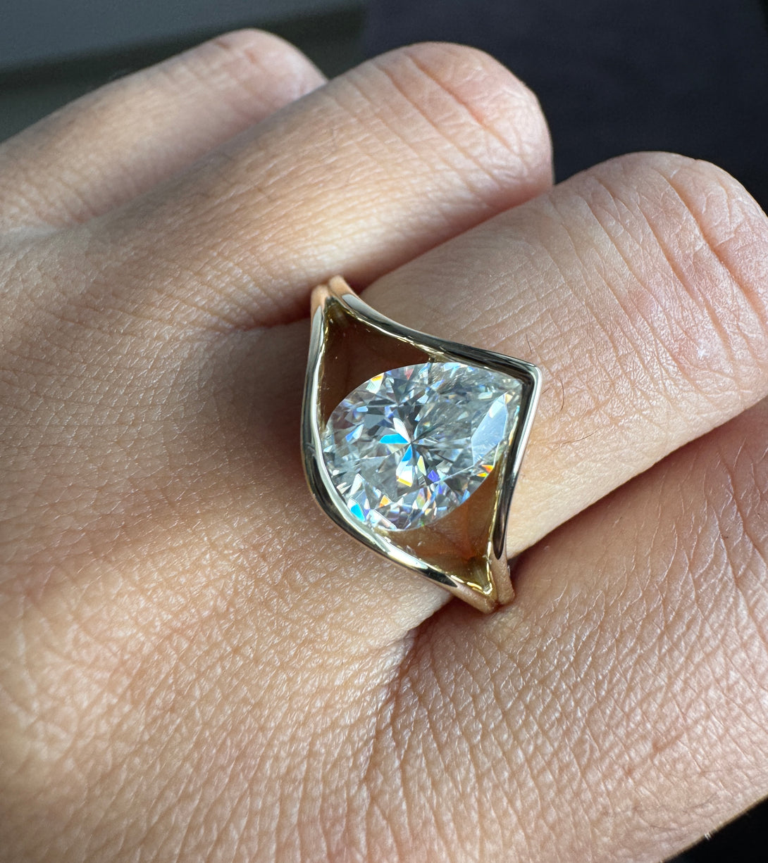 Tension Set Moissanite Split Band Ring Solitaire Pear Cut Moissanite Gold Ring