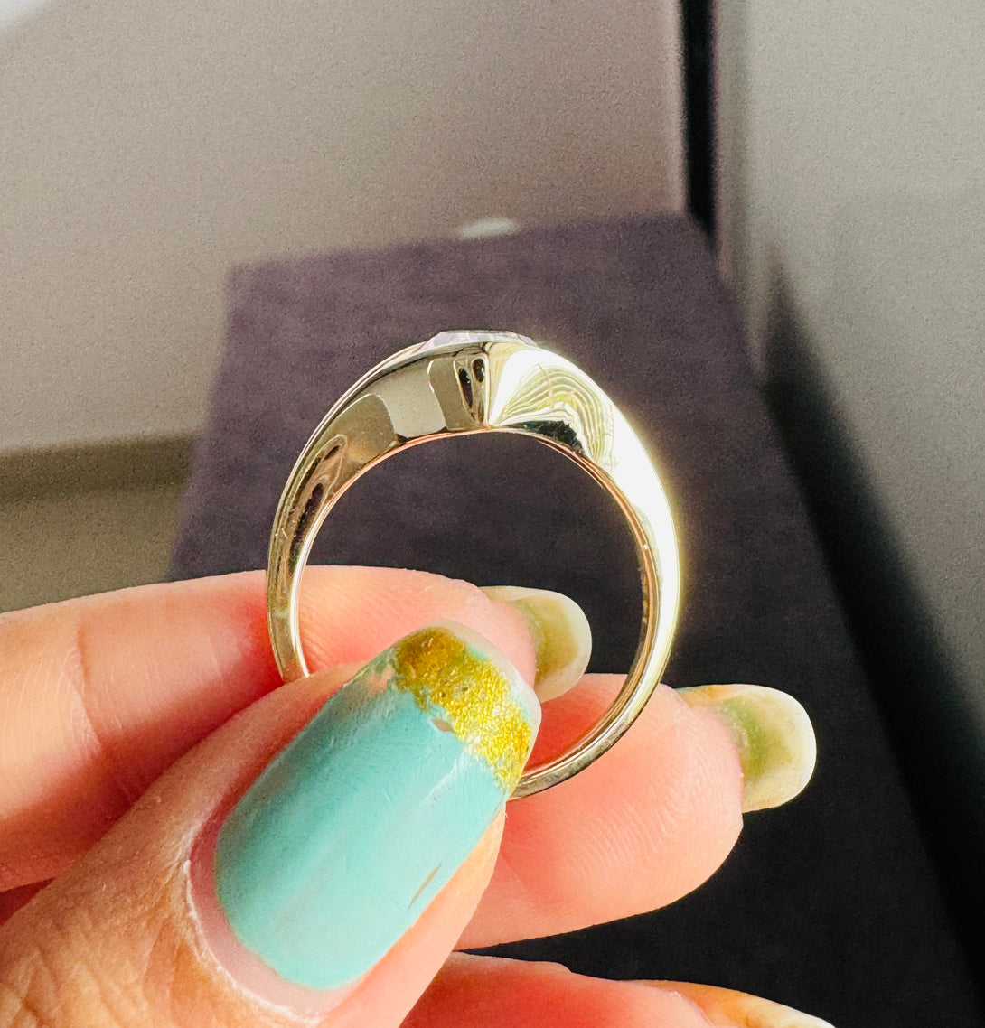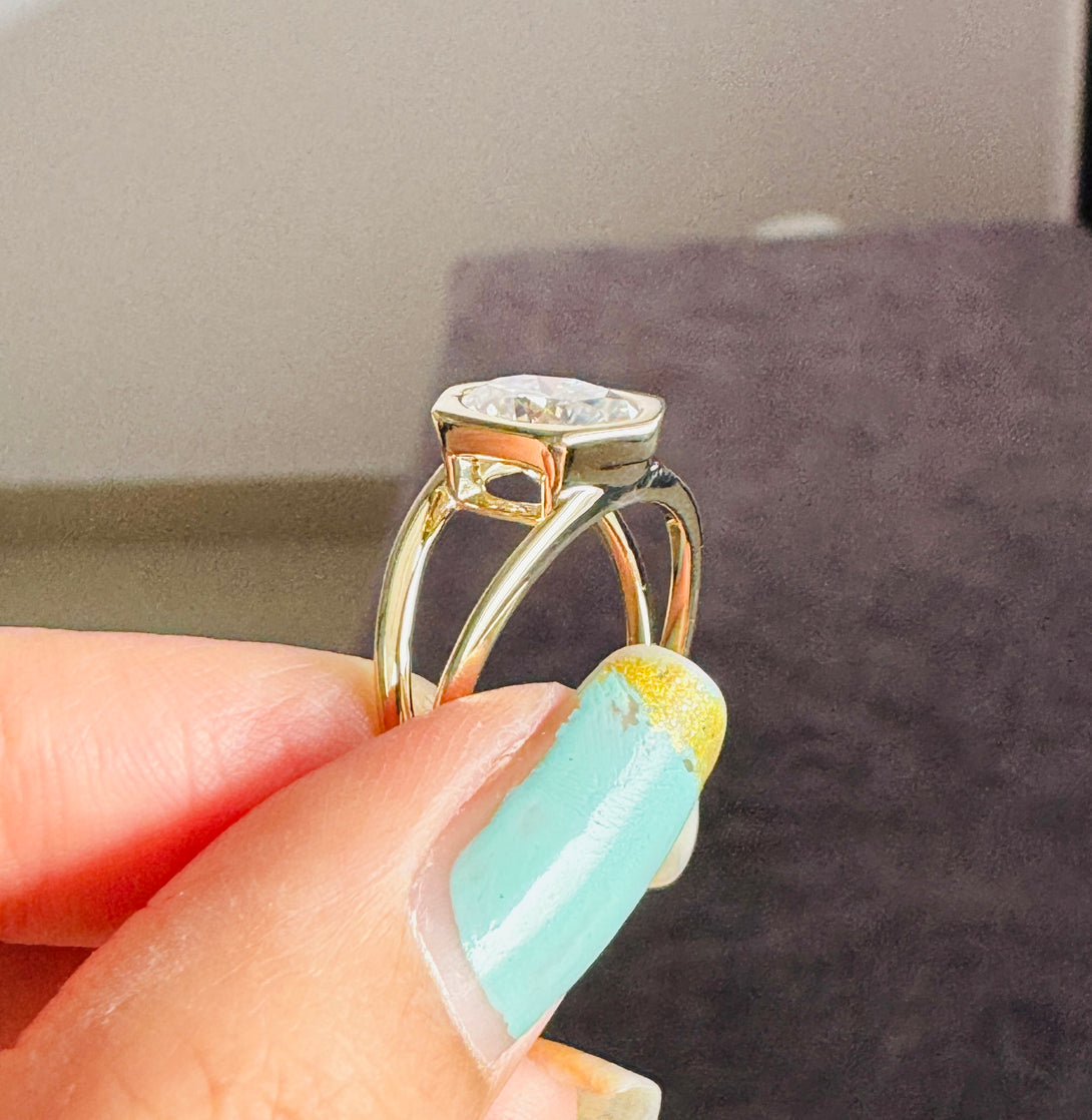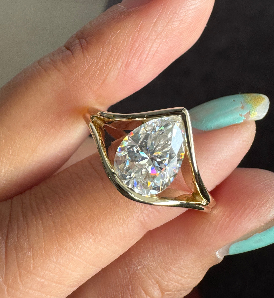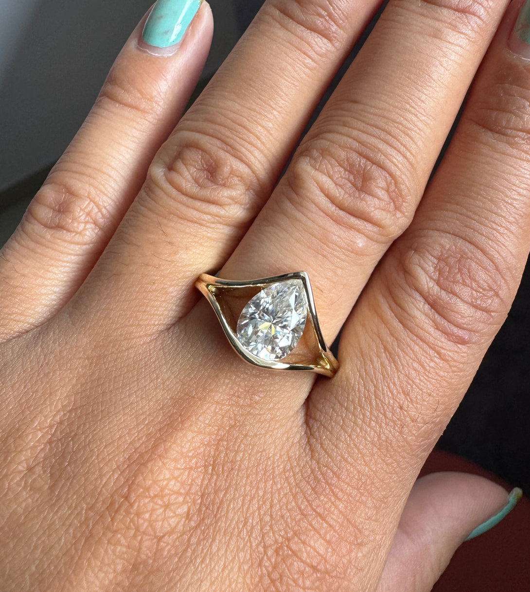 Tension Set Moissanite Split Band Ring Solitaire Pear Cut Moissanite Gold Ring