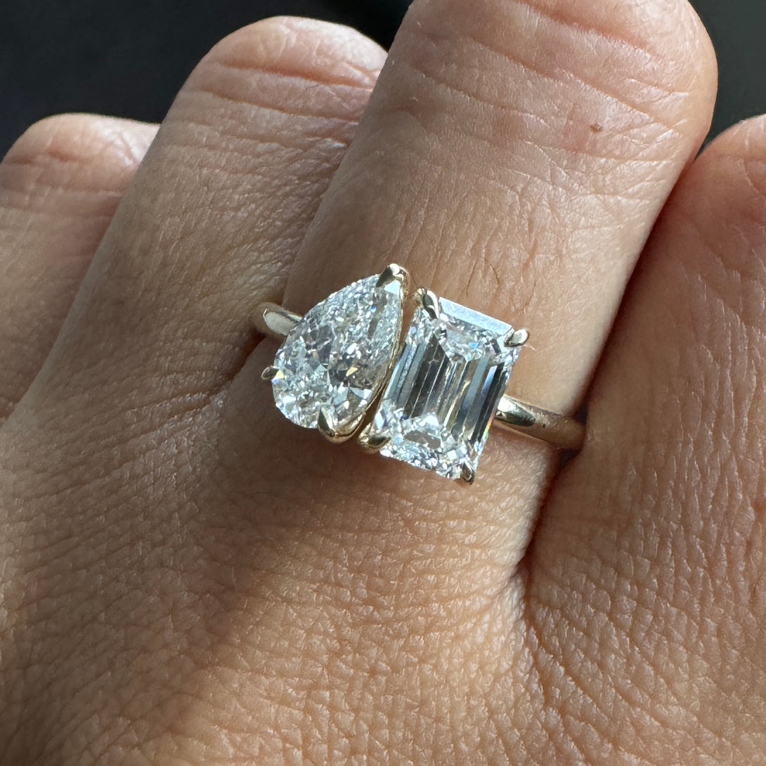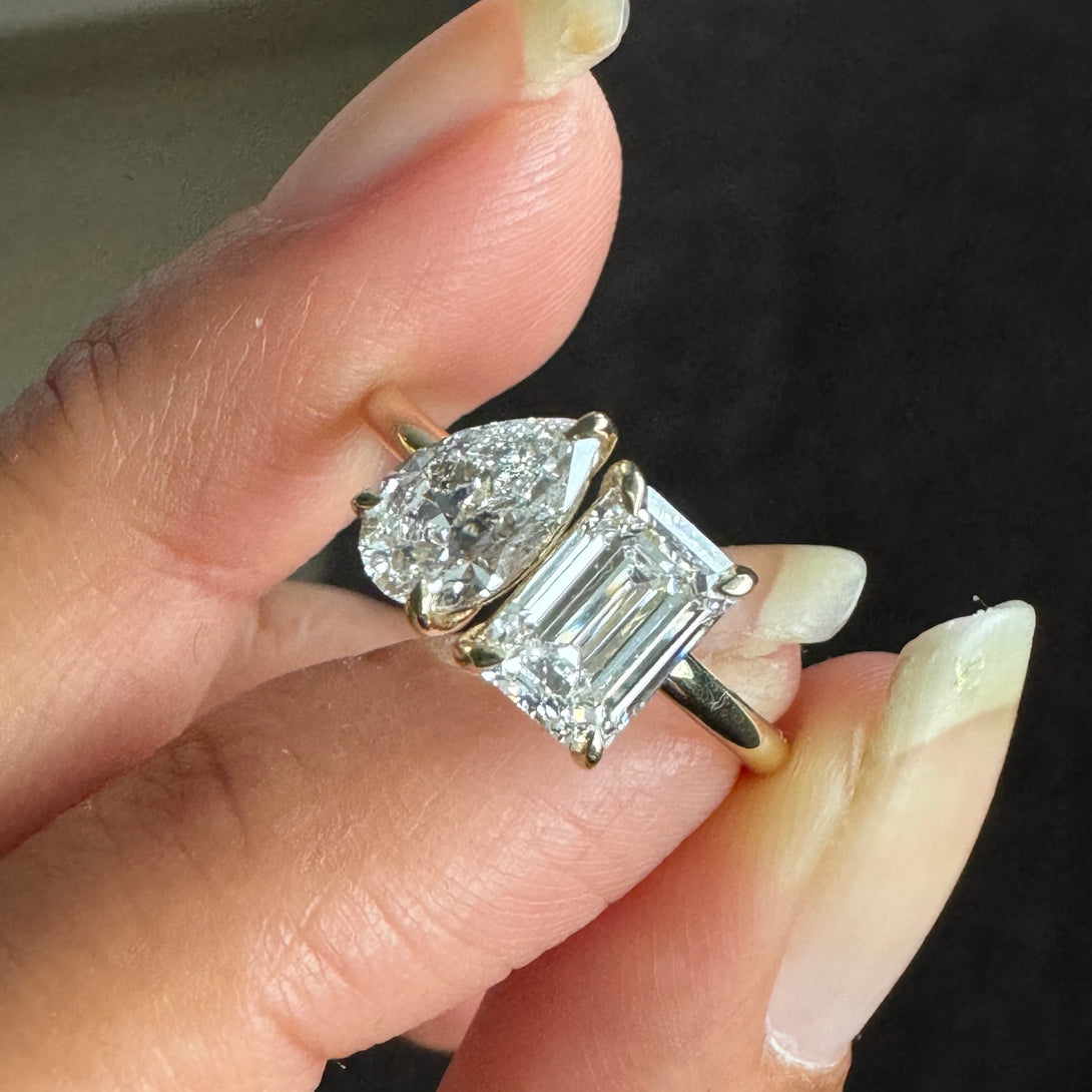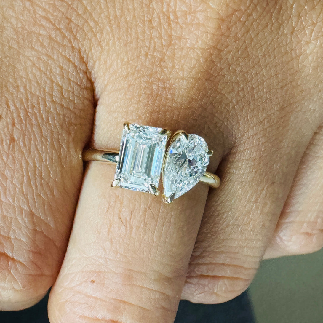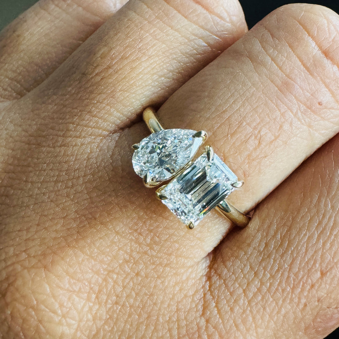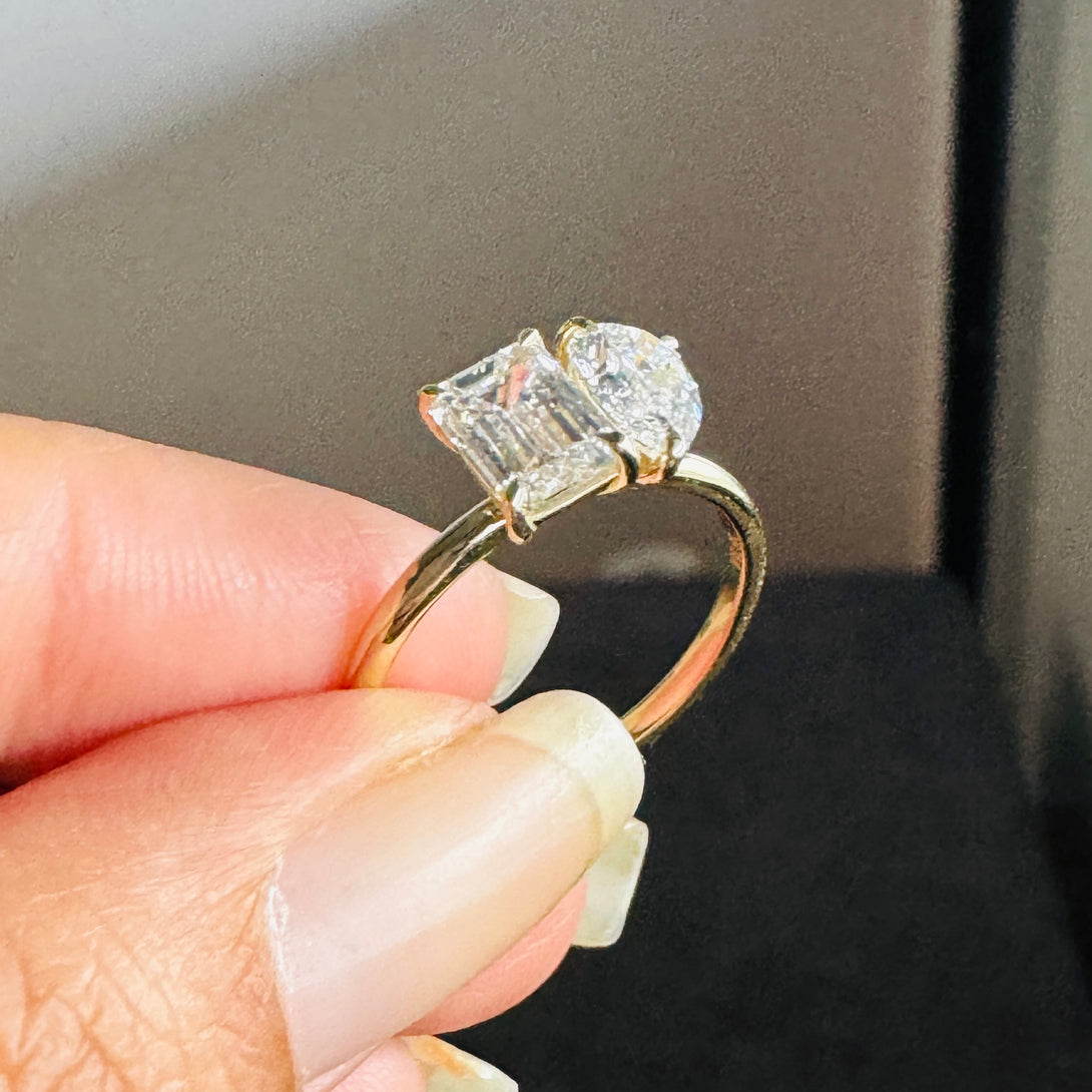 Emerald & Pear Cut Two Stone Wedding Ring Toi Et Moi Moissanite Engagement Ring