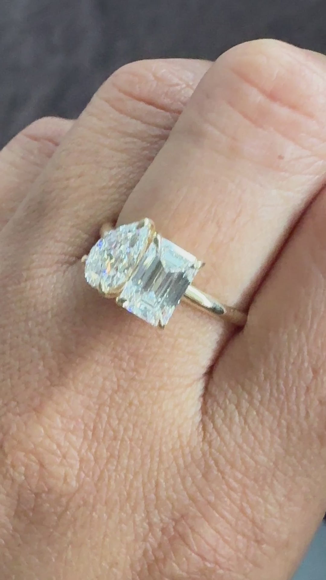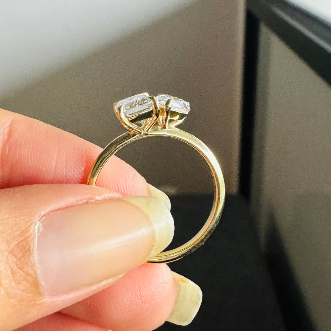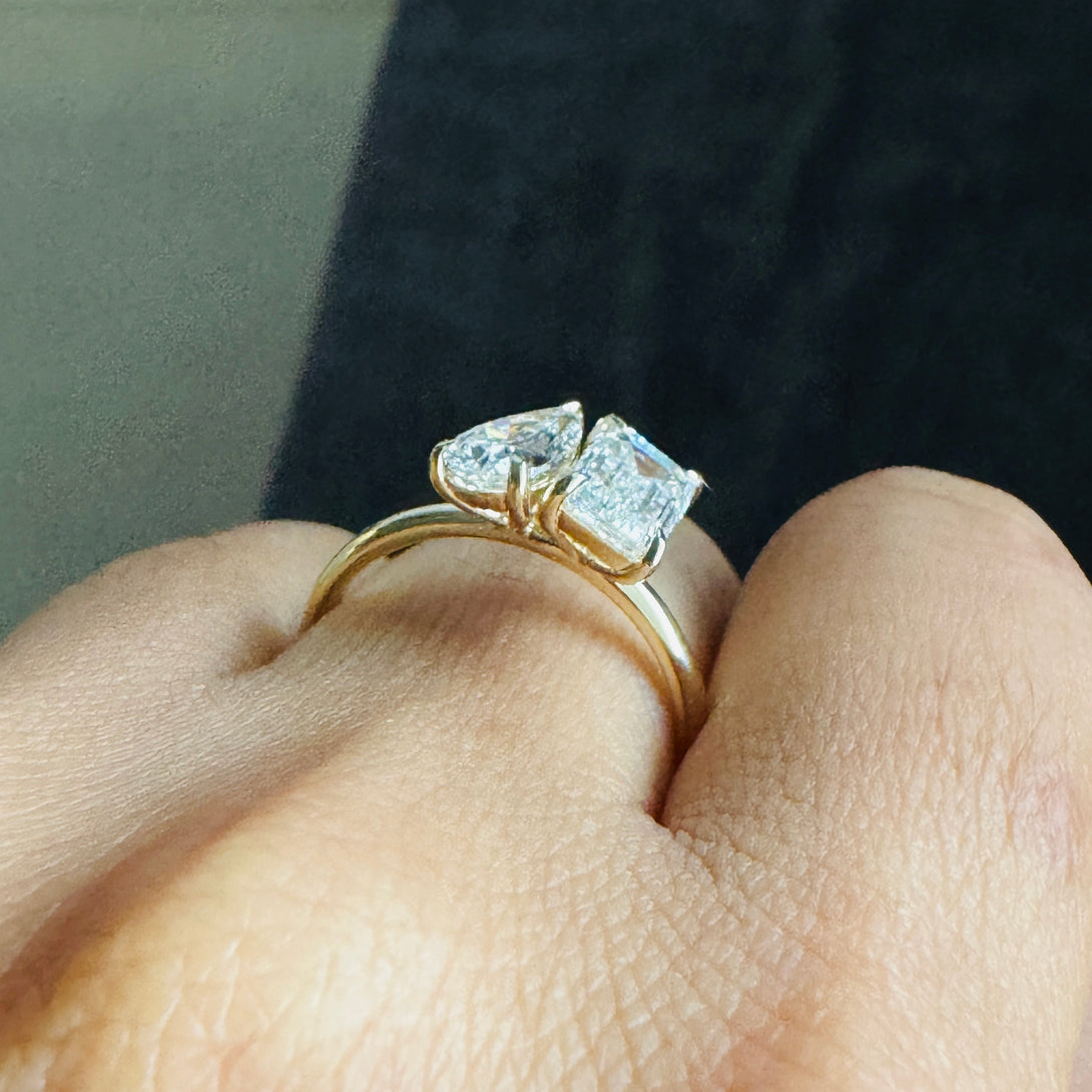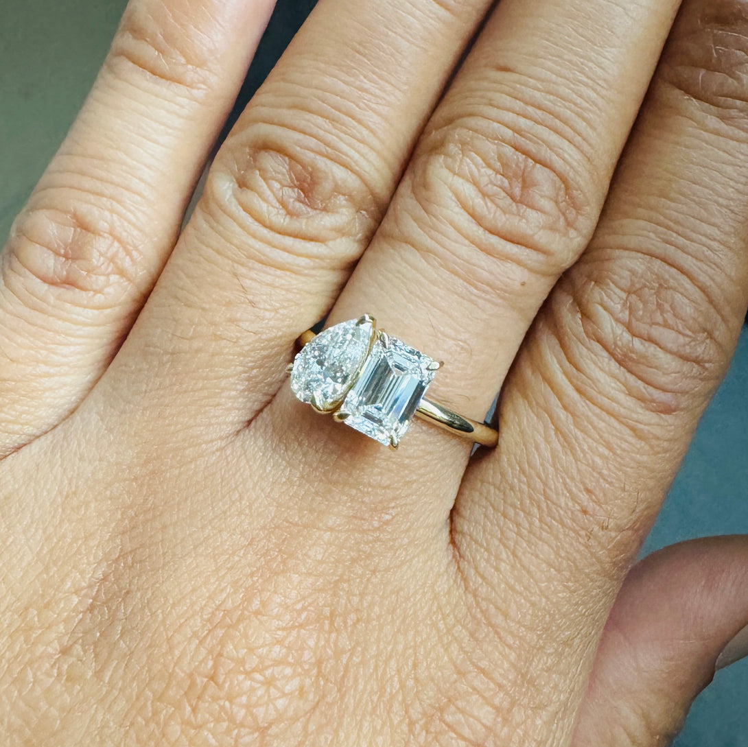 Emerald & Pear Cut Two Stone Wedding Ring Toi Et Moi Moissanite Engagement Ring