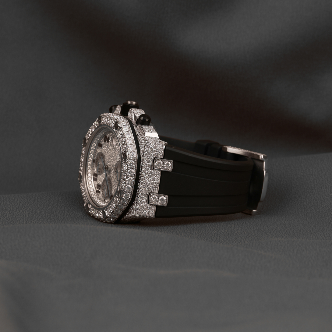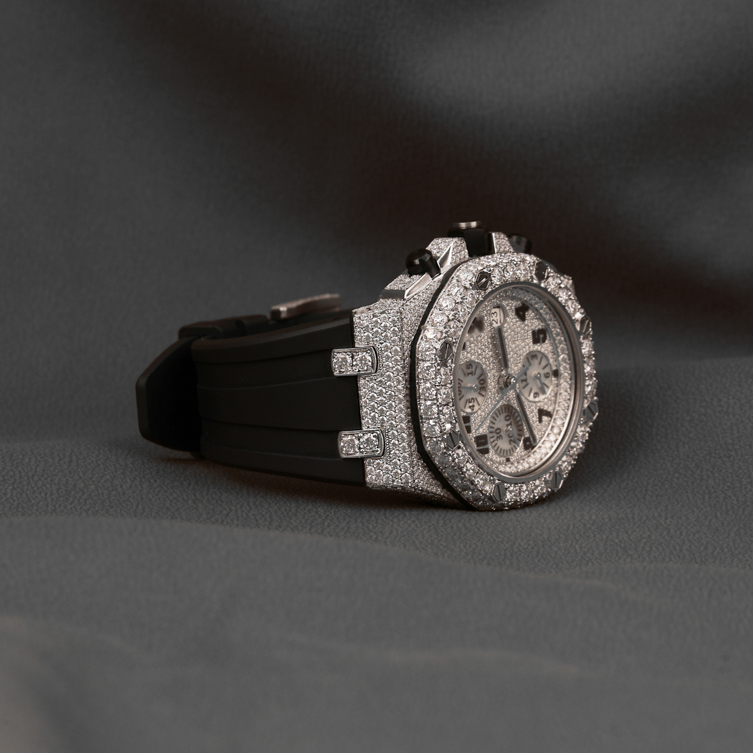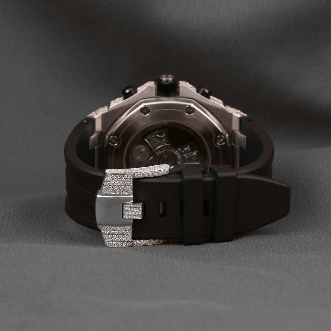 Luxury Round Three Sub Dial Rubber Strap Watch Half Iced Out VVS1 Moissanite diamond Customized Branded Watches for Men