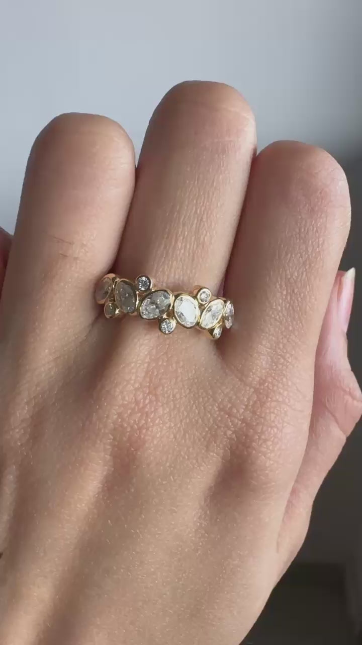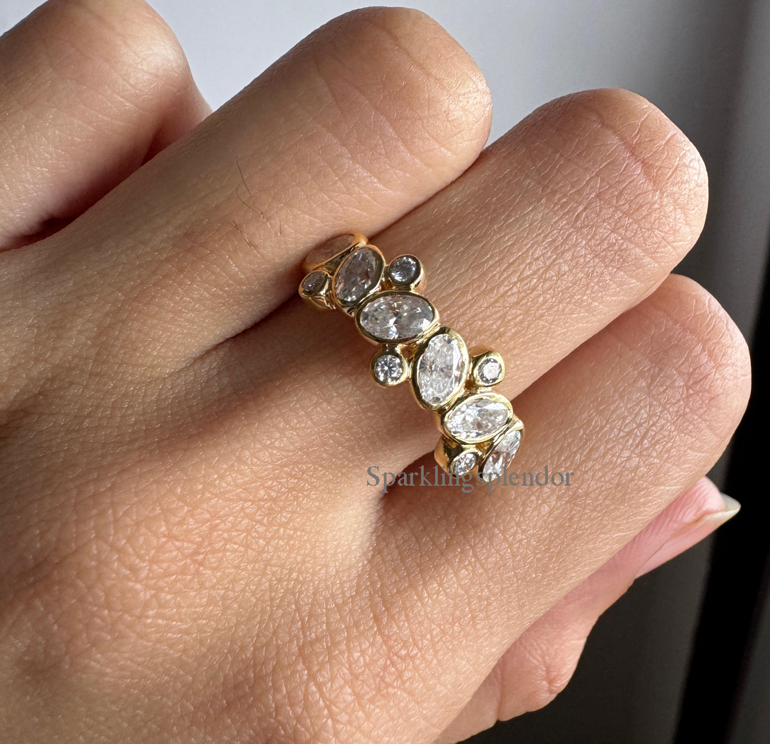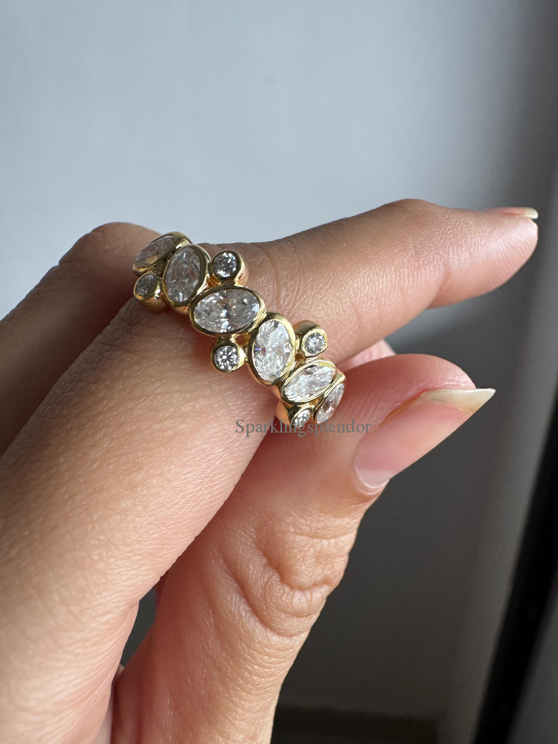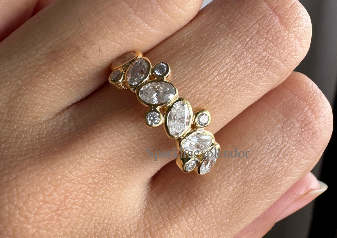 Oval Cut Moissanite Band Bezel Set Art Deco Cluster Wedding Band in Gold