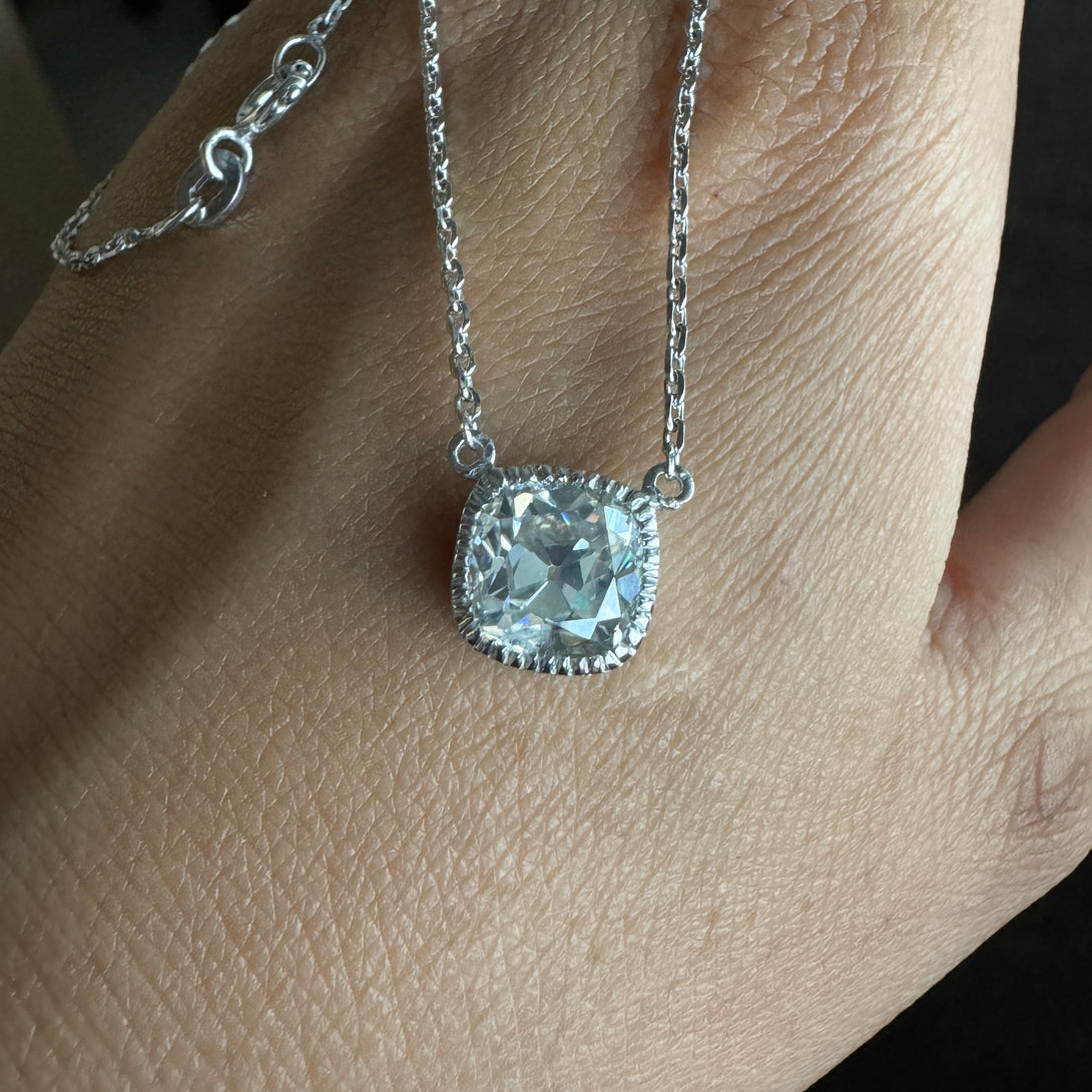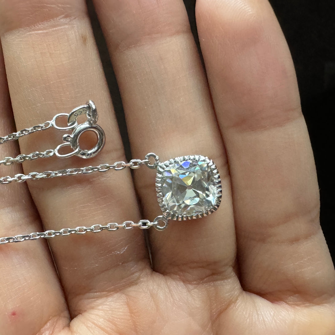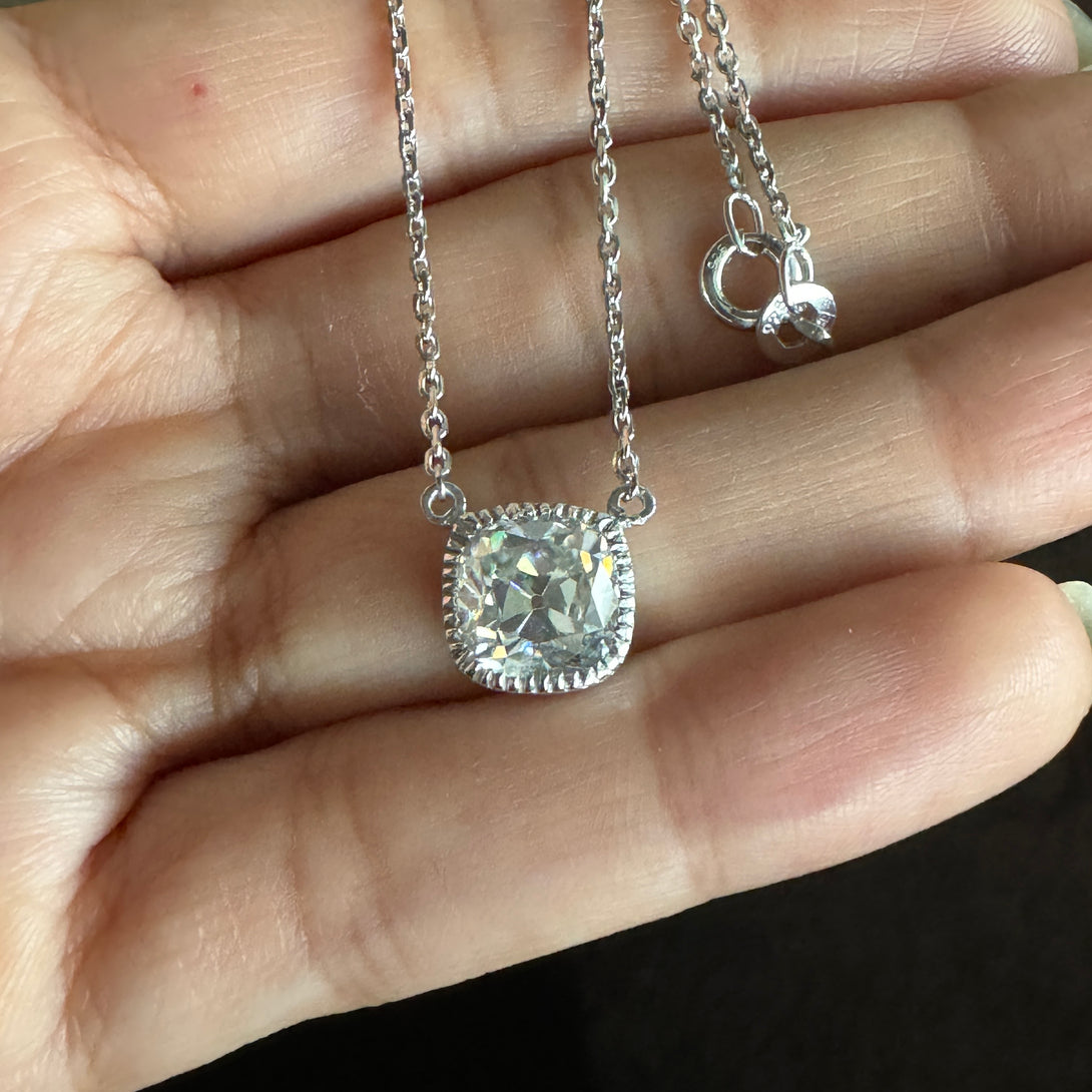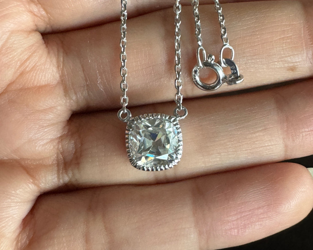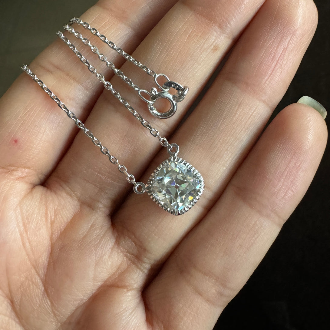 Old Mine Cushion Cut Moissanite Diamond Bezel Set Everyday Wear Necklace For Her