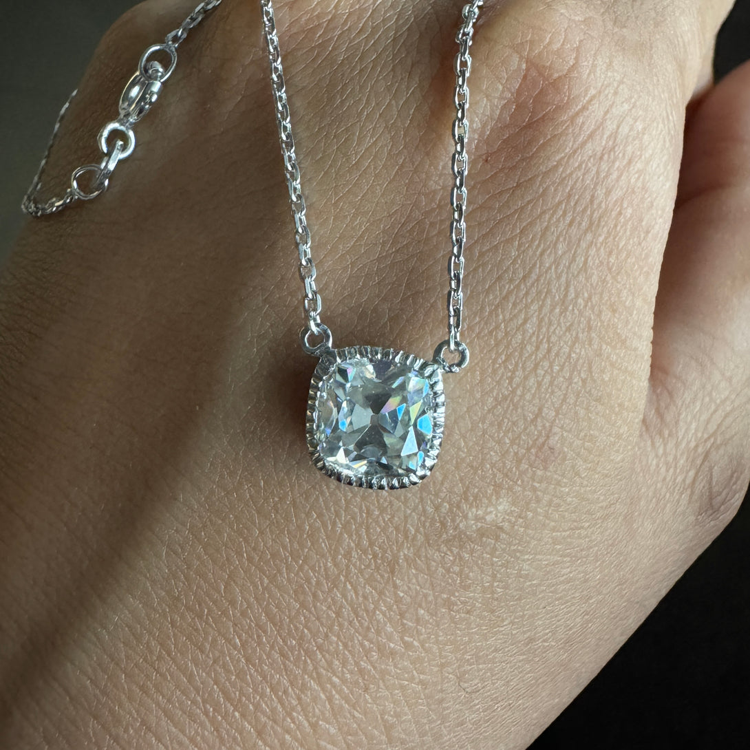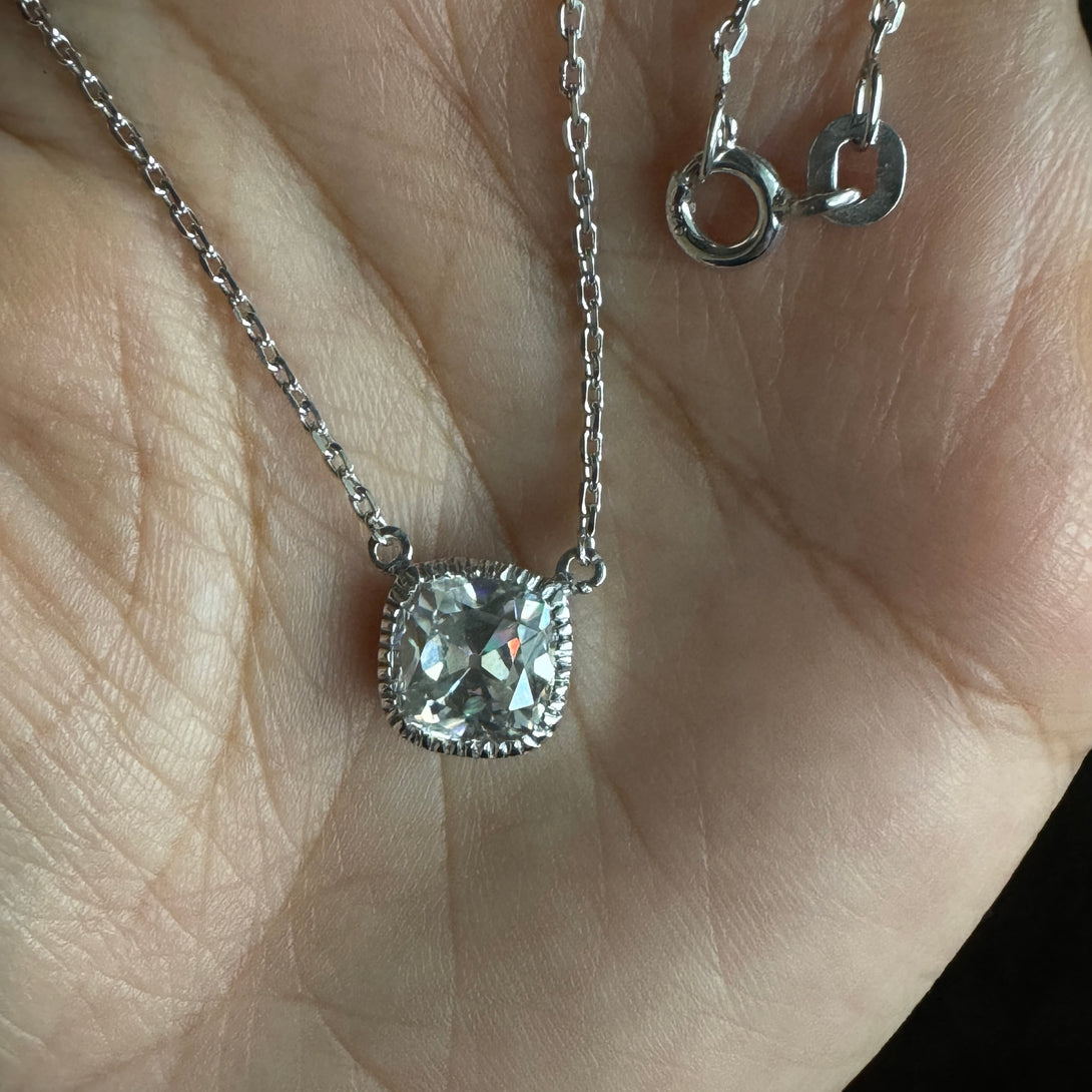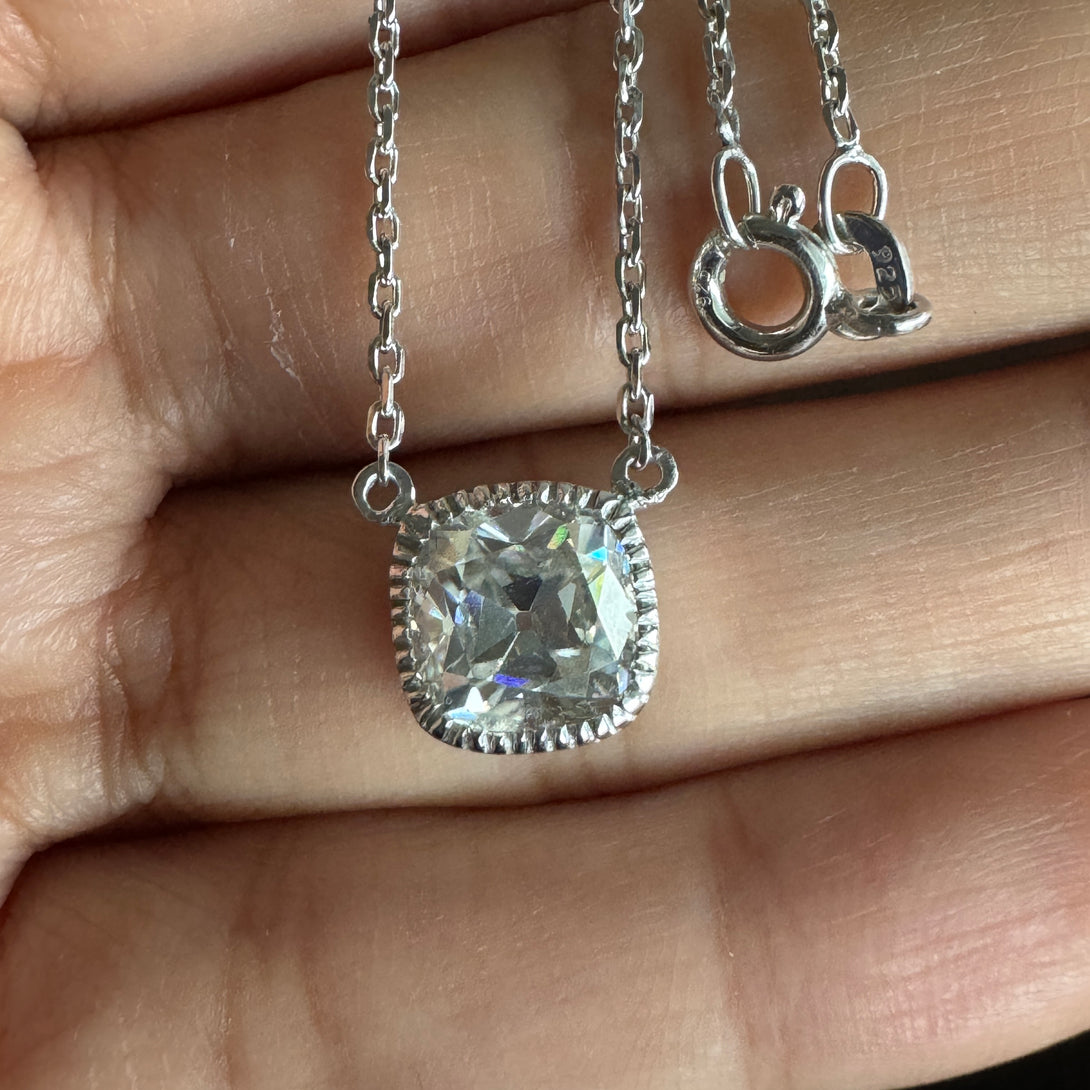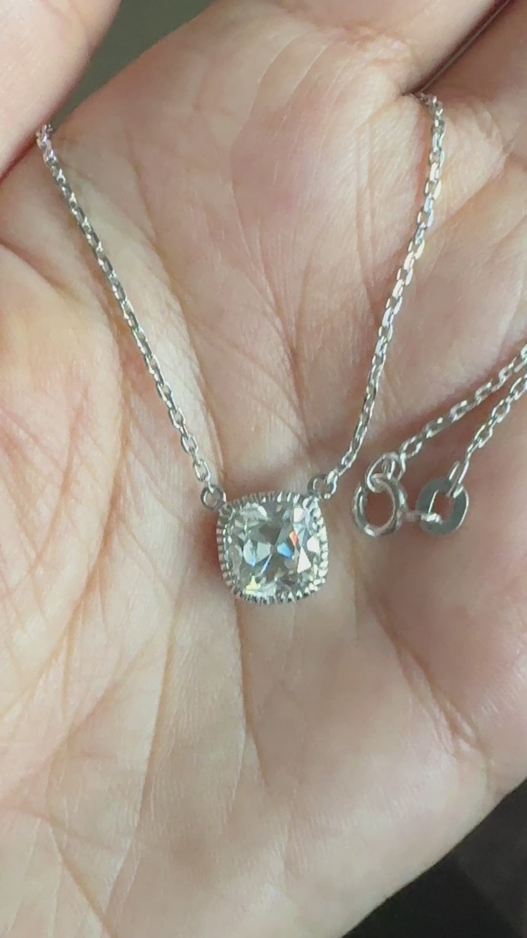 Old Mine Cushion Cut Moissanite Diamond Bezel Set Everyday Wear Necklace For Her