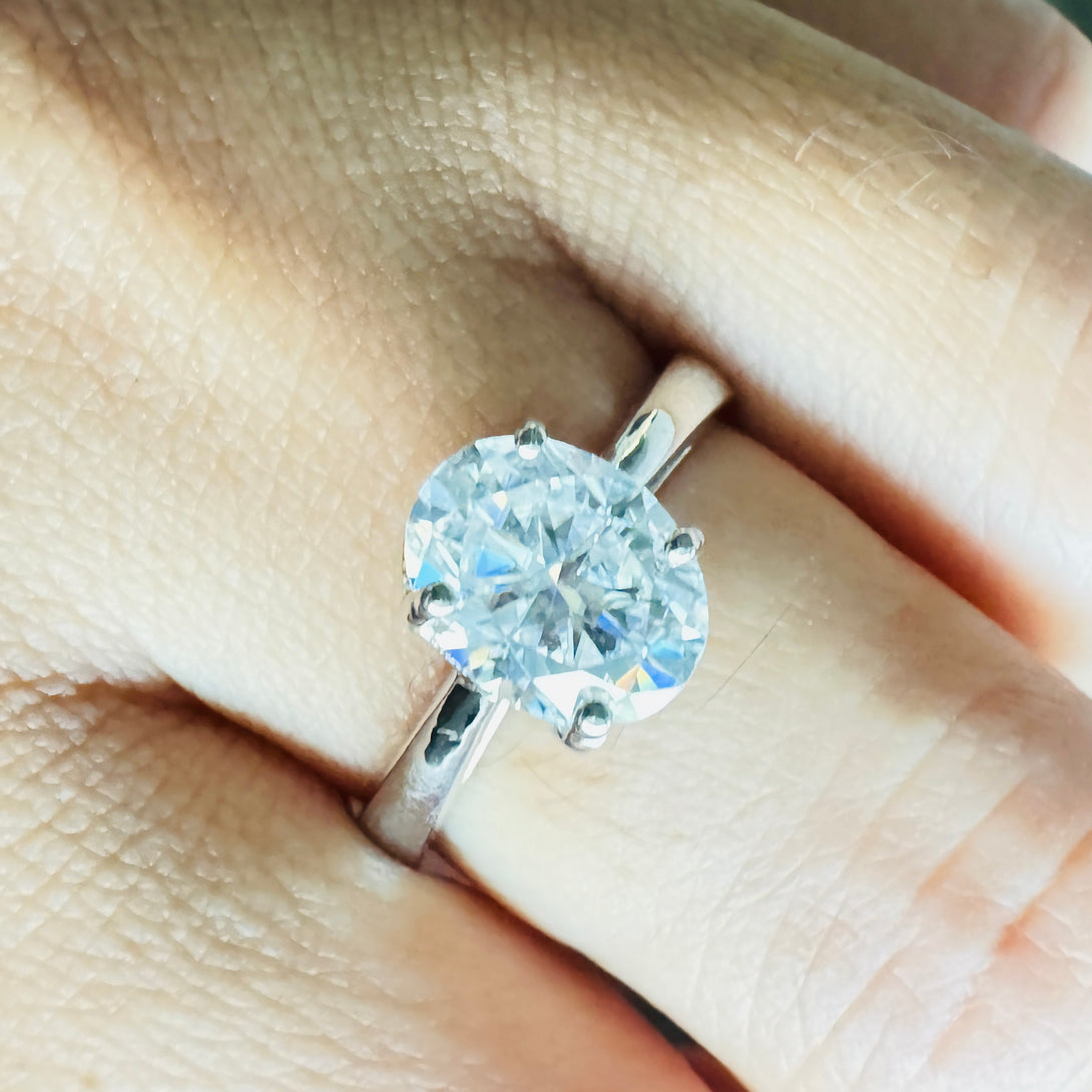 Colorless 2 CTW Oval Cut Moissanite Engagement Ring Solitaire Promise Ring