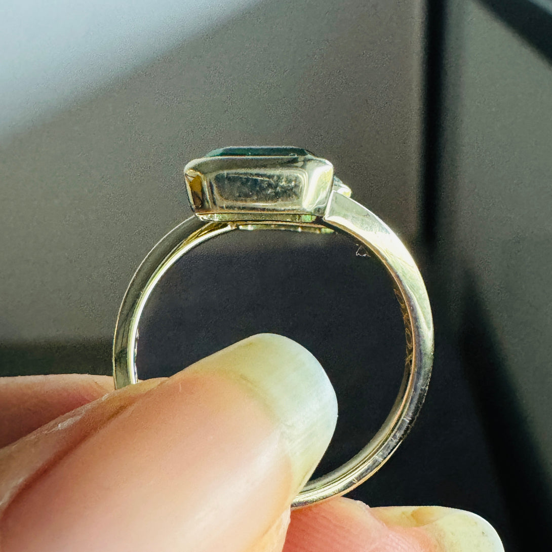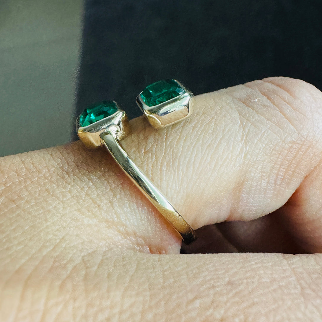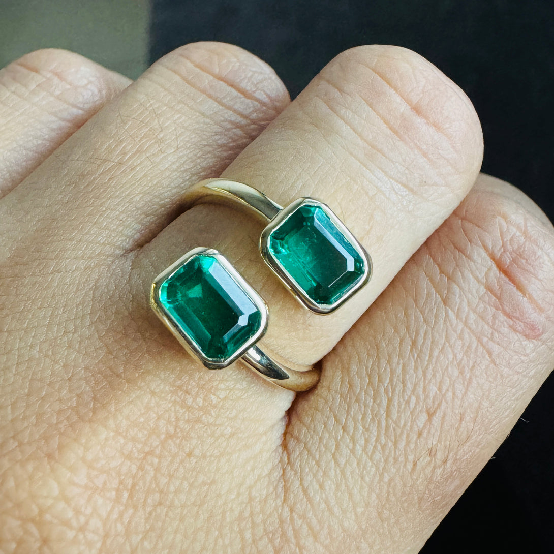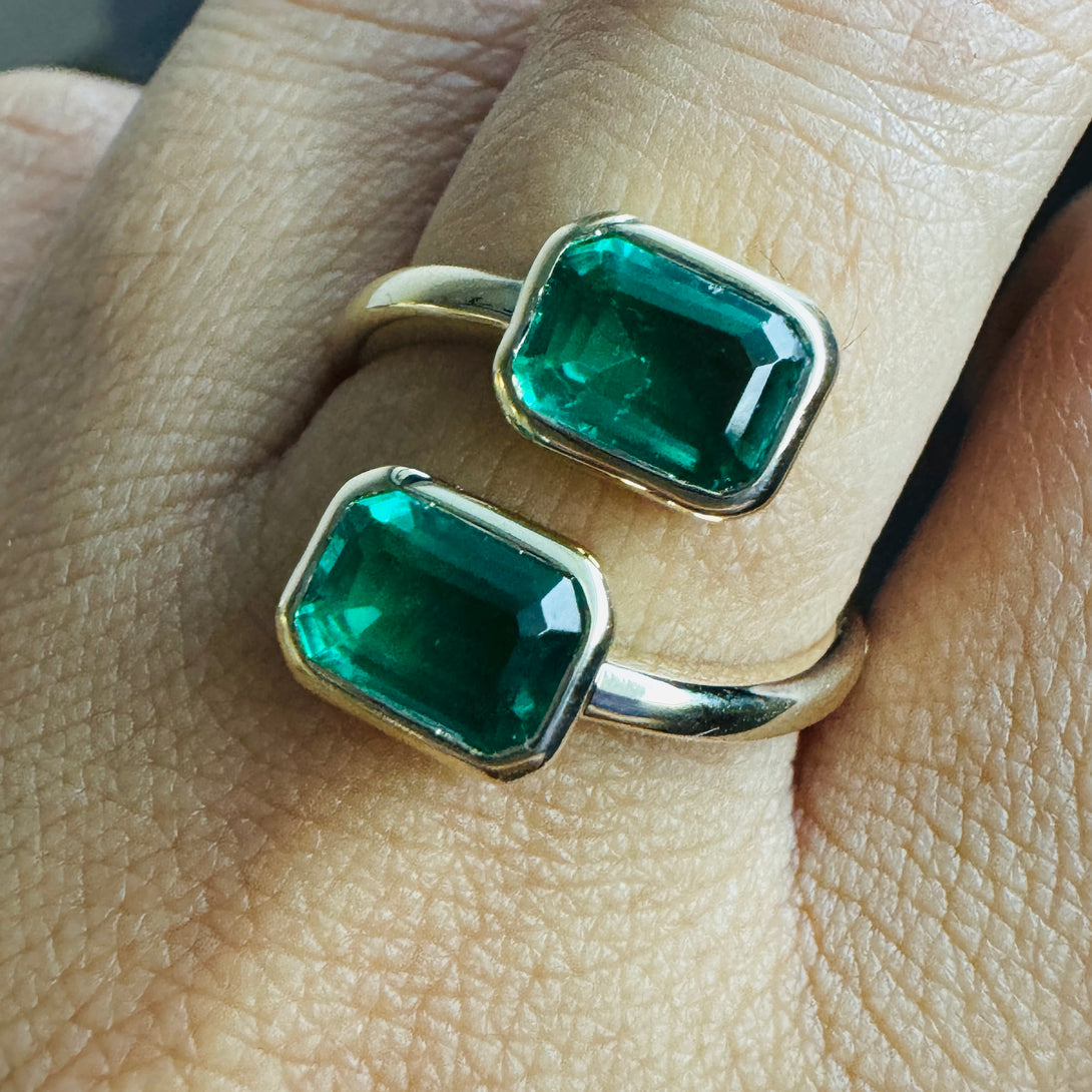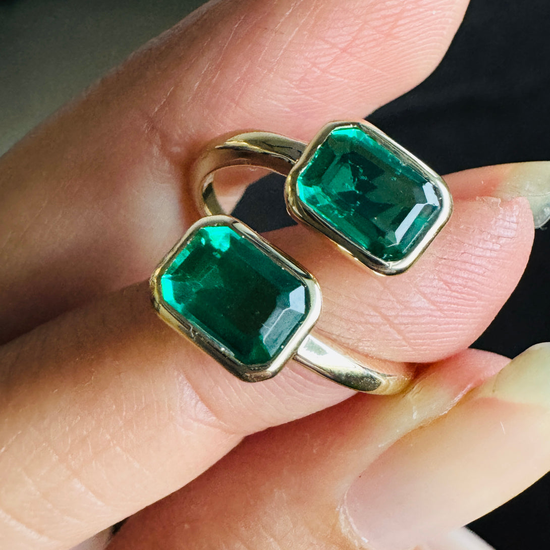 Toi Et Moi Green Emerald Engagement Ring Bezel Set Two Stone Bypass Ring