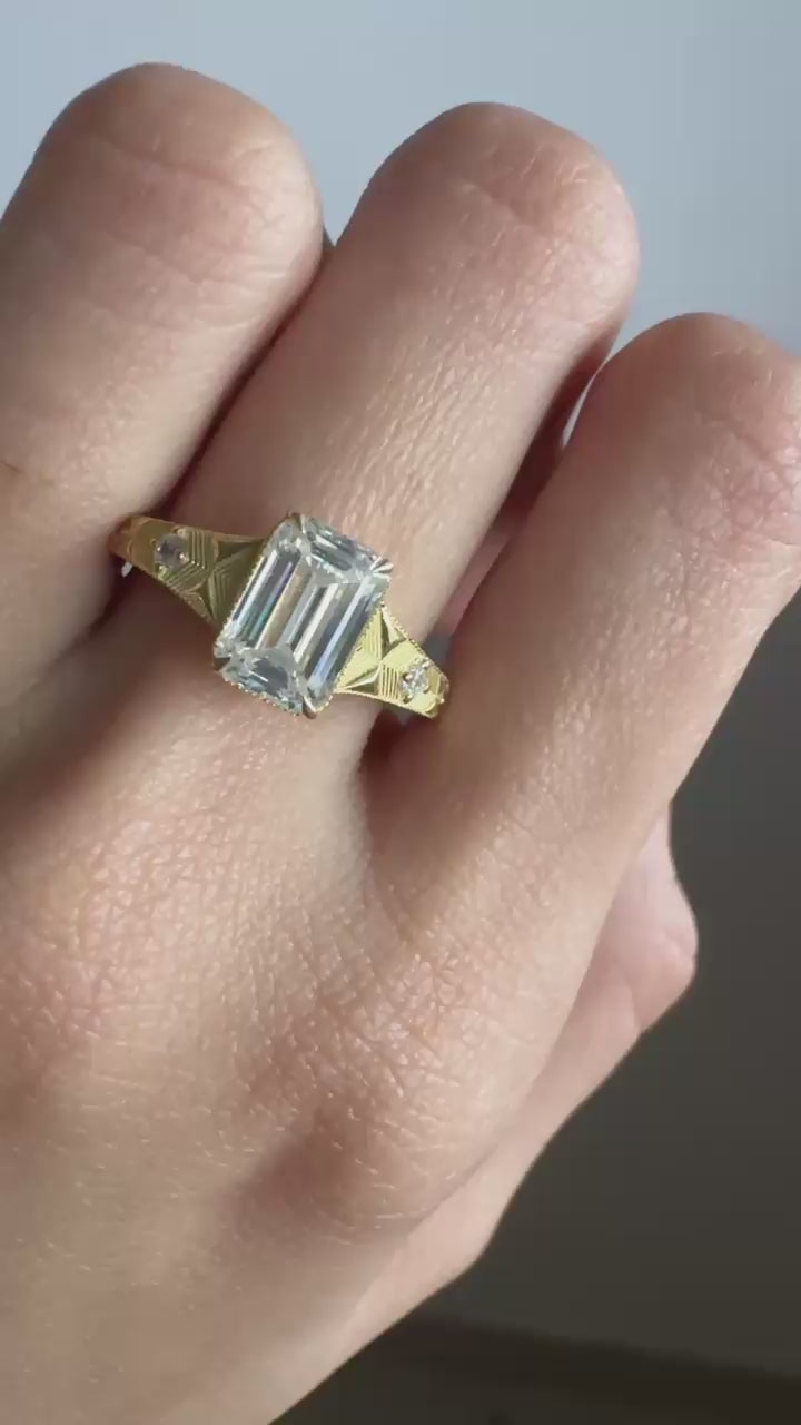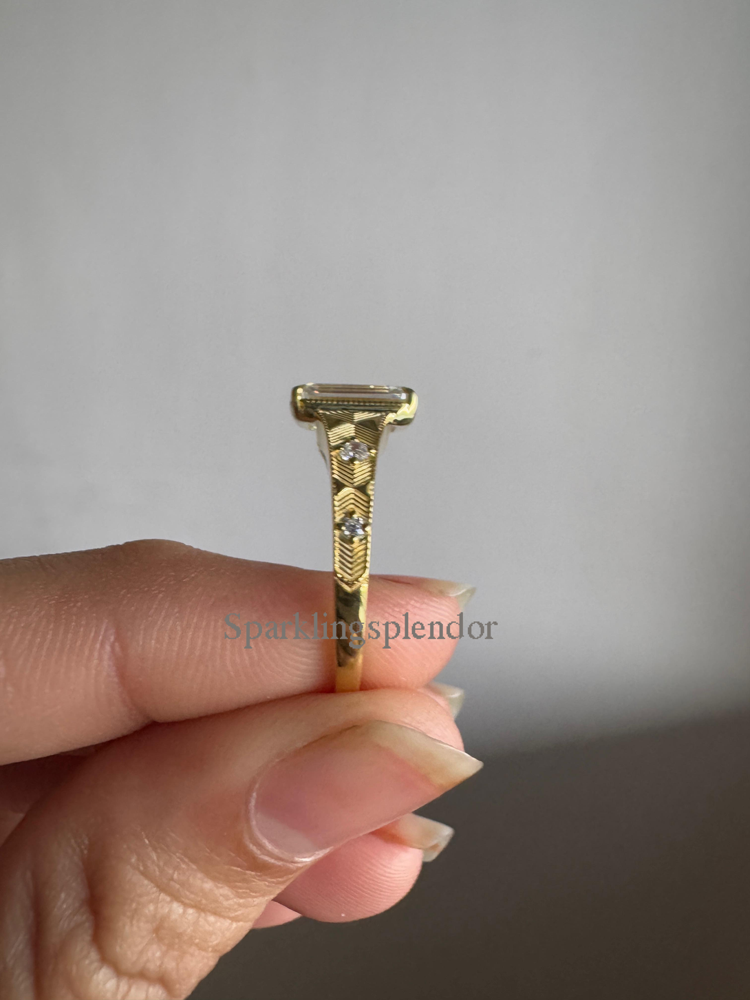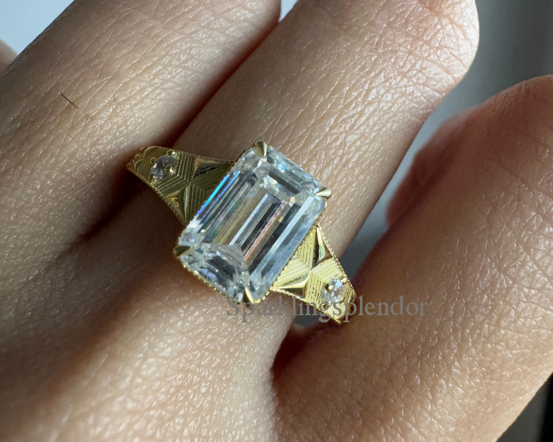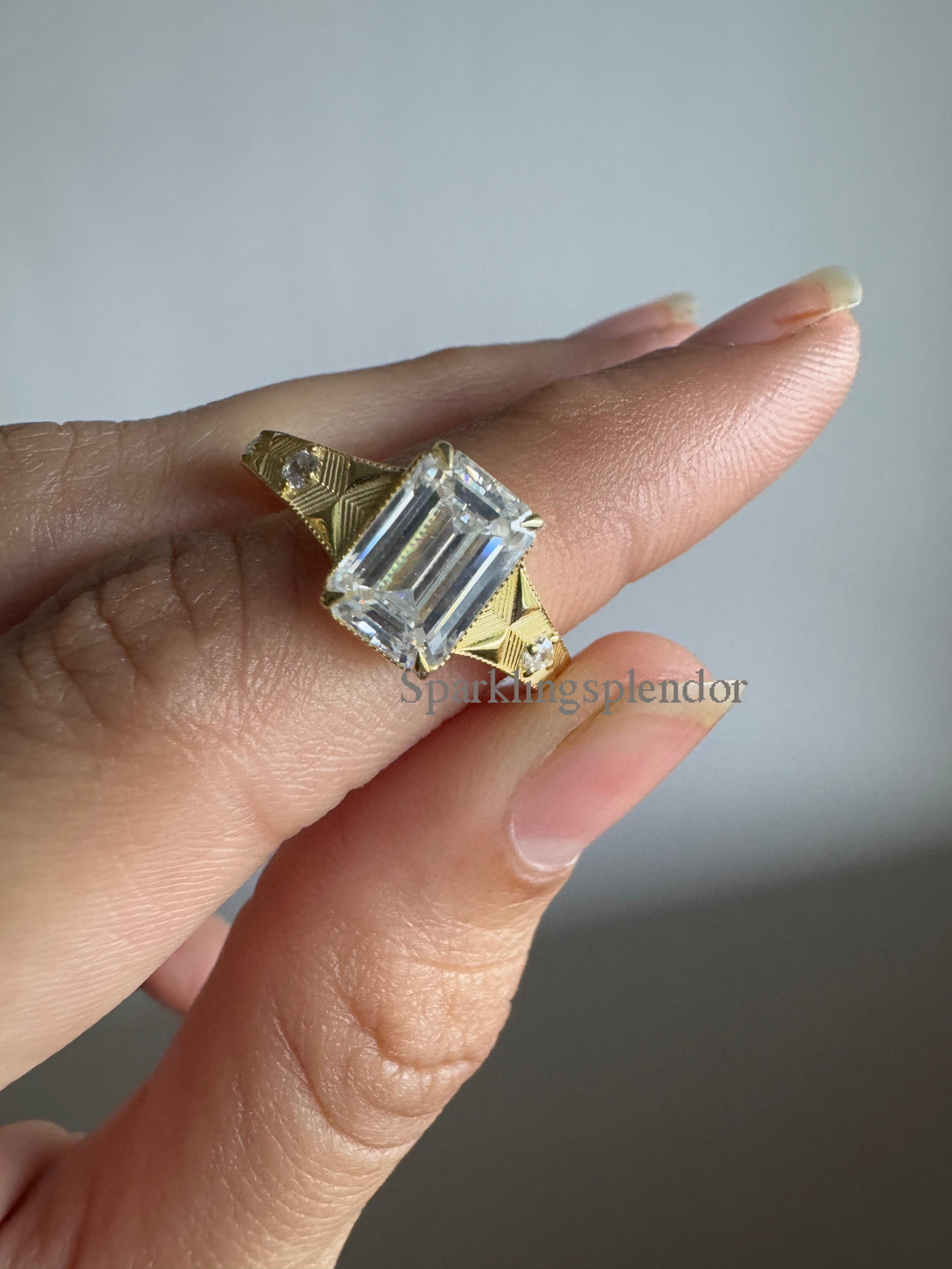 Vintage Emerald Cut Moissanite Engagement Ring 18K Gold Antique Style Jewelry