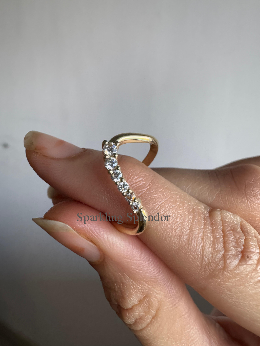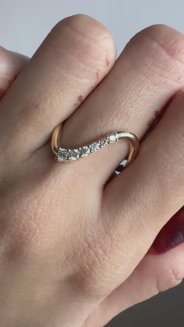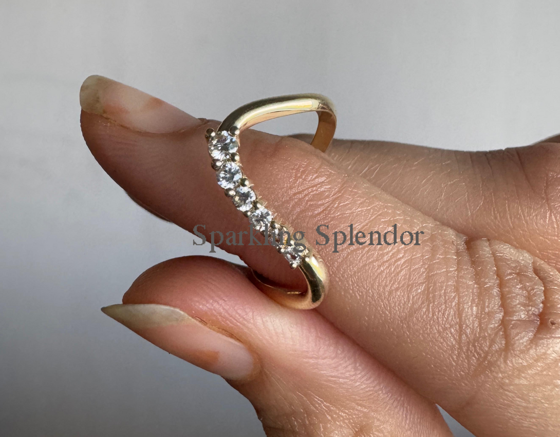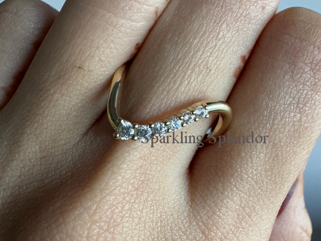 Dainty Pave Eternity Curved Band Round Moissanite Unique Thin Wedding Band