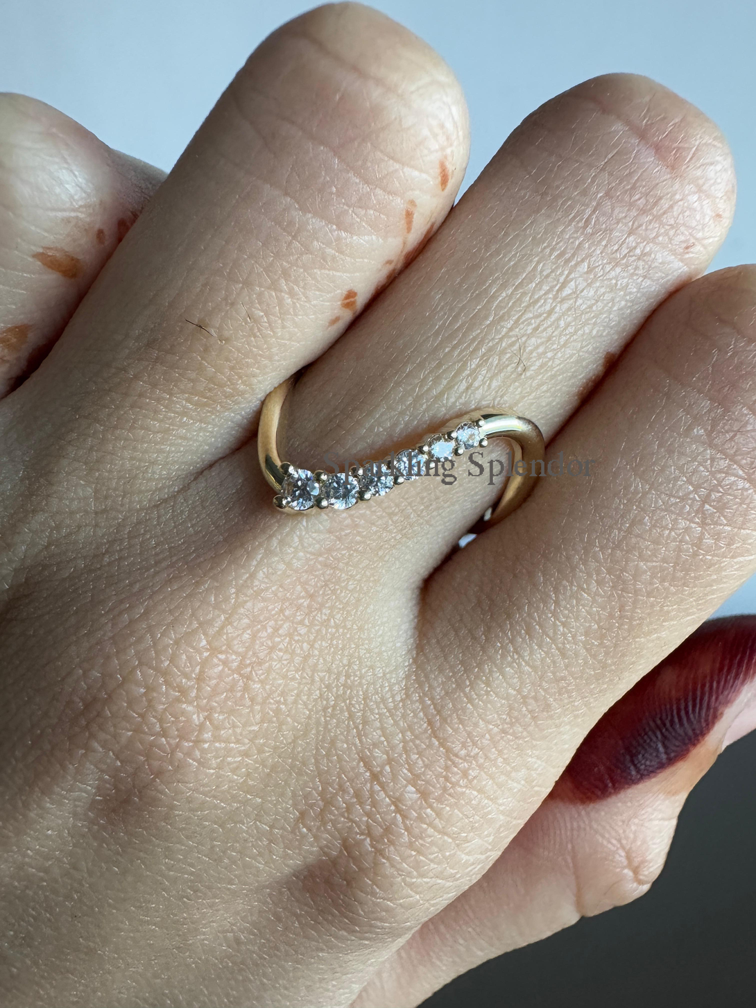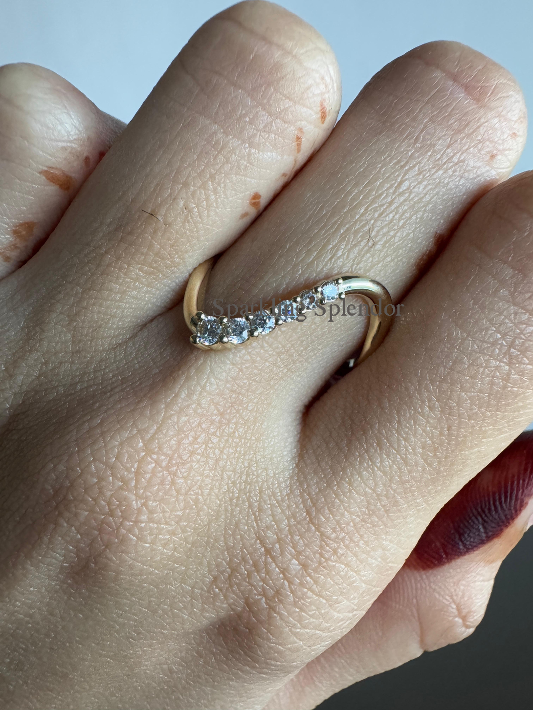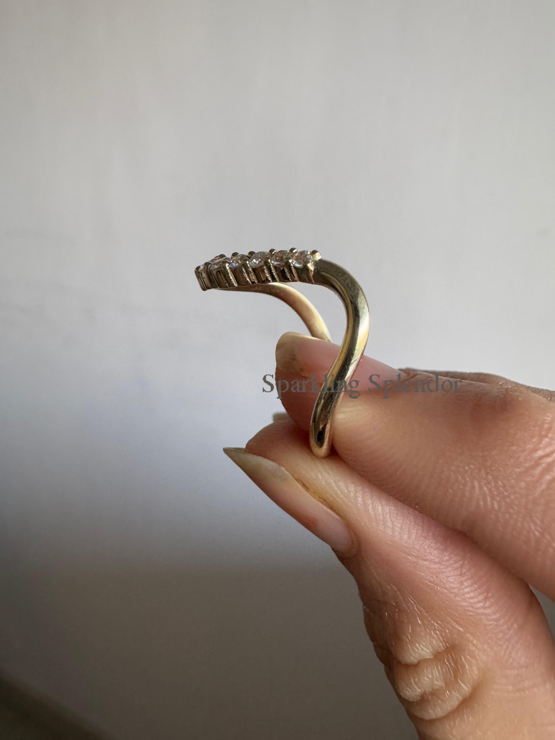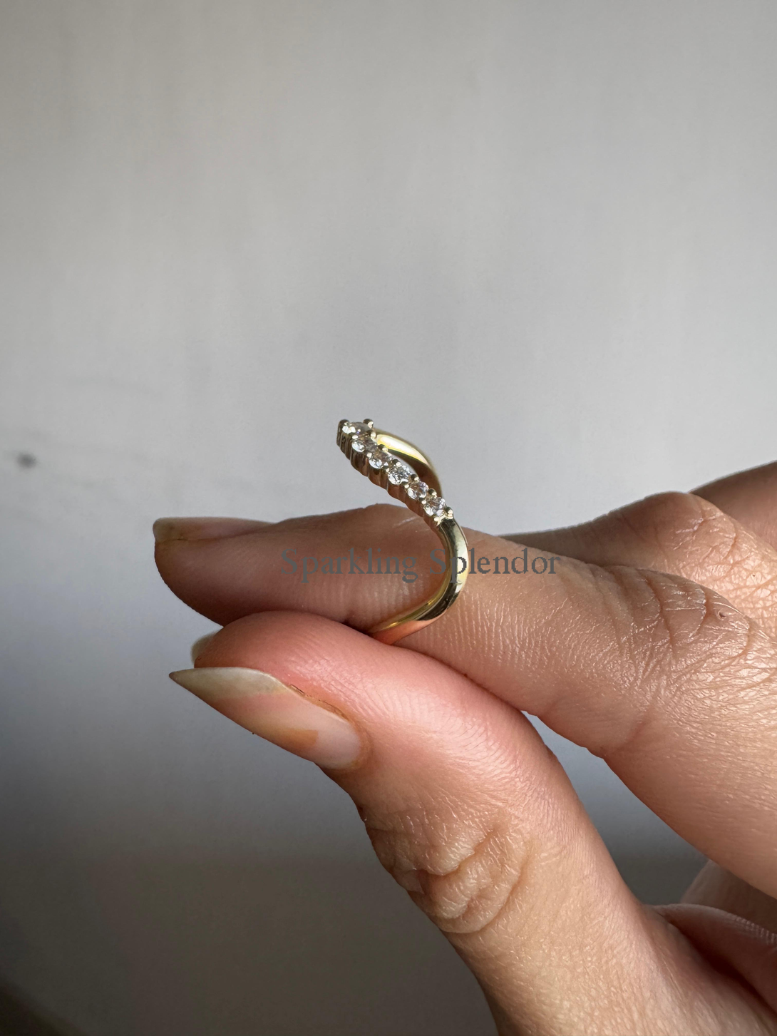 Dainty Pave Eternity Curved Band Round Moissanite Unique Thin Wedding Band