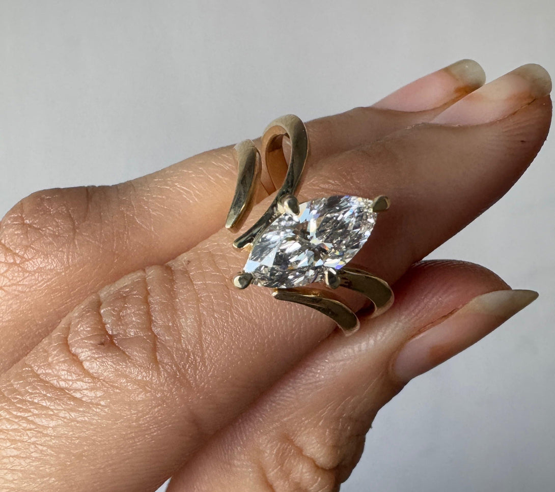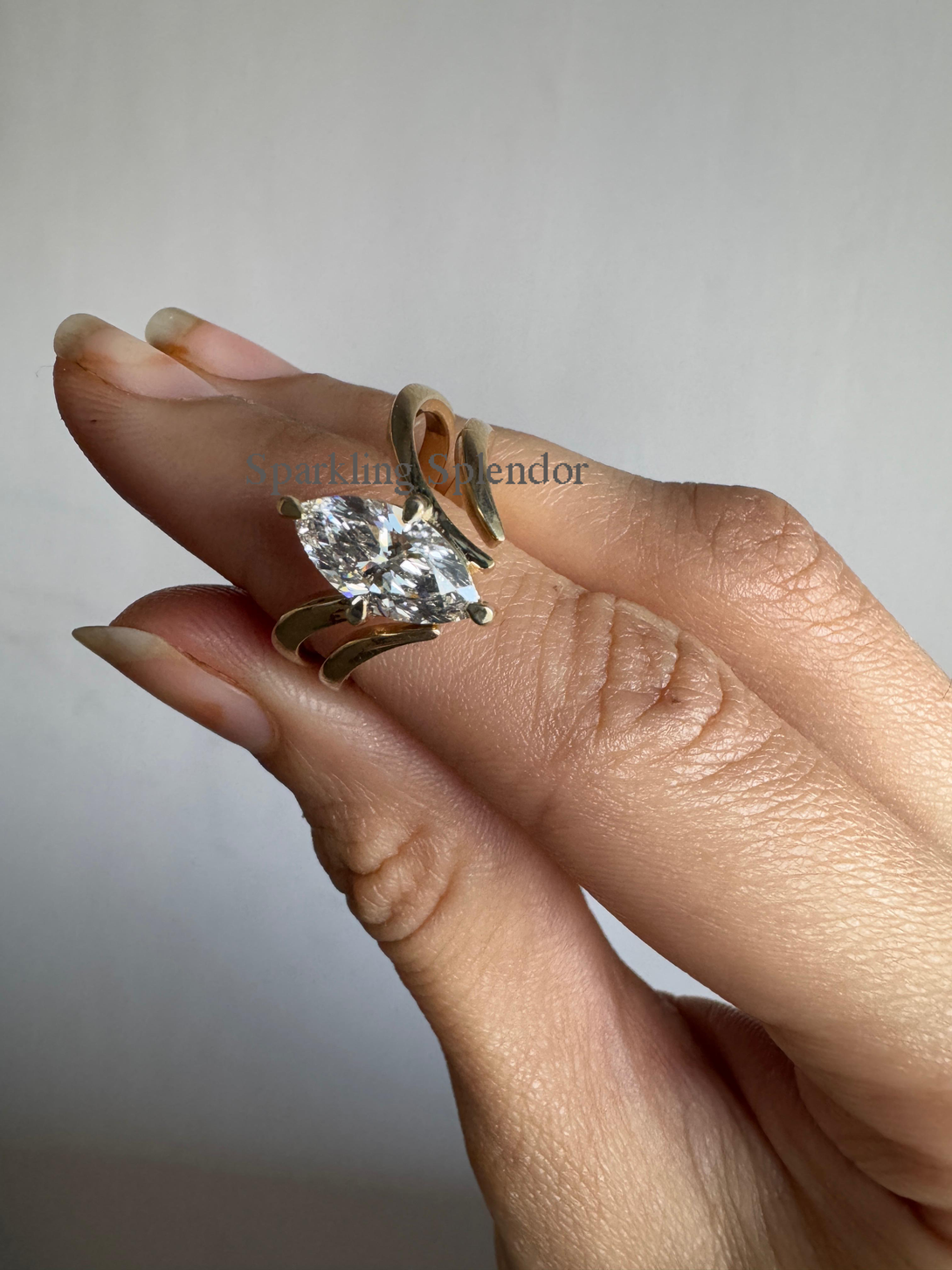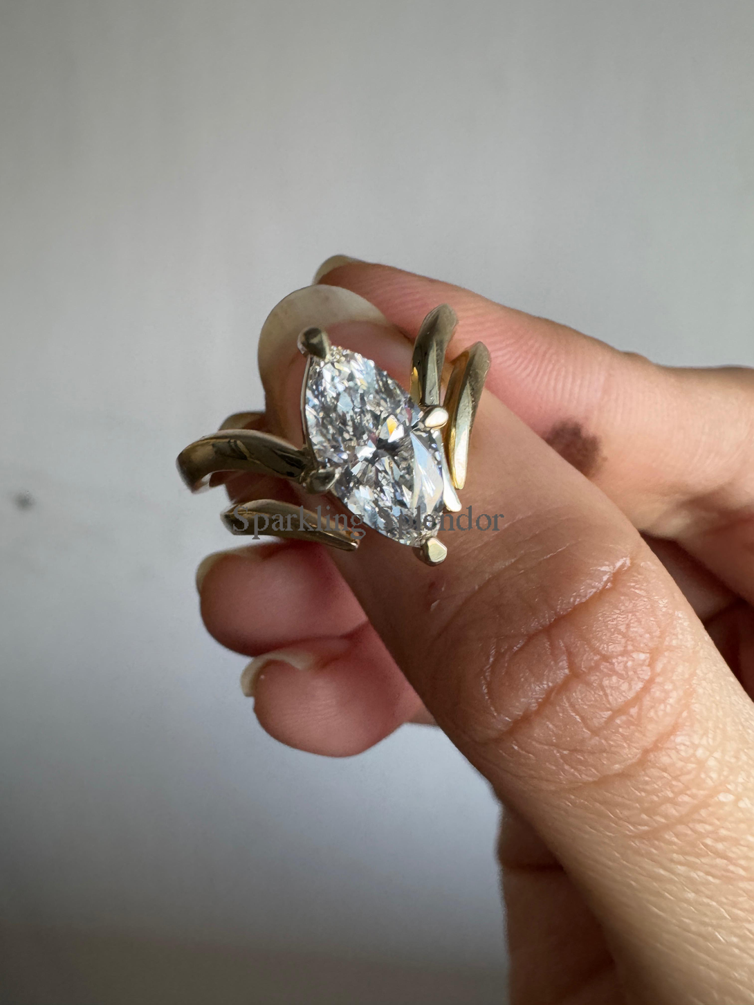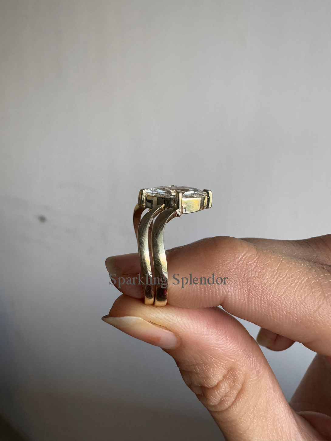 Marquise Cut Moissanite Solitaire Ring With Matching Open Band Wedding Ring Set