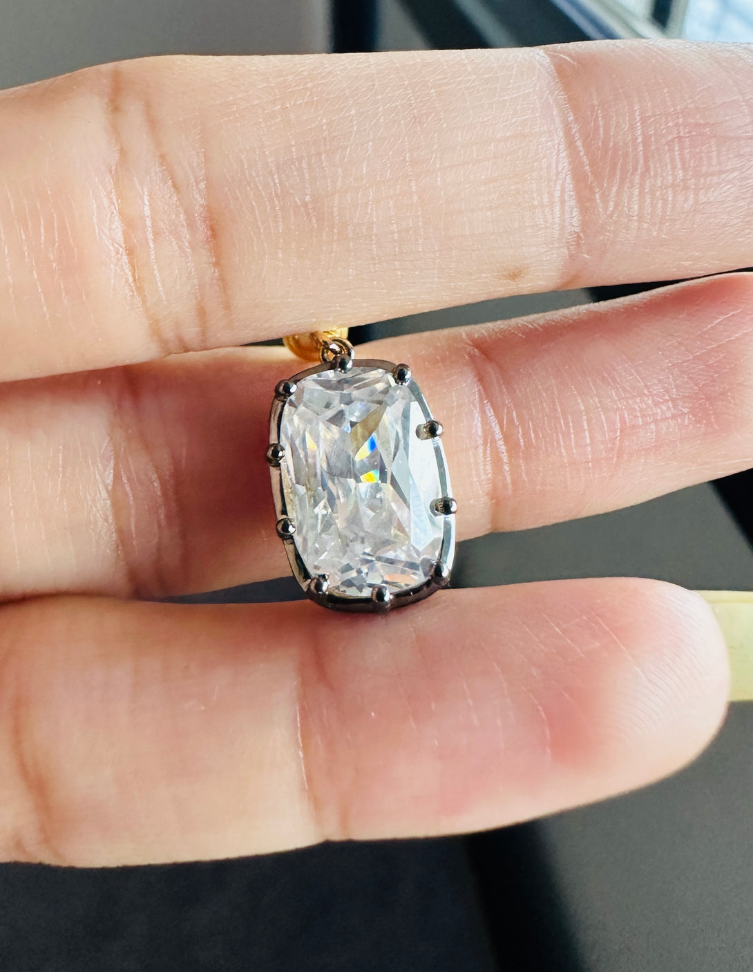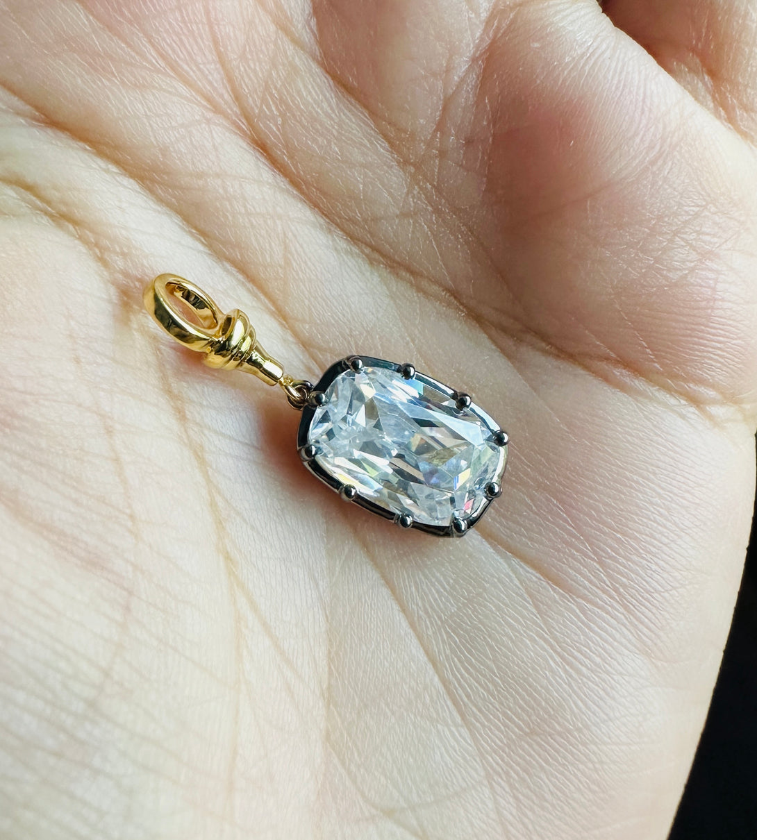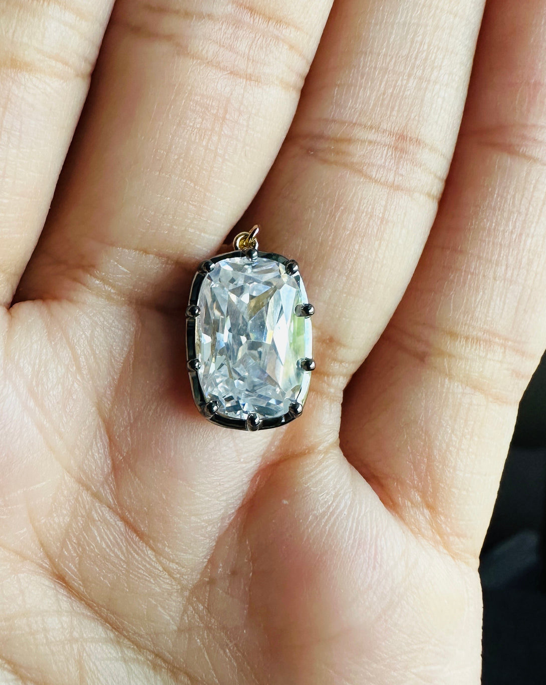 Black Rhodium Bezel Set Pendant Elongated Cushion Cut Moissanite Solitaire Pendant