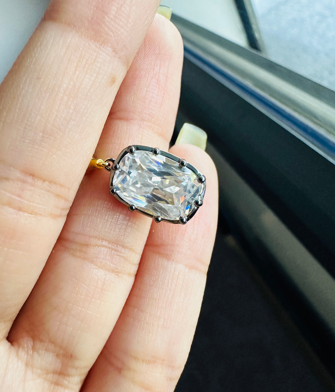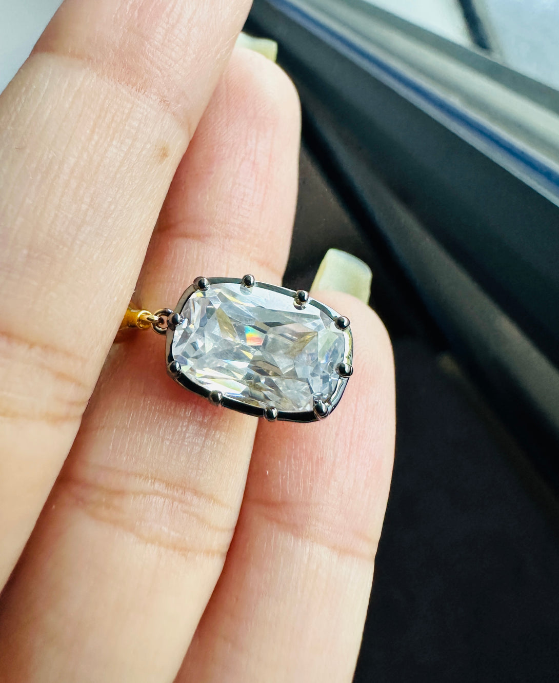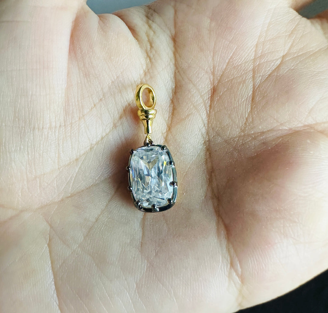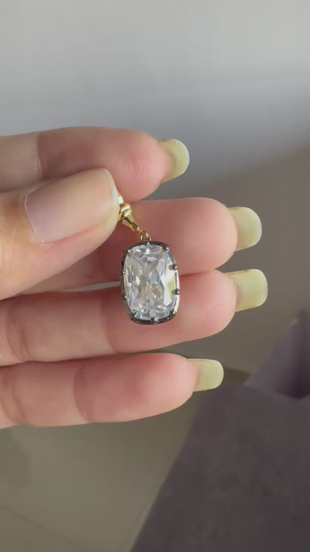Black Rhodium Bezel Set Pendant Elongated Cushion Cut Moissanite Solitaire Pendant