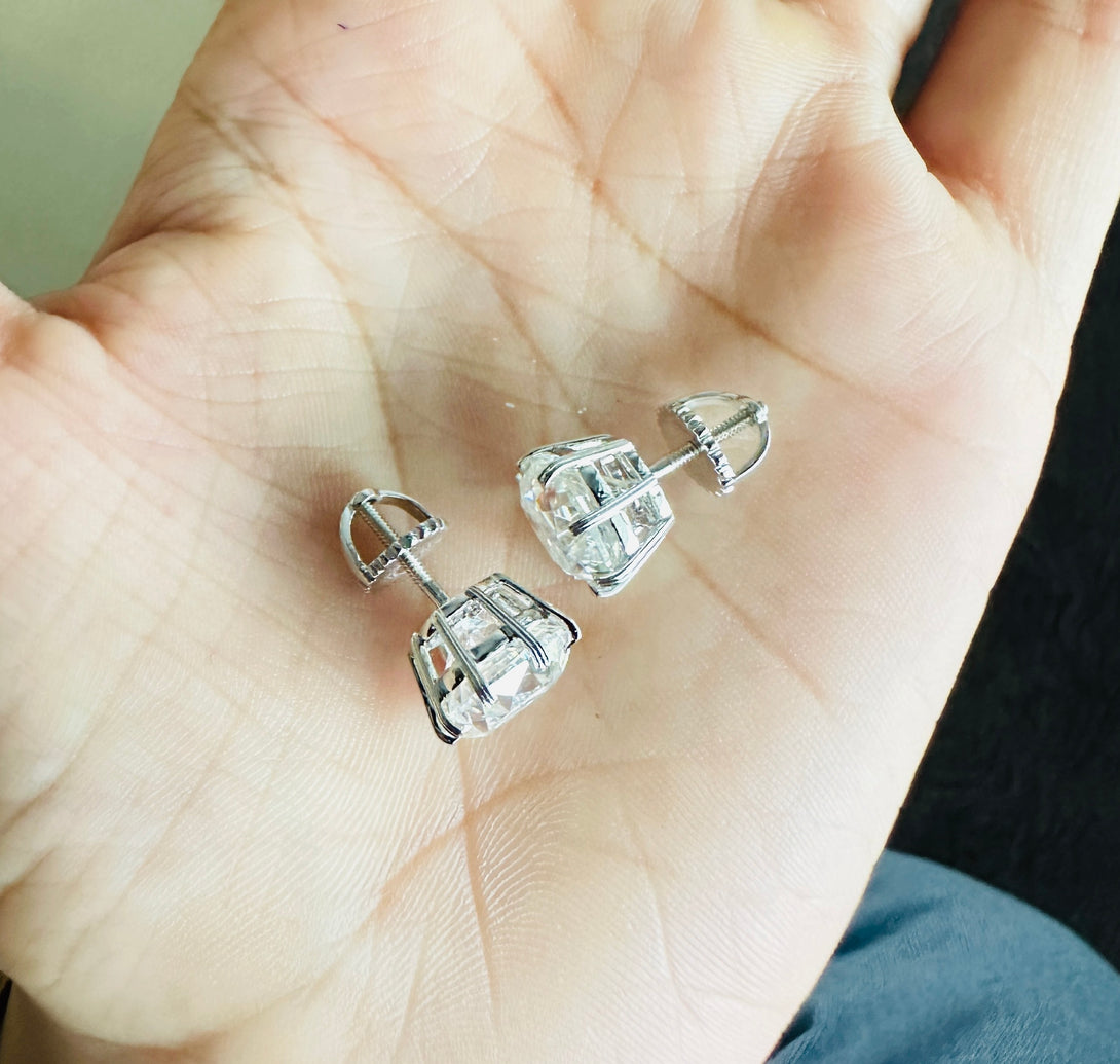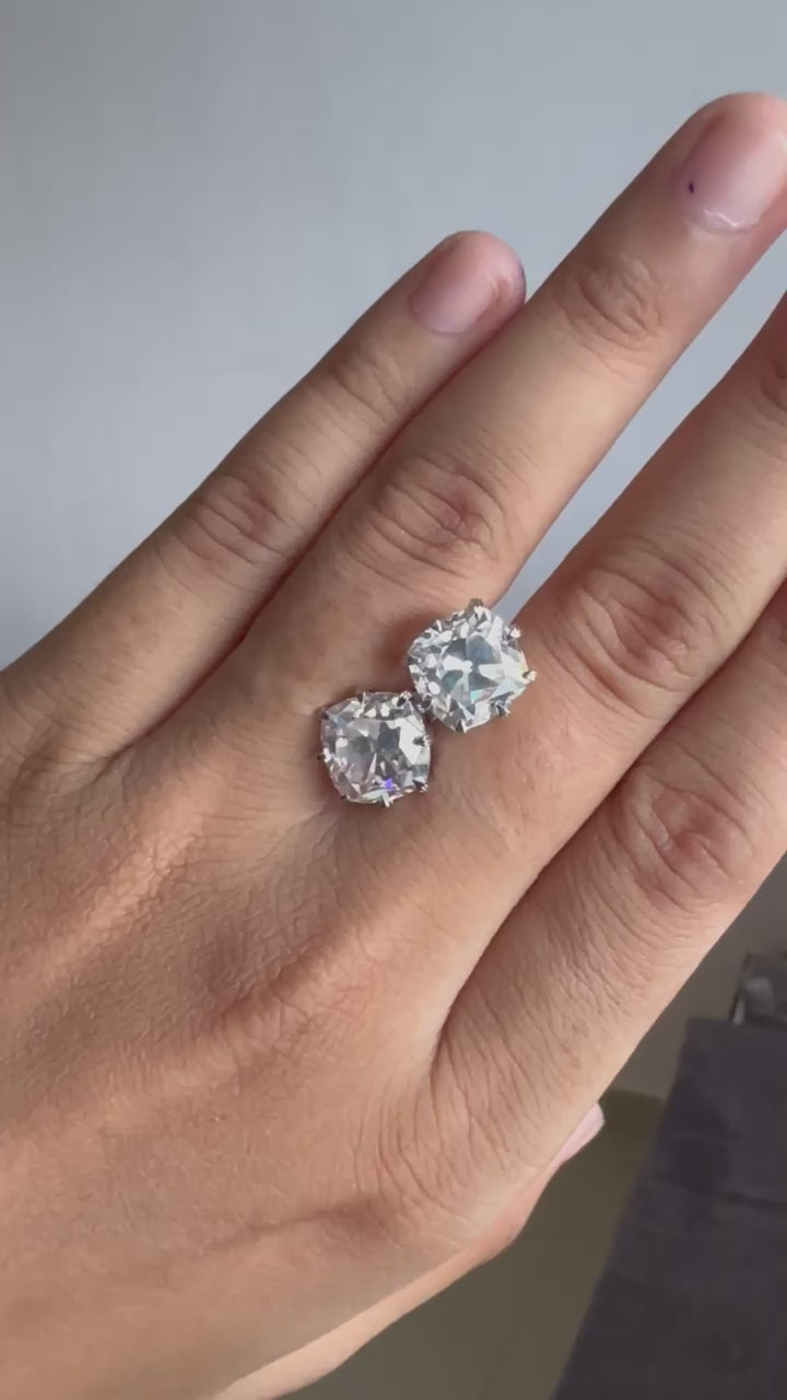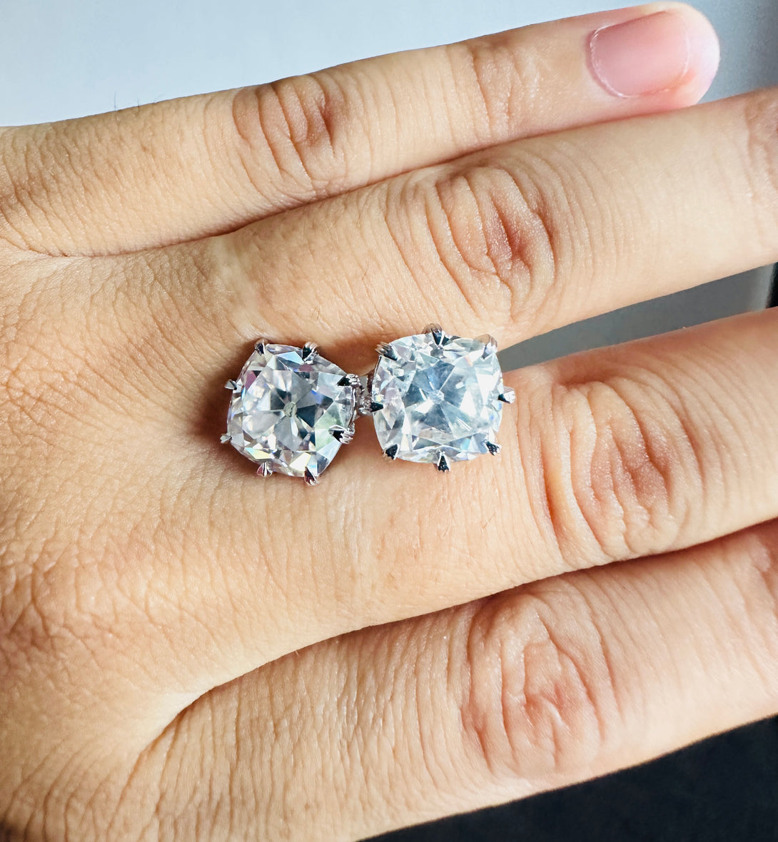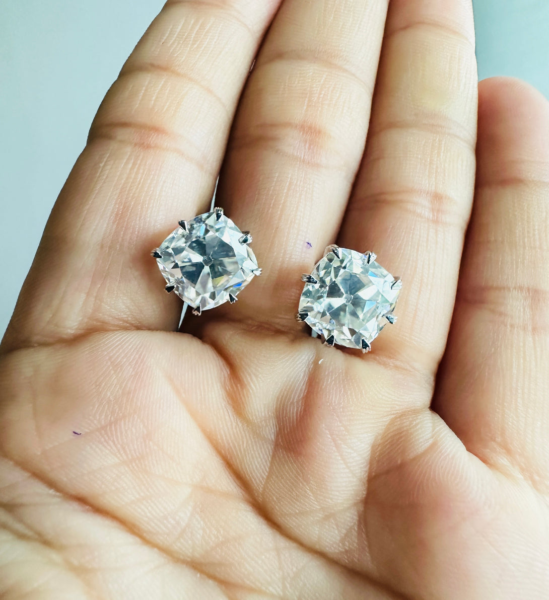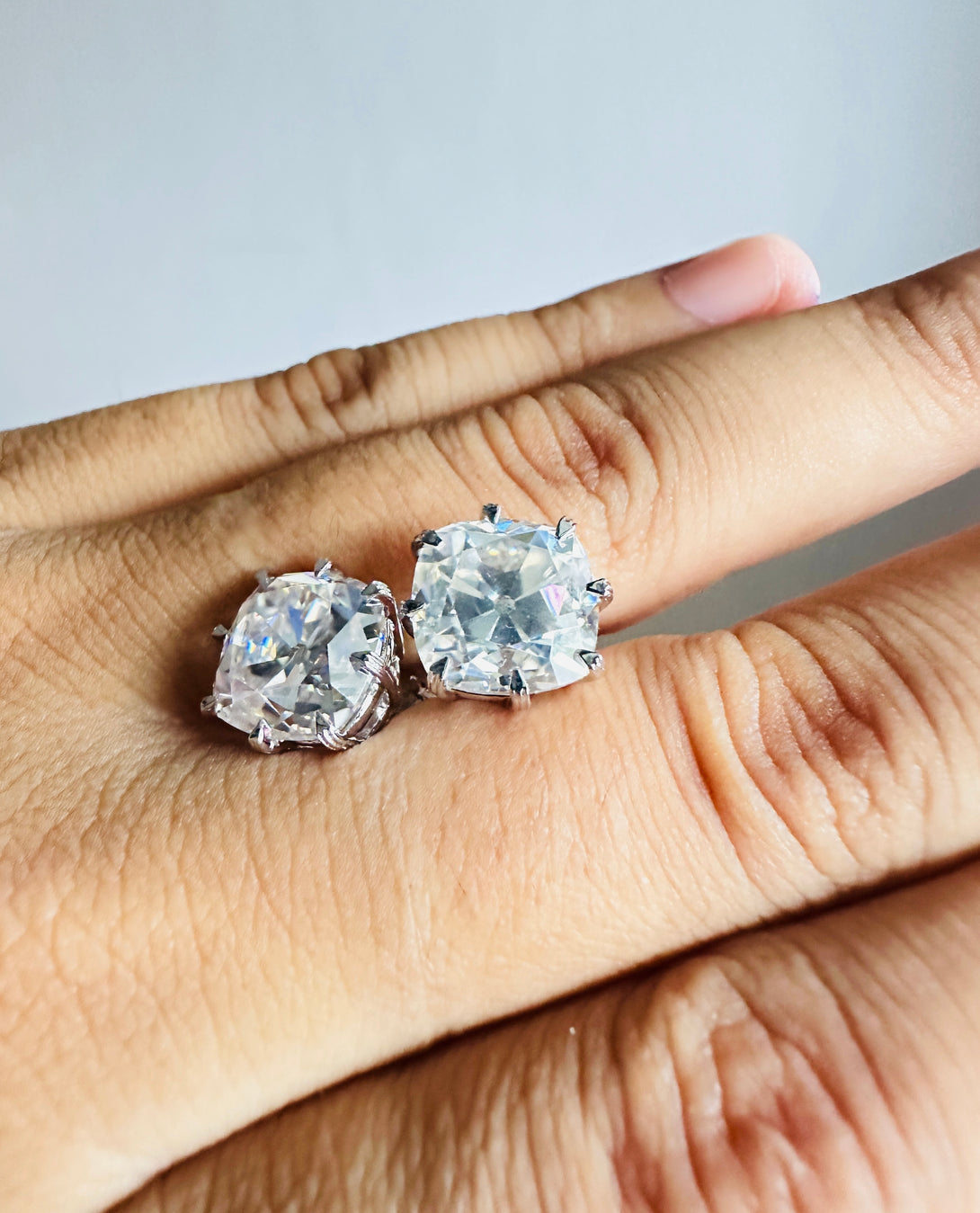 Old Mine Cushion Cut Moissanite Stud Earrings 18K White Gold Solitaire Studs