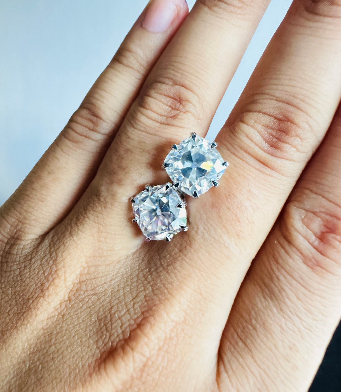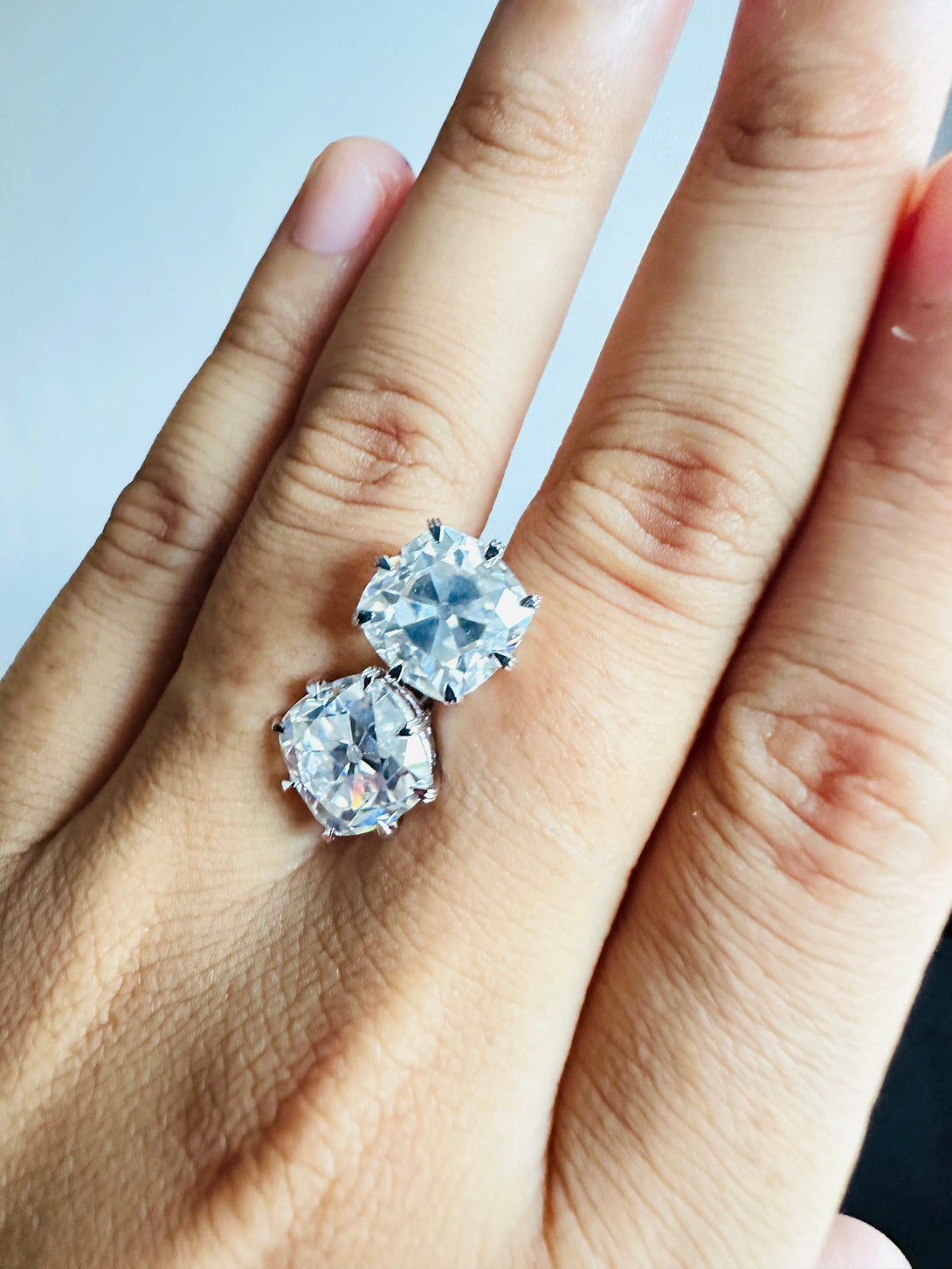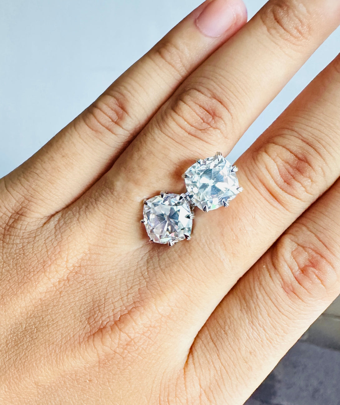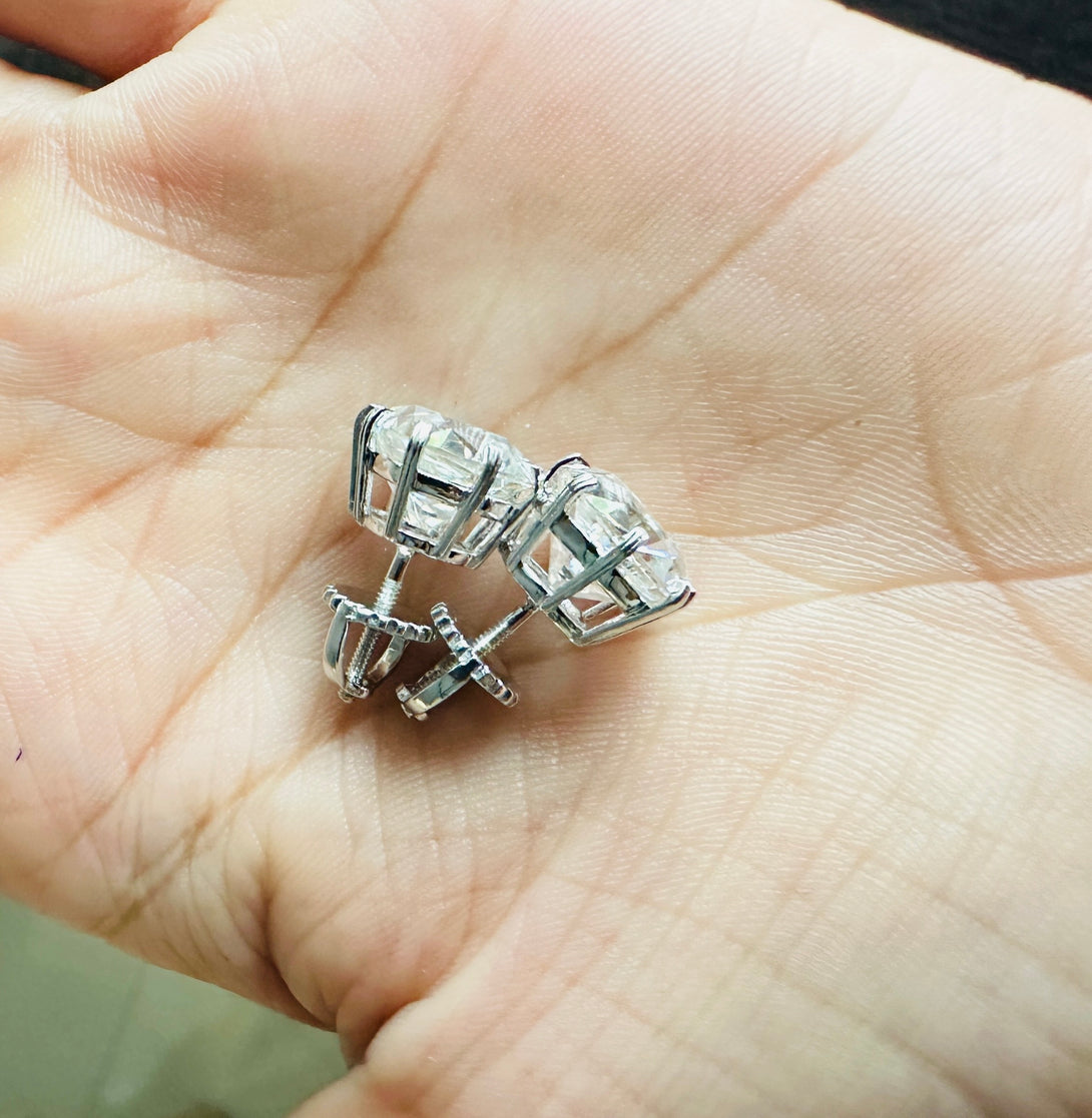 Old Mine Cushion Cut Moissanite Stud Earrings 18K White Gold Solitaire Studs