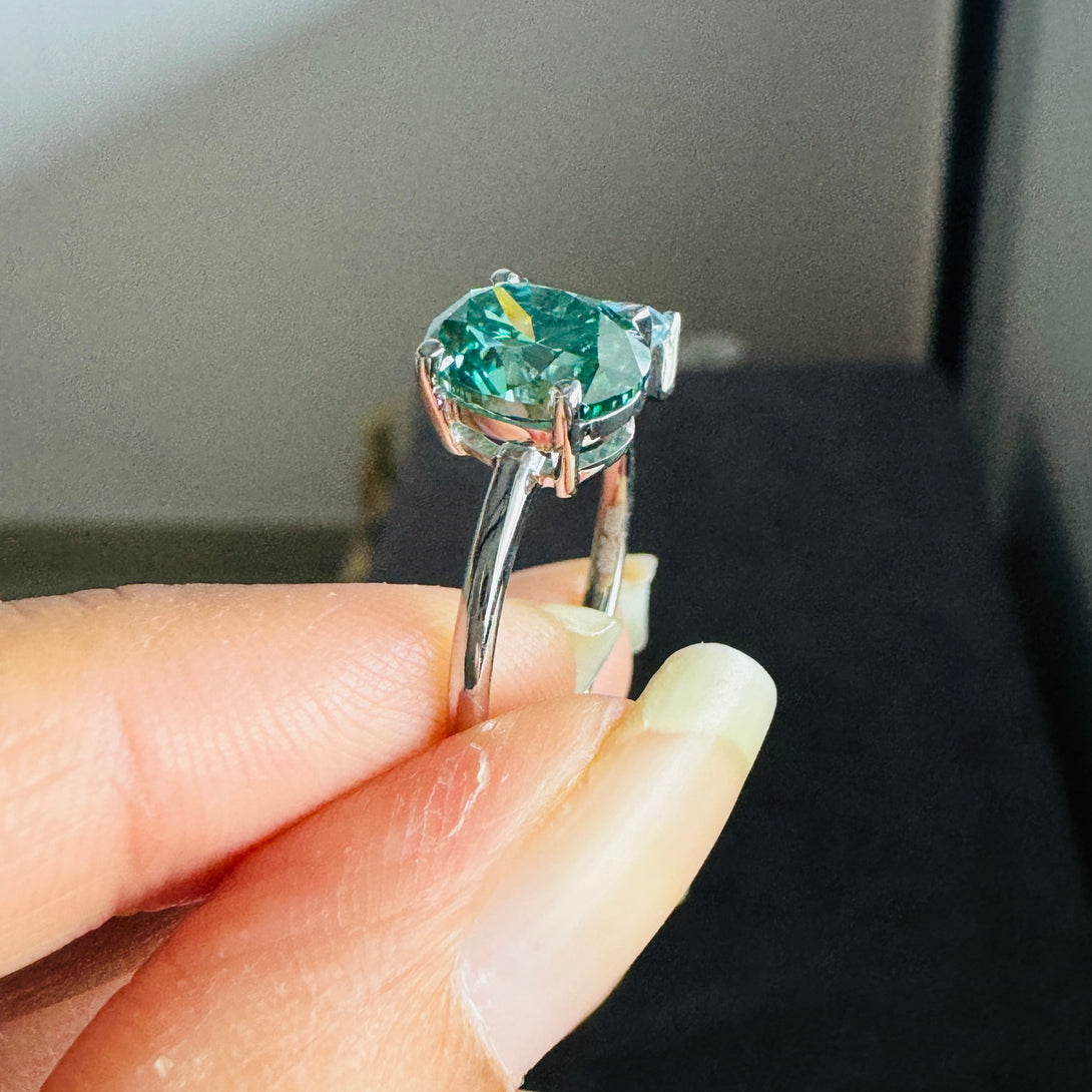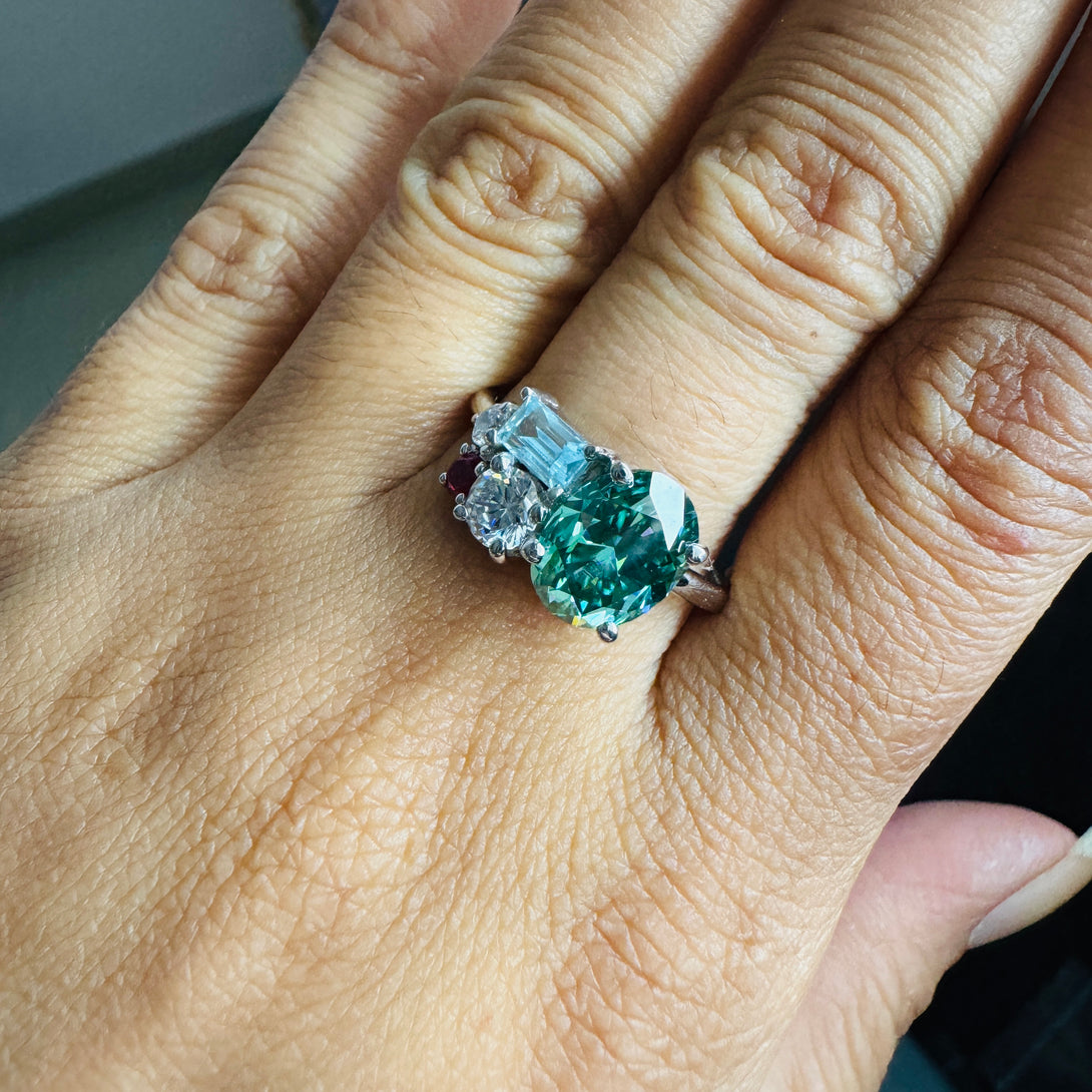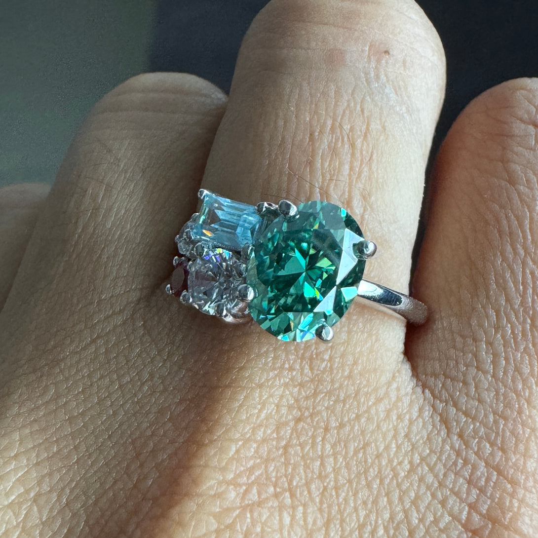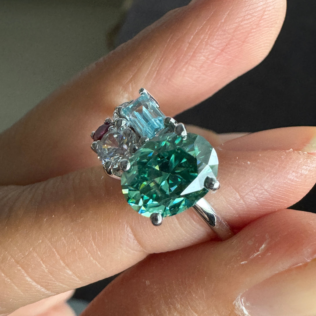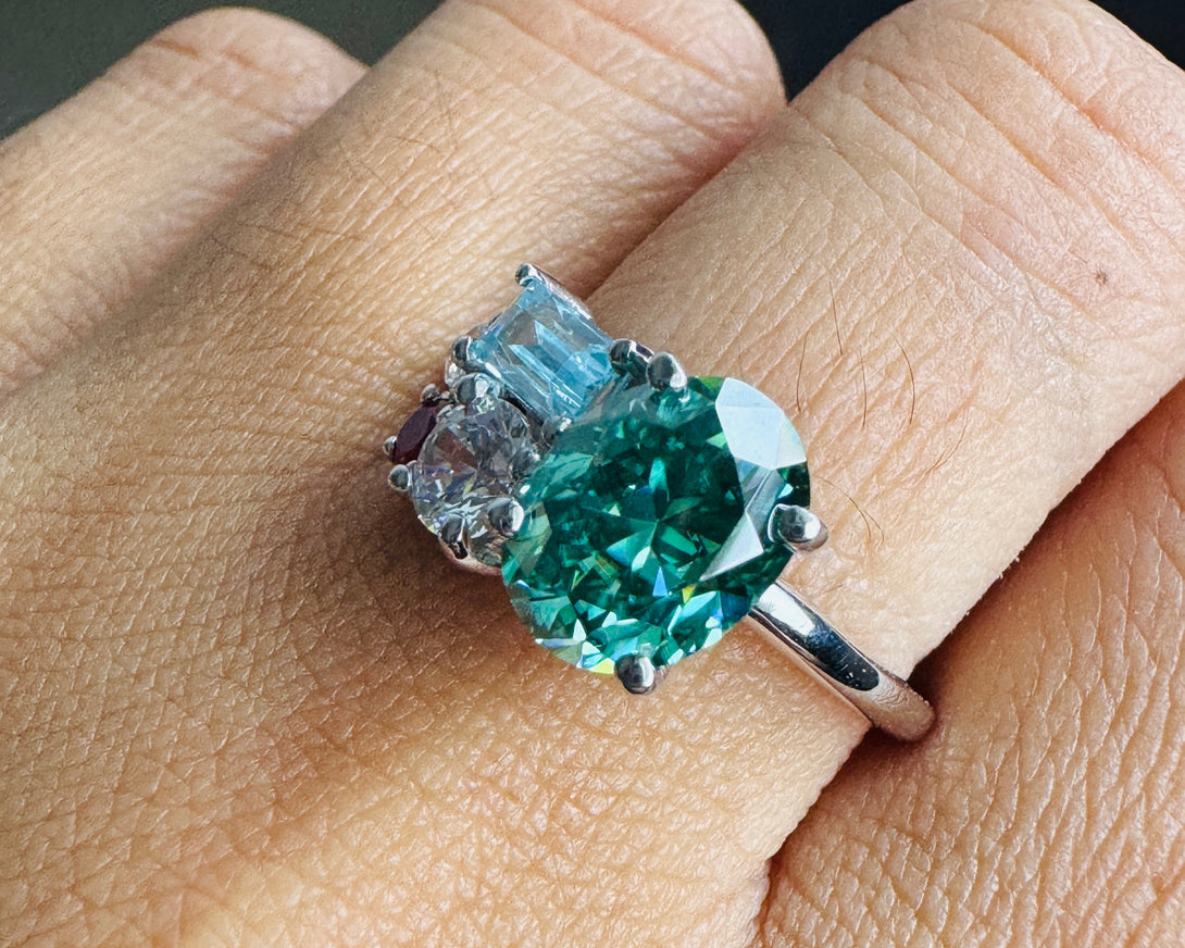 Green Oval Cut Moissanite Cluster Engagement Ring Multi Stone Promise Ring