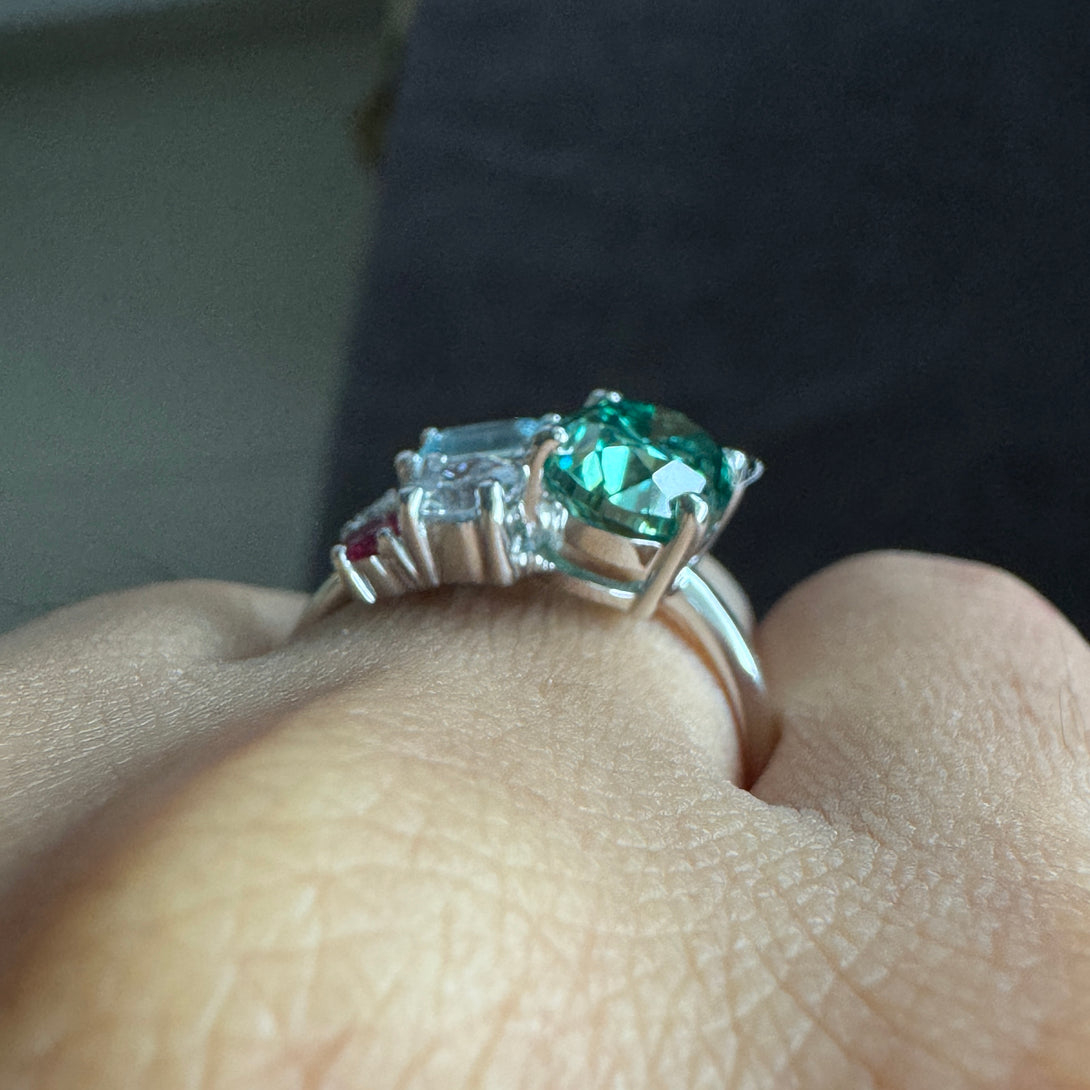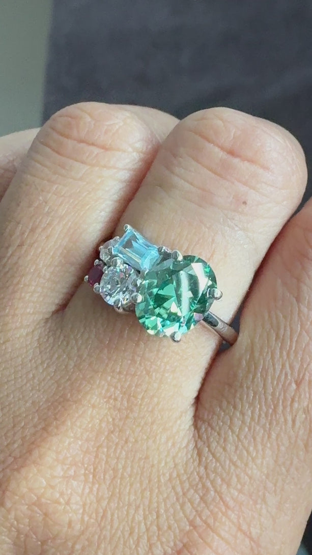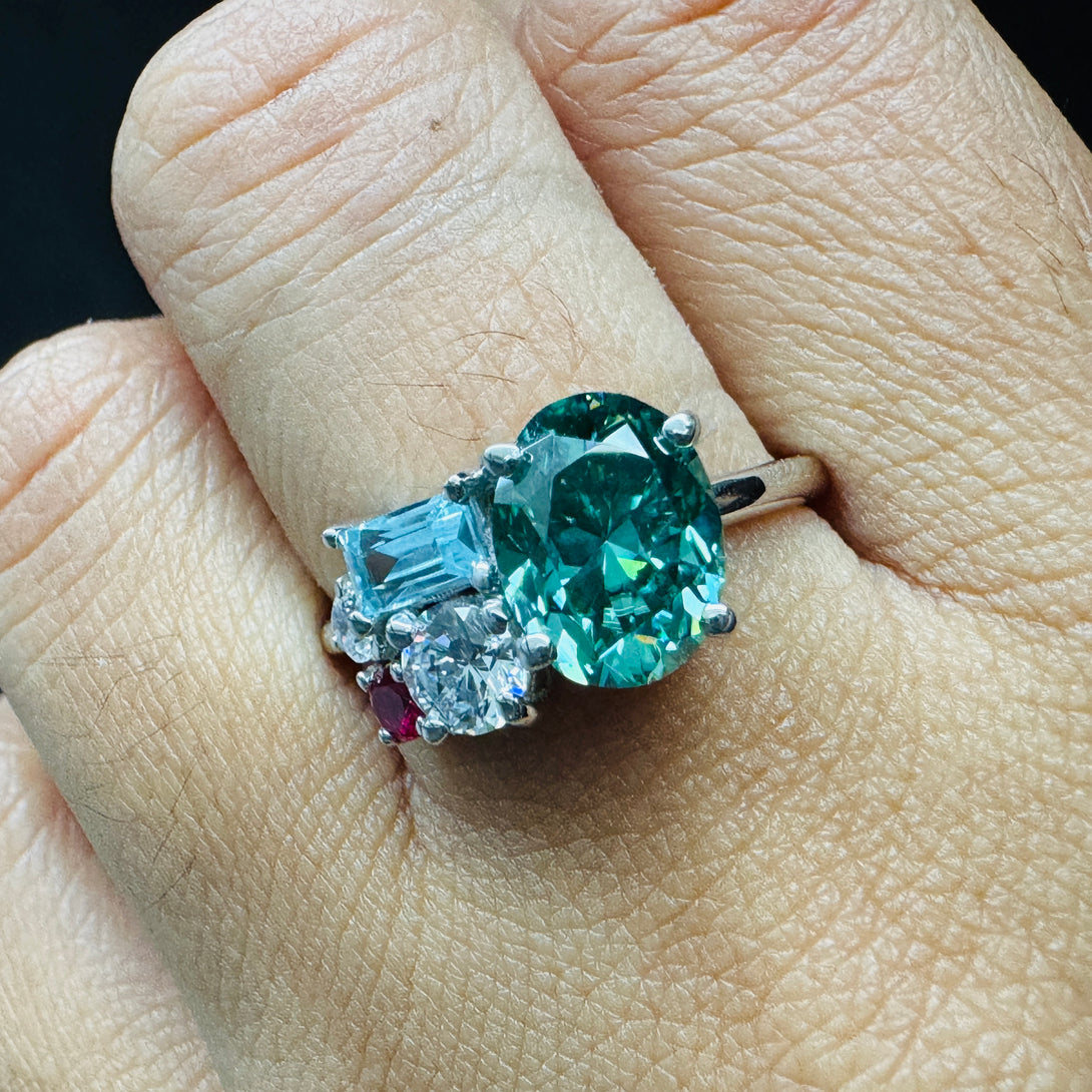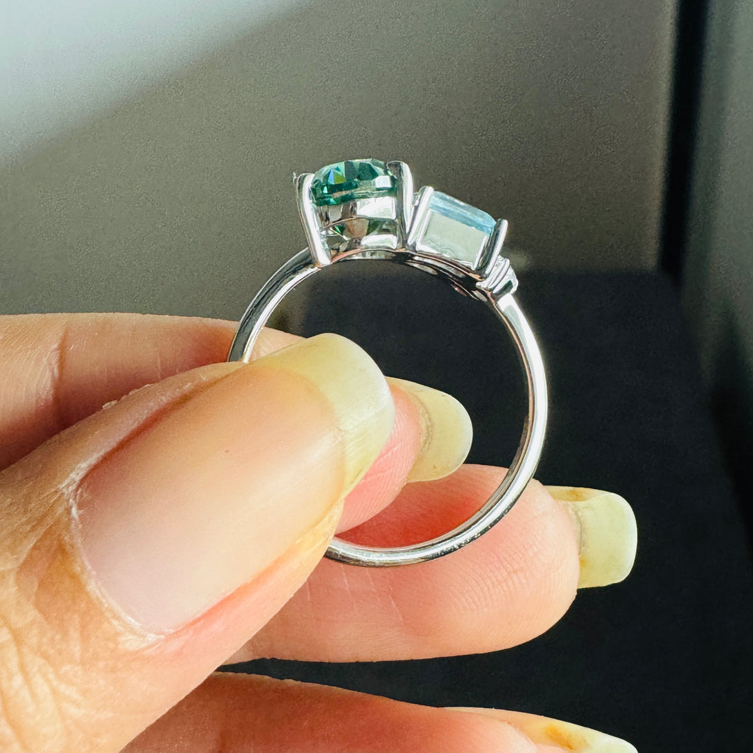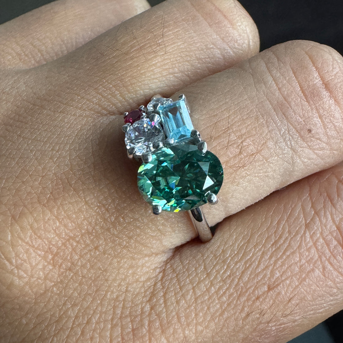 Green Oval Cut Moissanite Cluster Engagement Ring Multi Stone Promise Ring