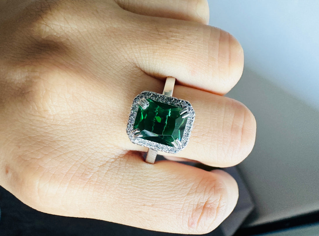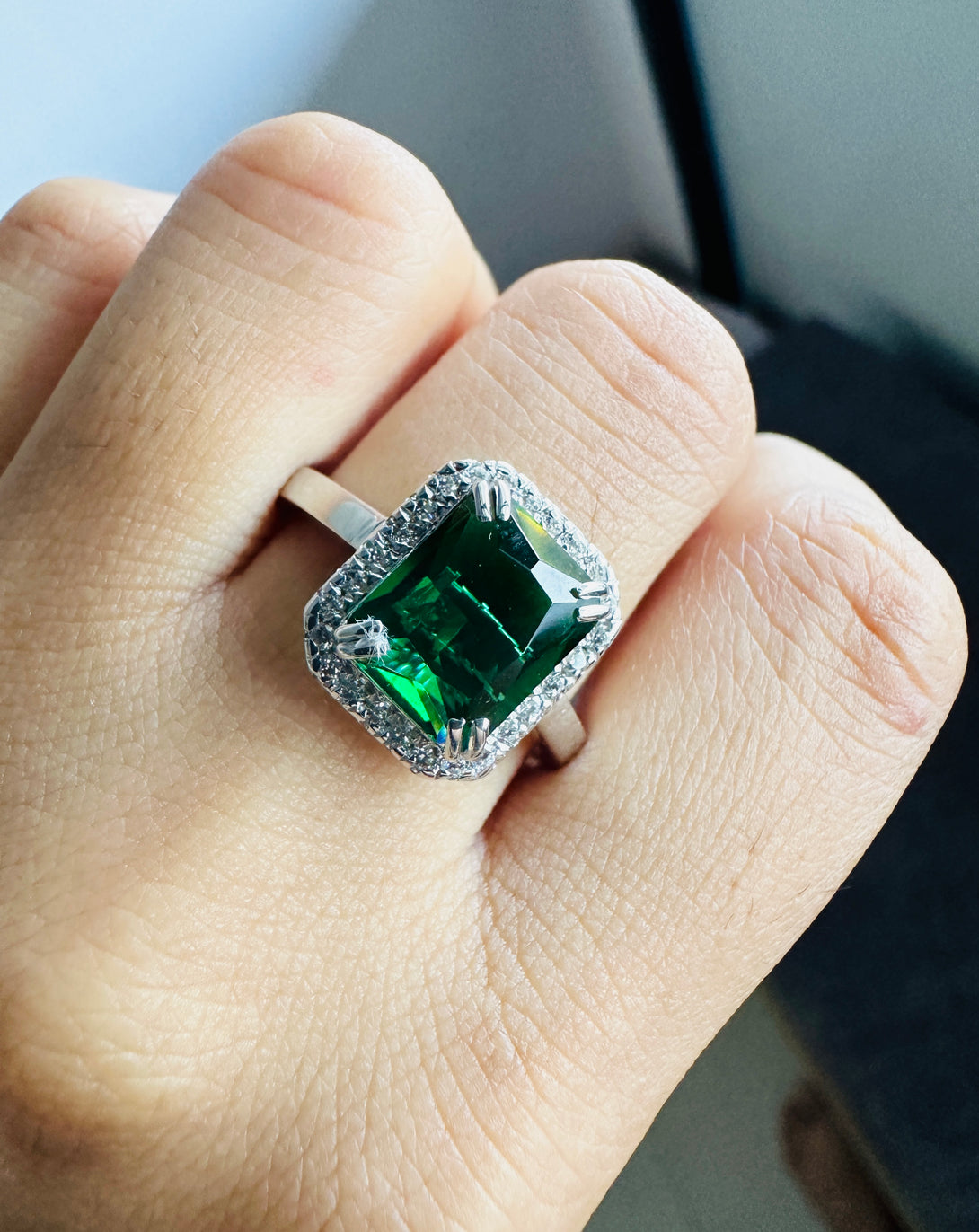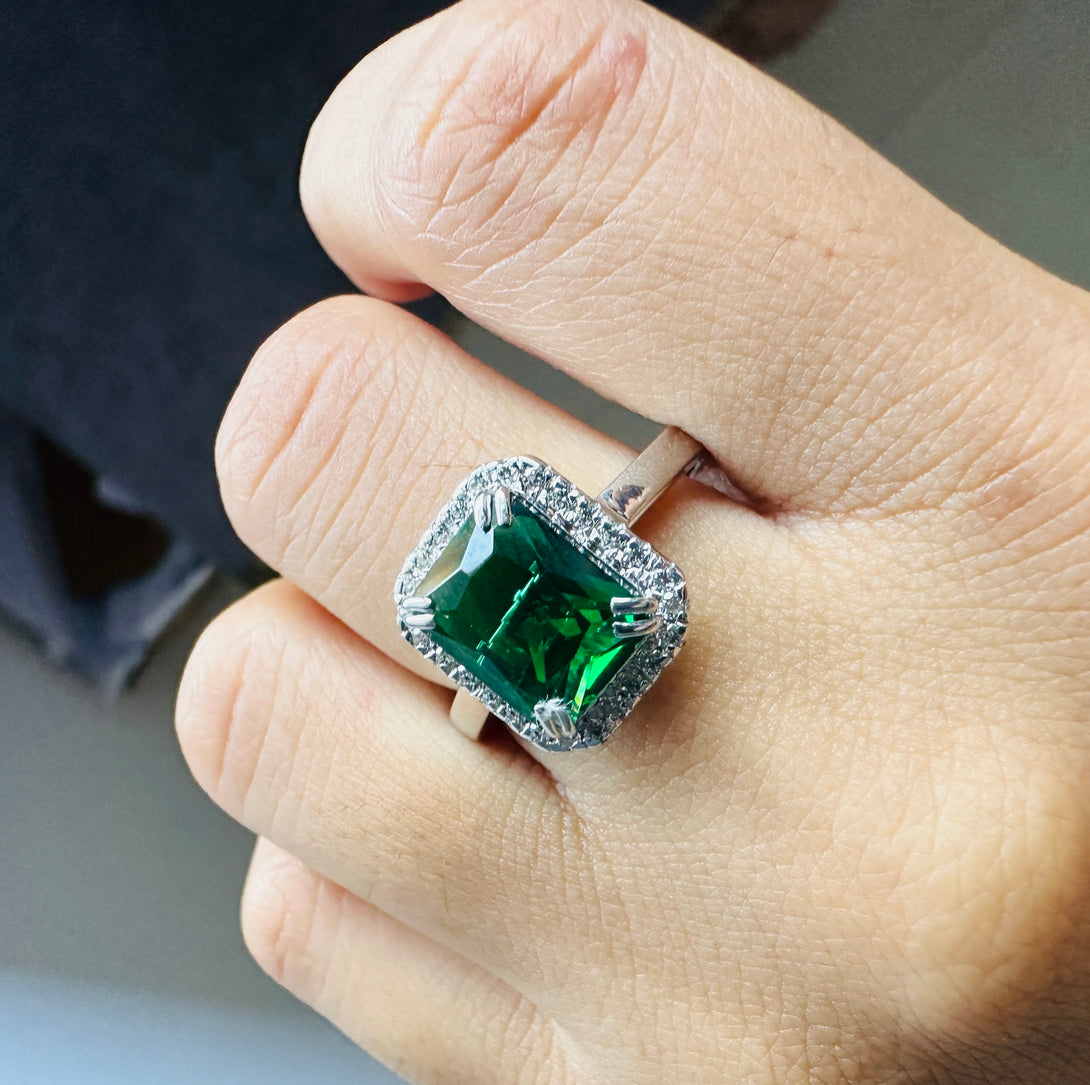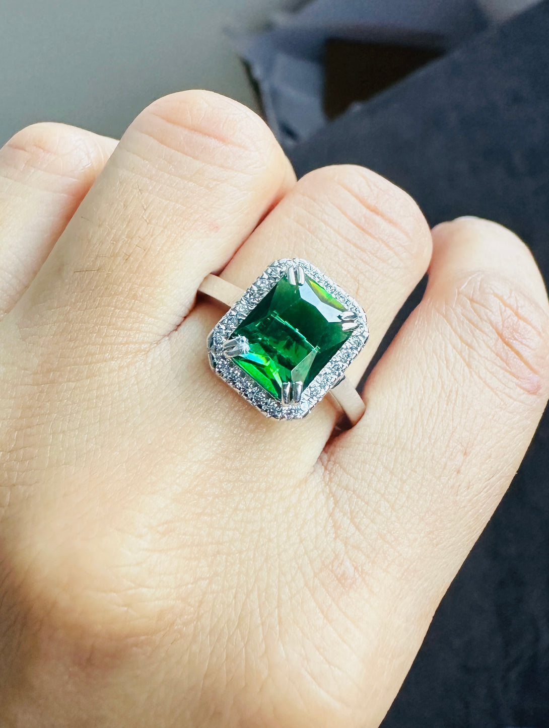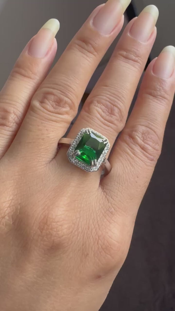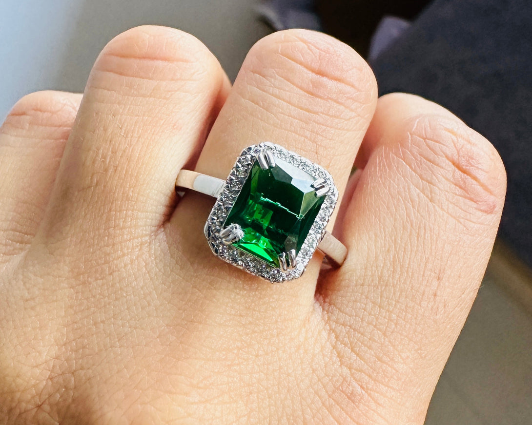 Dark Green CZ Diamond Engagement Ring 2.50 Carat Emerald Cut Halo Wedding Ring