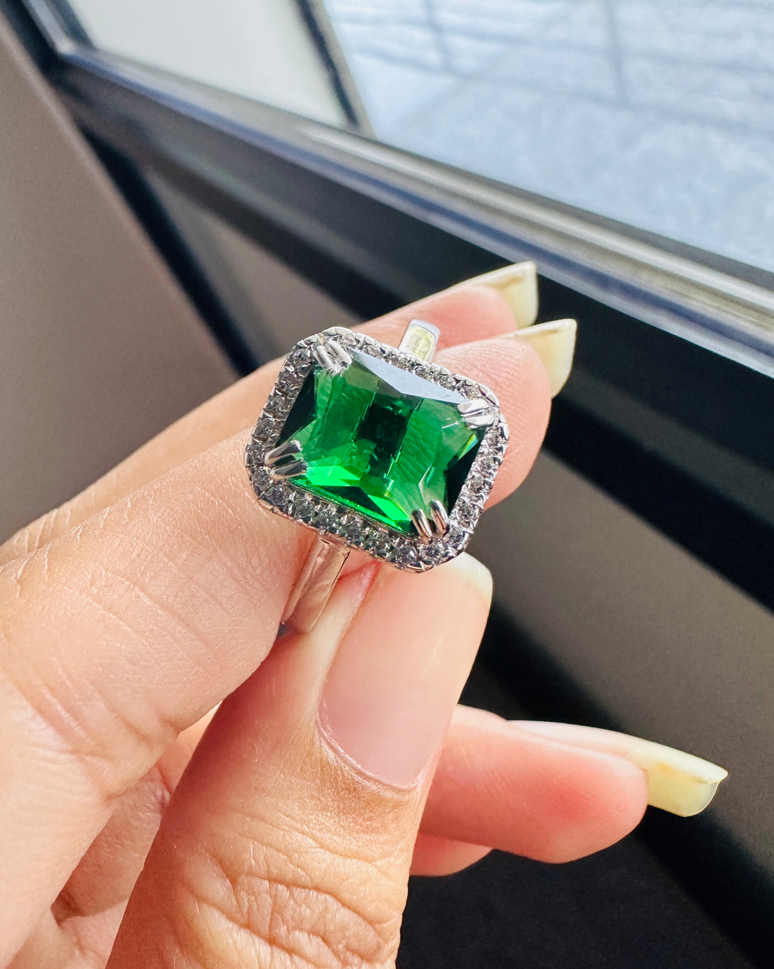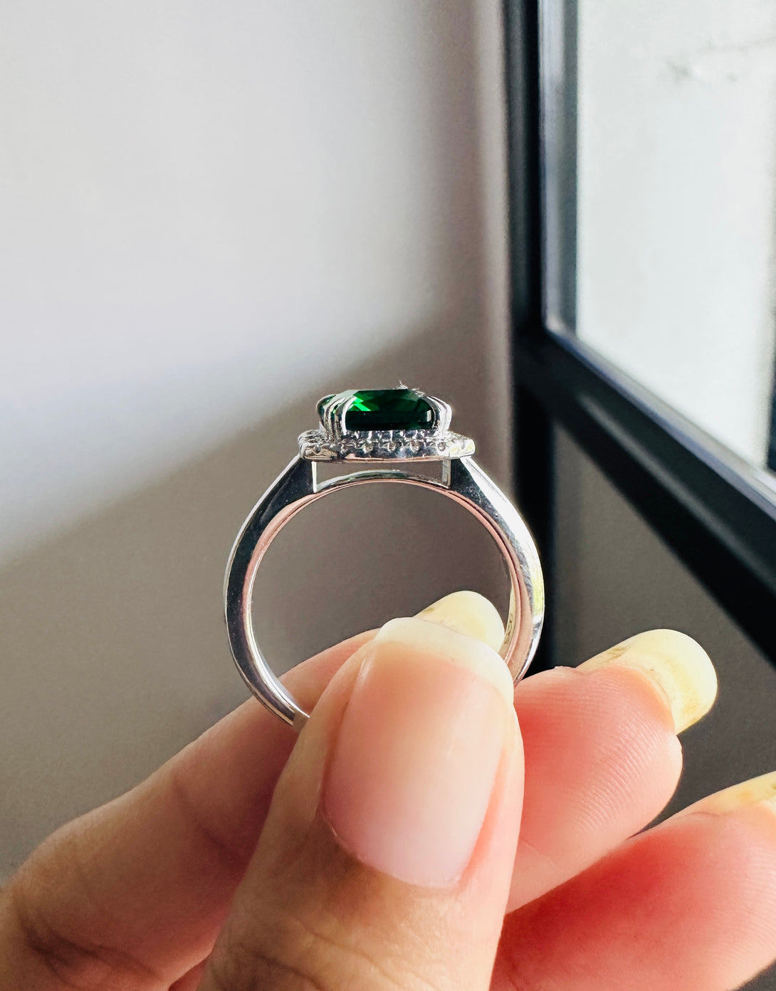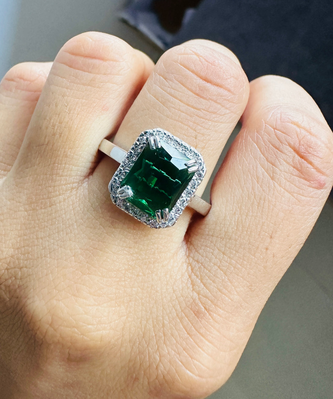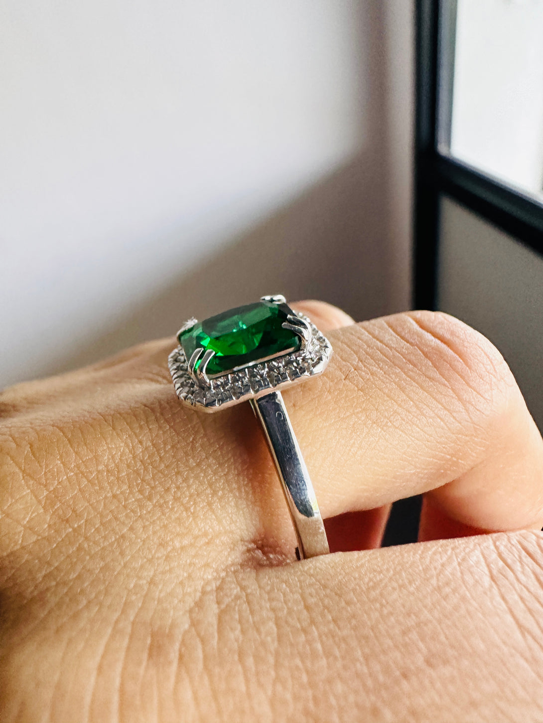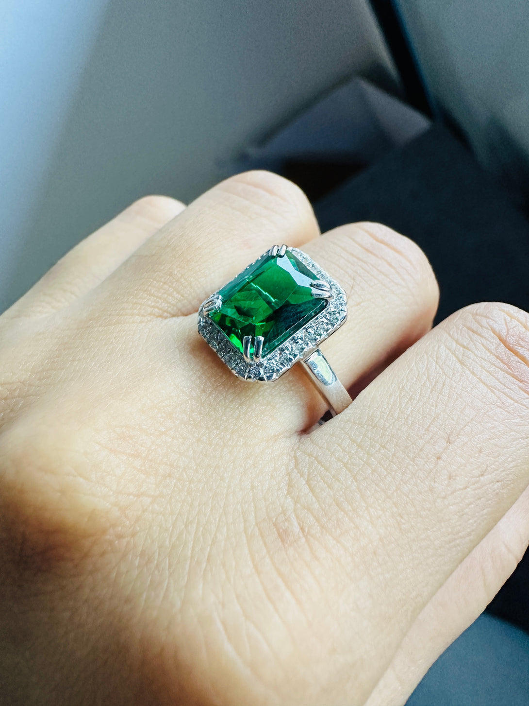 Dark Green CZ Diamond Engagement Ring 2.50 Carat Emerald Cut Halo Wedding Ring