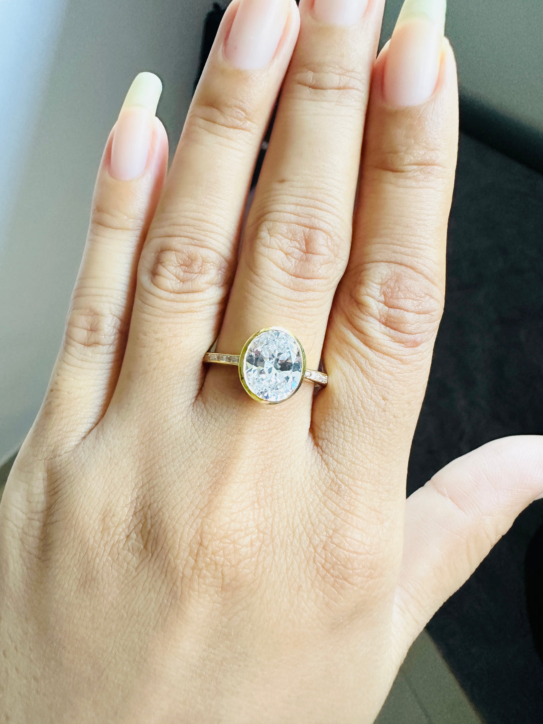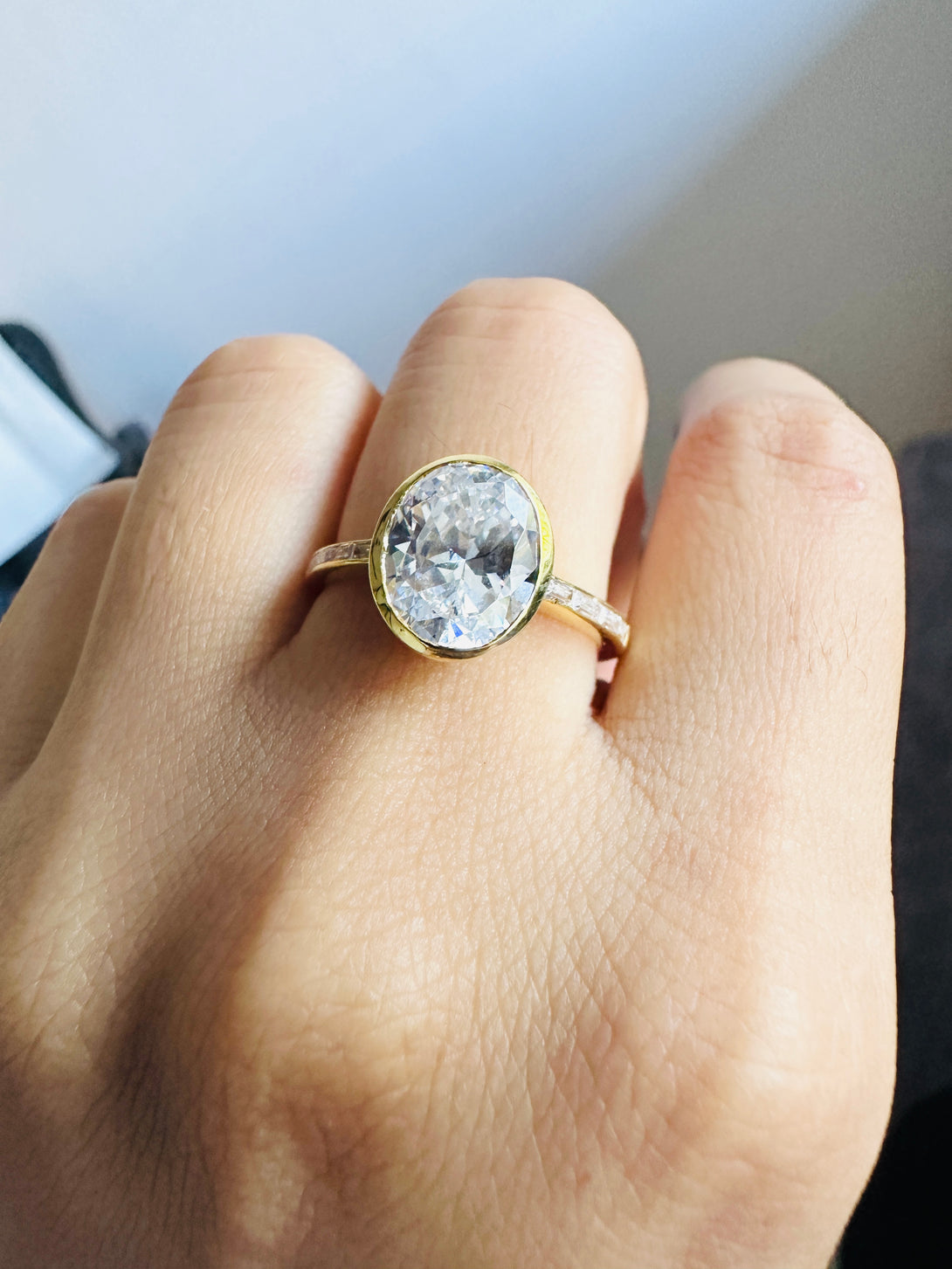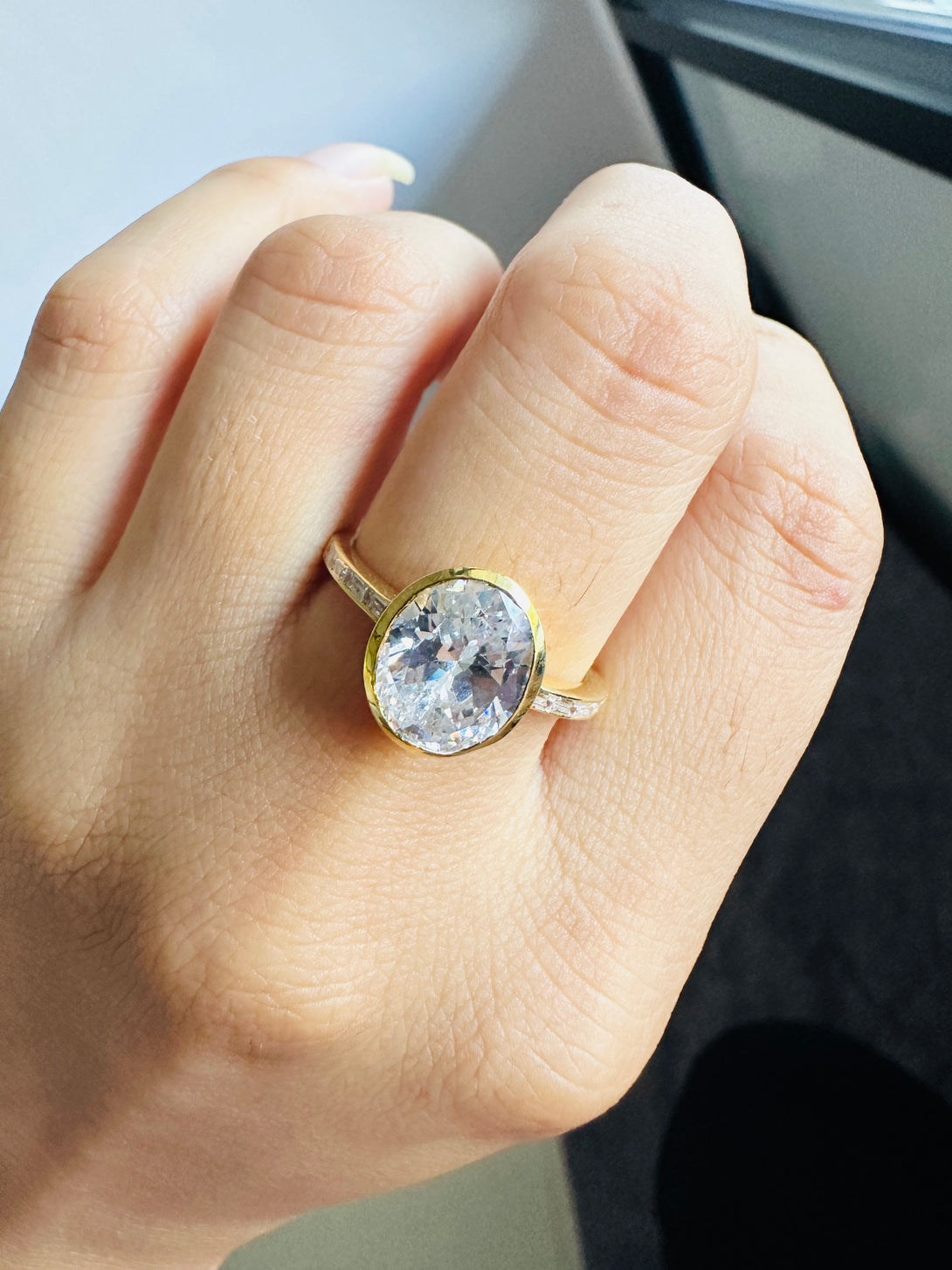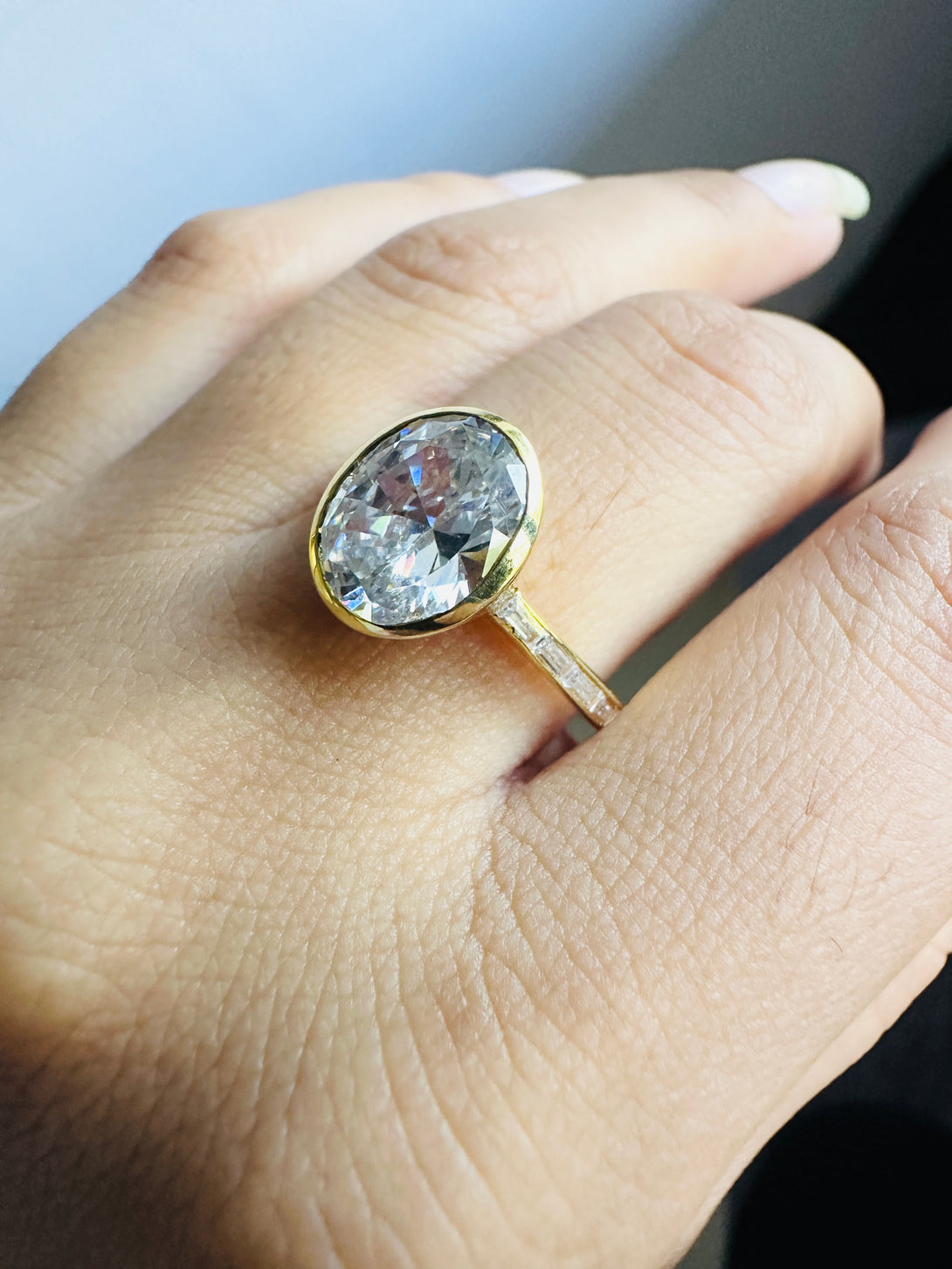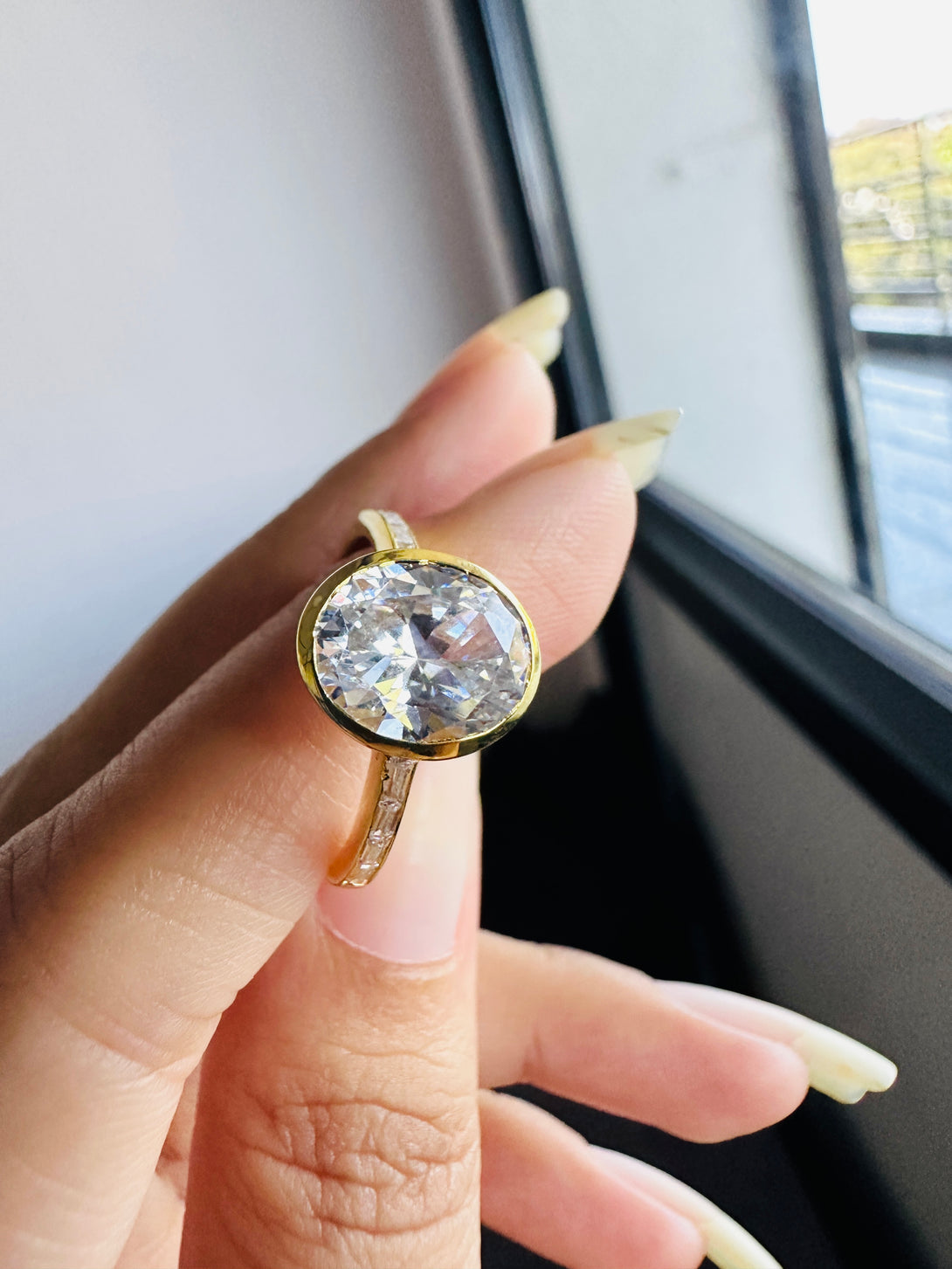 Bezel Set Oval Cut Moissanite Ring 18K Solid Gold Classic Wedding Proposal Ring